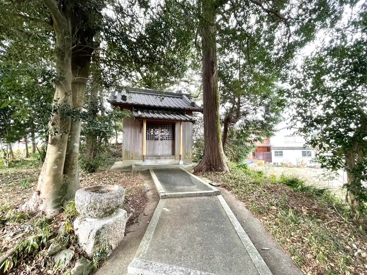 旧東海道から少し外れた場所にあります。木々に囲まれたお社の中にお稲荷様が祀られています。