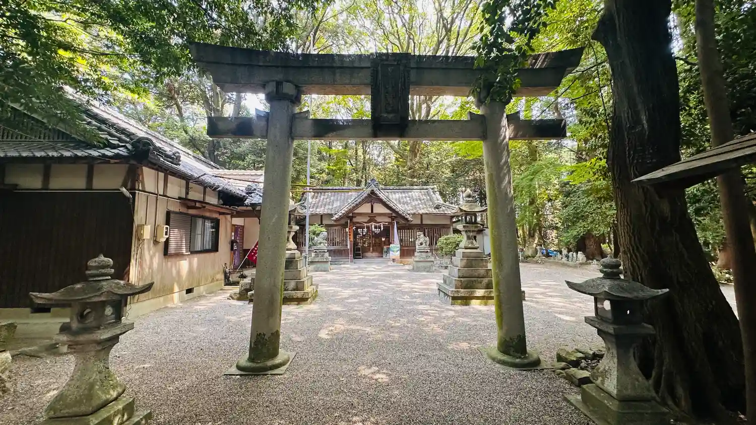 境内左側が社務所、右側が拝殿