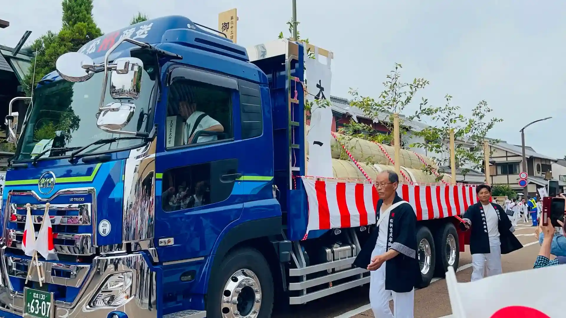 御神木とされる御樋代木は長野県上松町と岐阜県中津川市で、今回の遷宮の用材として最初に伐採され伊勢まで運ばれます。途中、長野、愛知、岐阜の各県の沿道や宿泊地で奉祝行事が行われてきました。