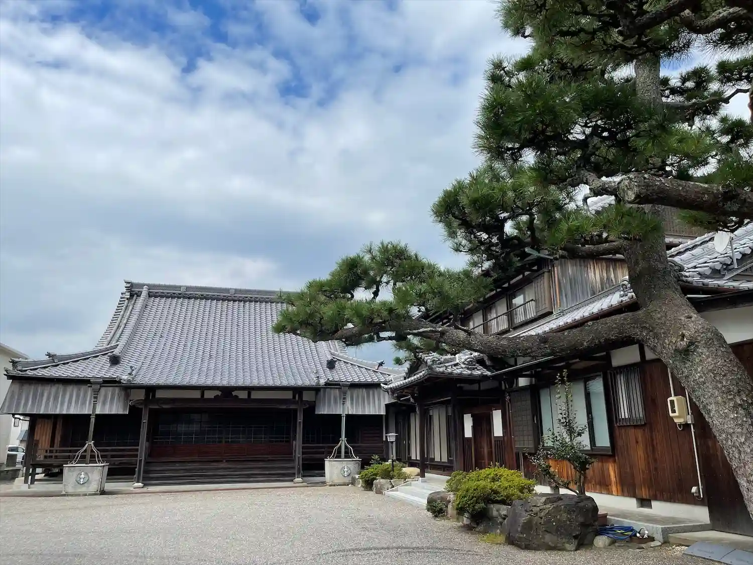 門を入ってすぐに2本の大きな松の木があり…