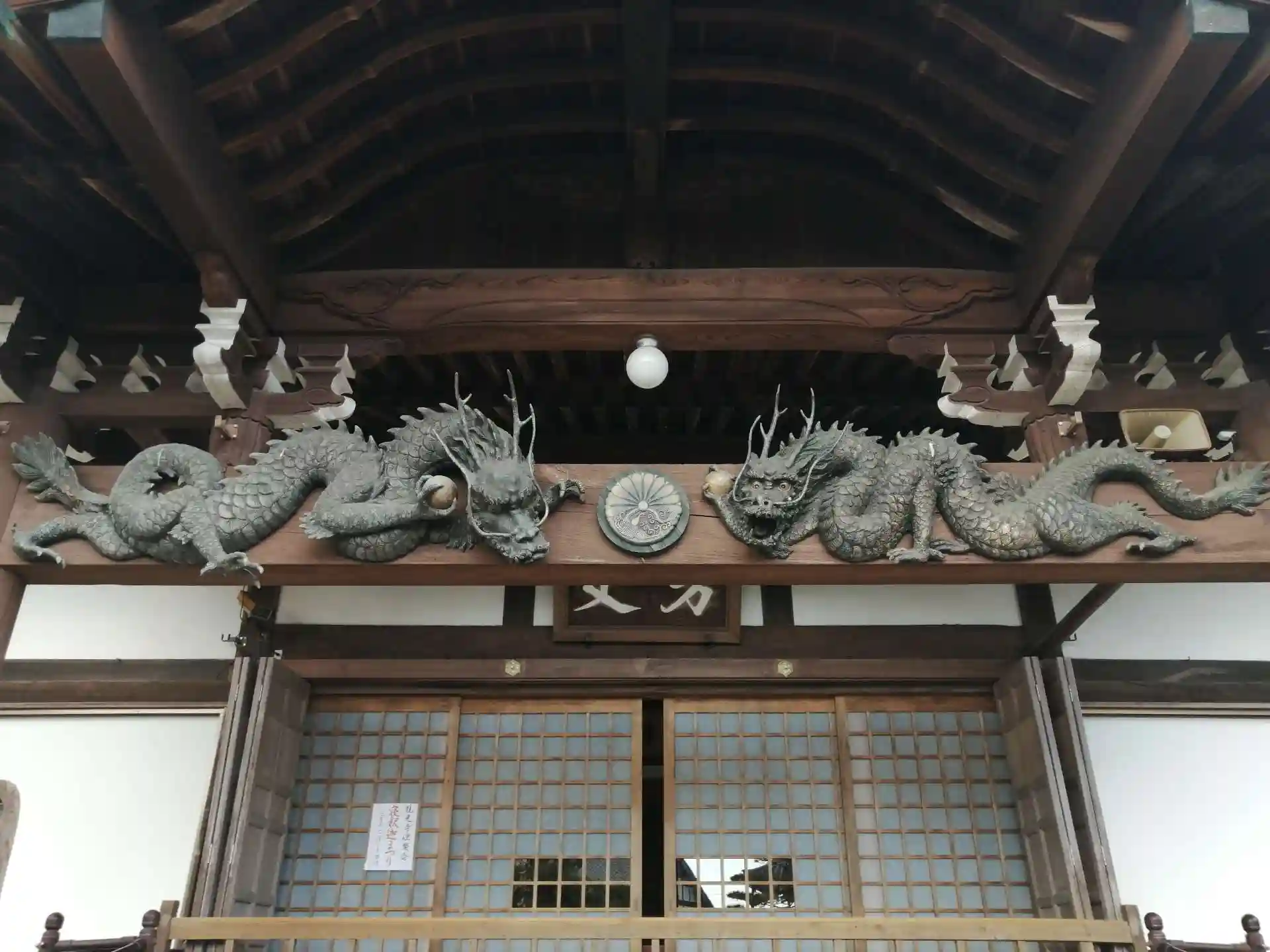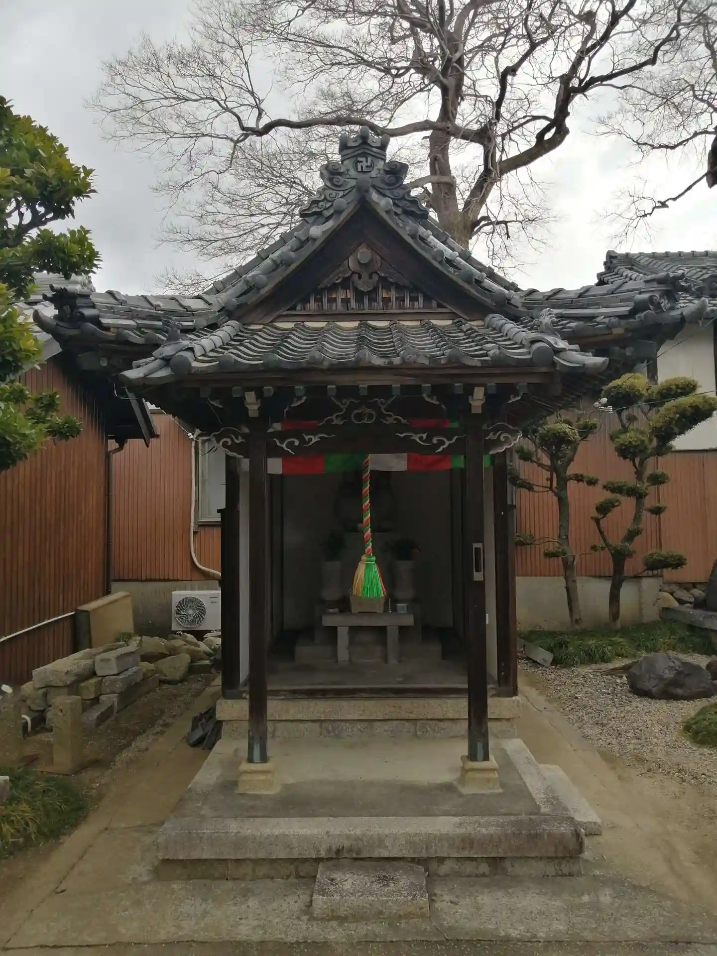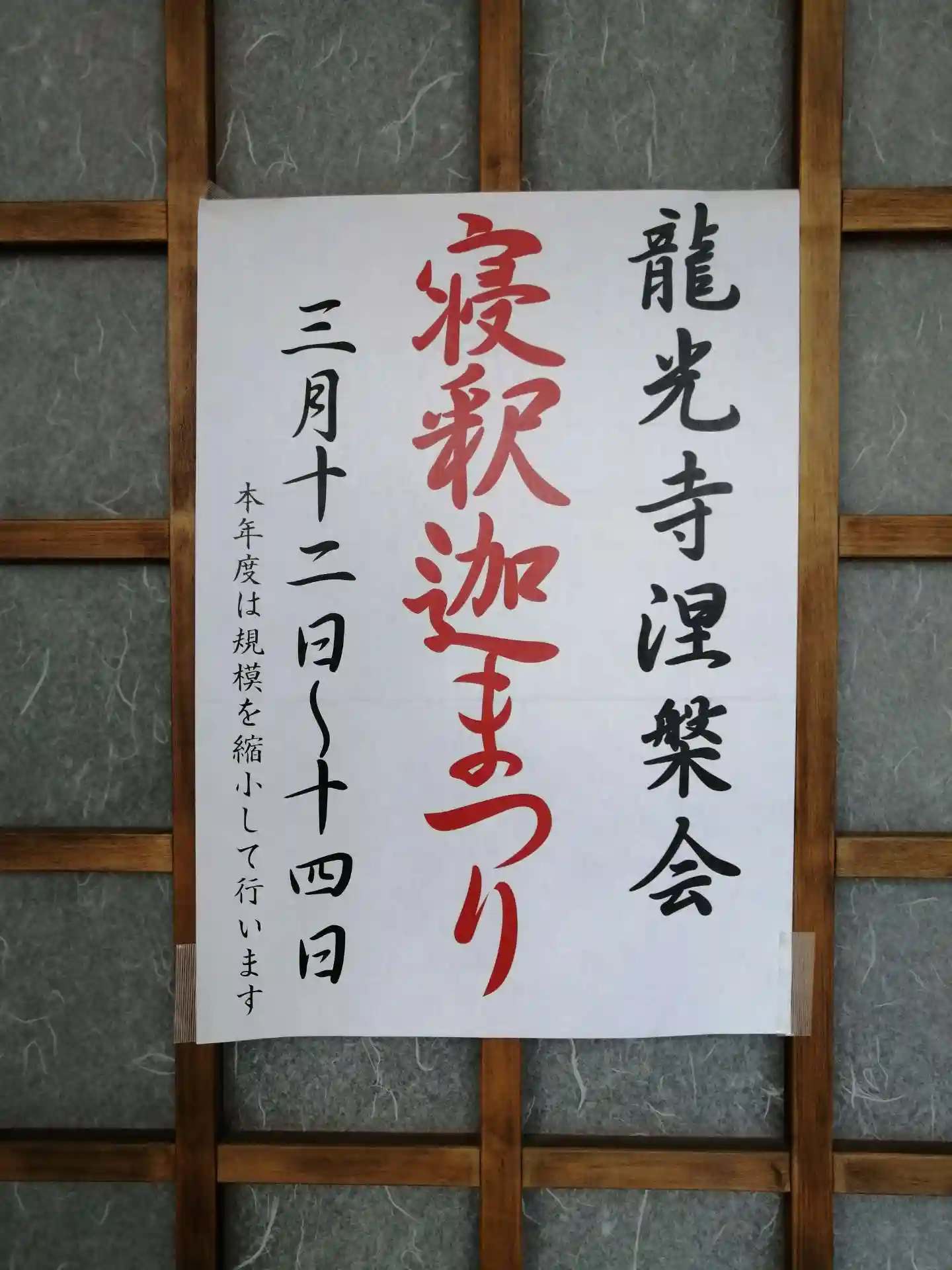 次に本堂へ。正面扉が少し開けられていて、中を覗くとデカイ釈迦涅槃図が吊り下げられていて須弥壇はそれに隠れて見えませんでしたし、堂内にも入れませんでした。