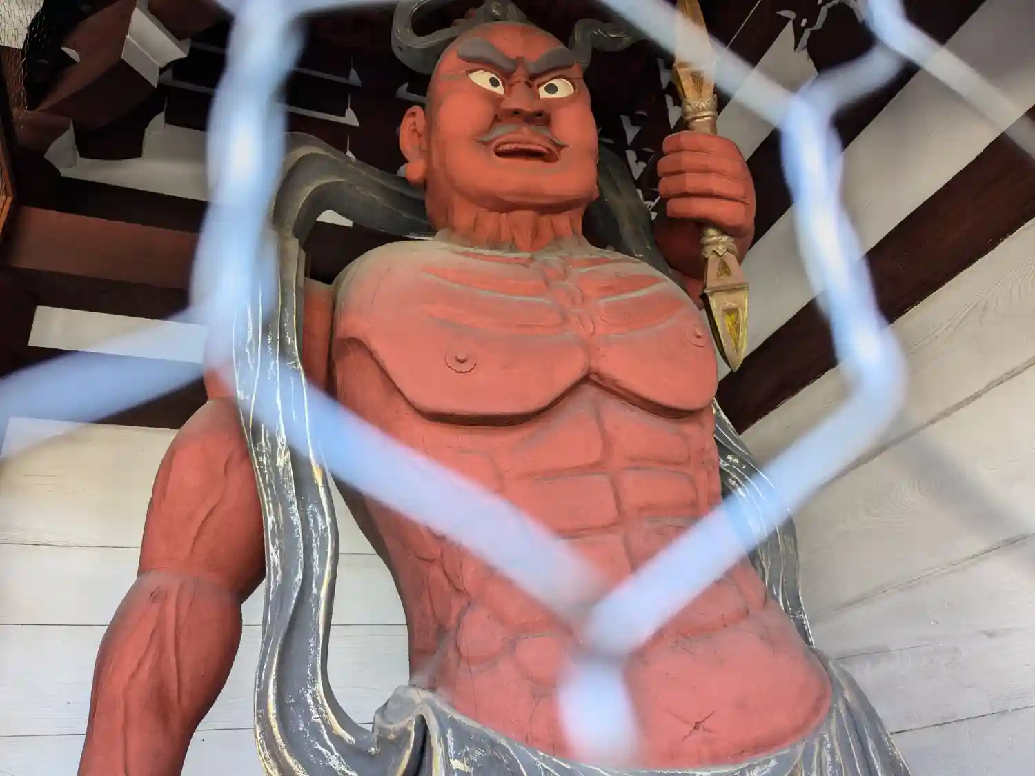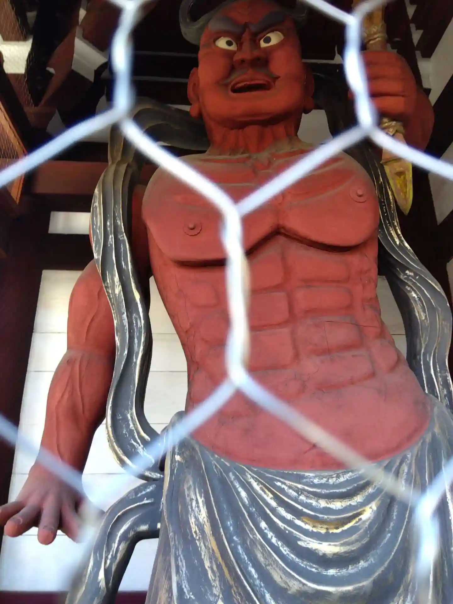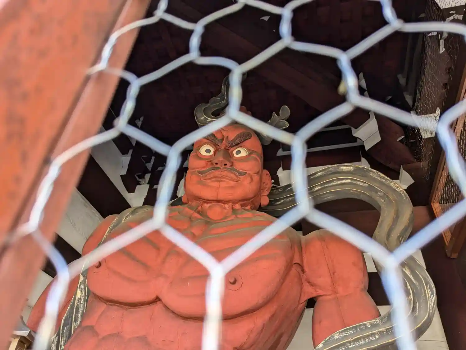 金網越しに