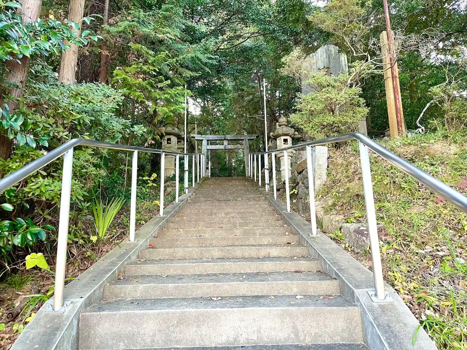 ご主祭は、建速須佐之男命 小学校の向かいの山の中腹に鎮座されています、参道が長いです