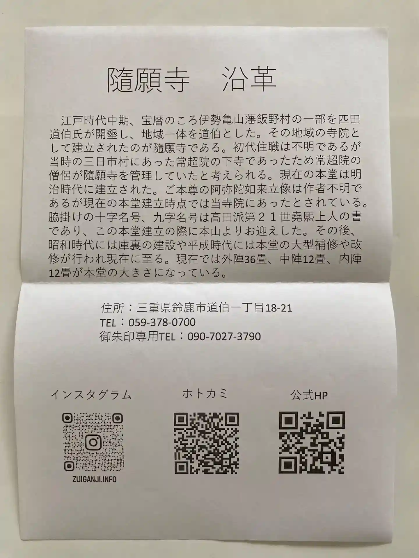 楽しみ方隨願寺のお参りの記録(1回目)