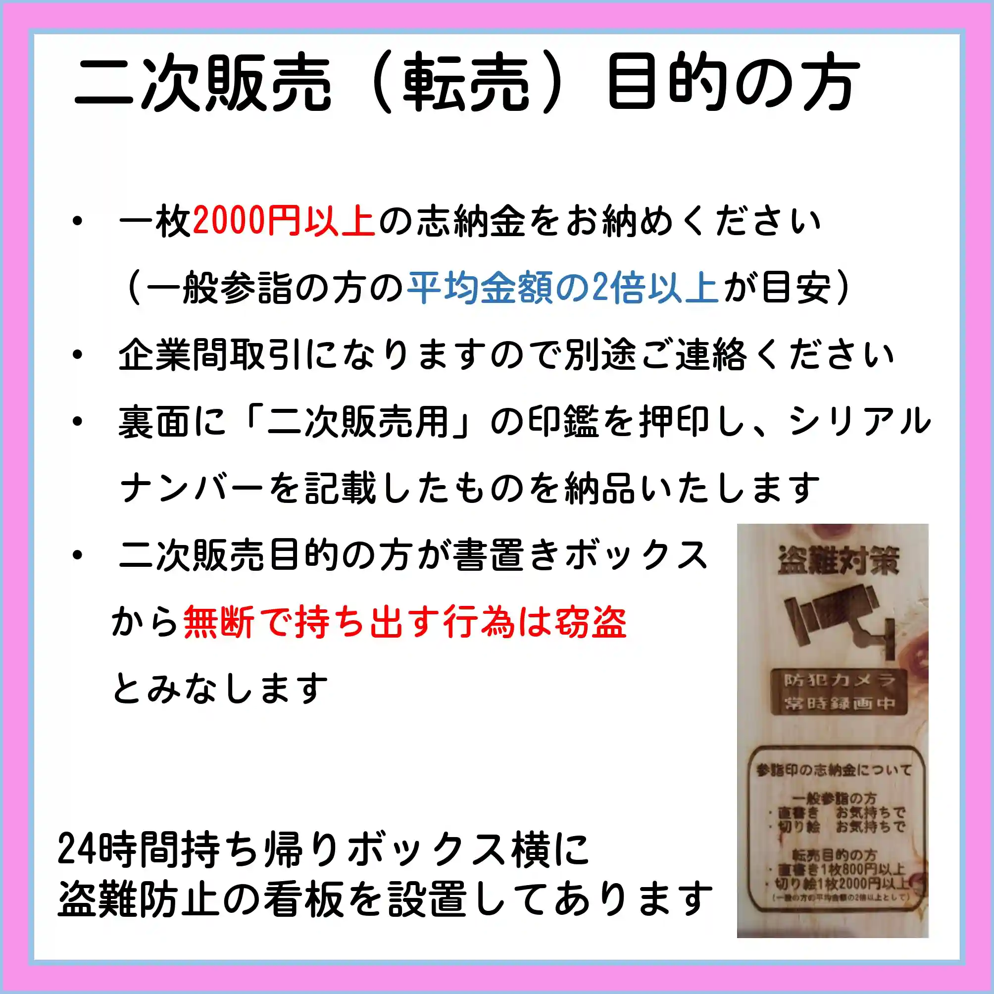 二次販売目的の方が書置きボックスから無断で持ち出す行為は窃盗とみなします