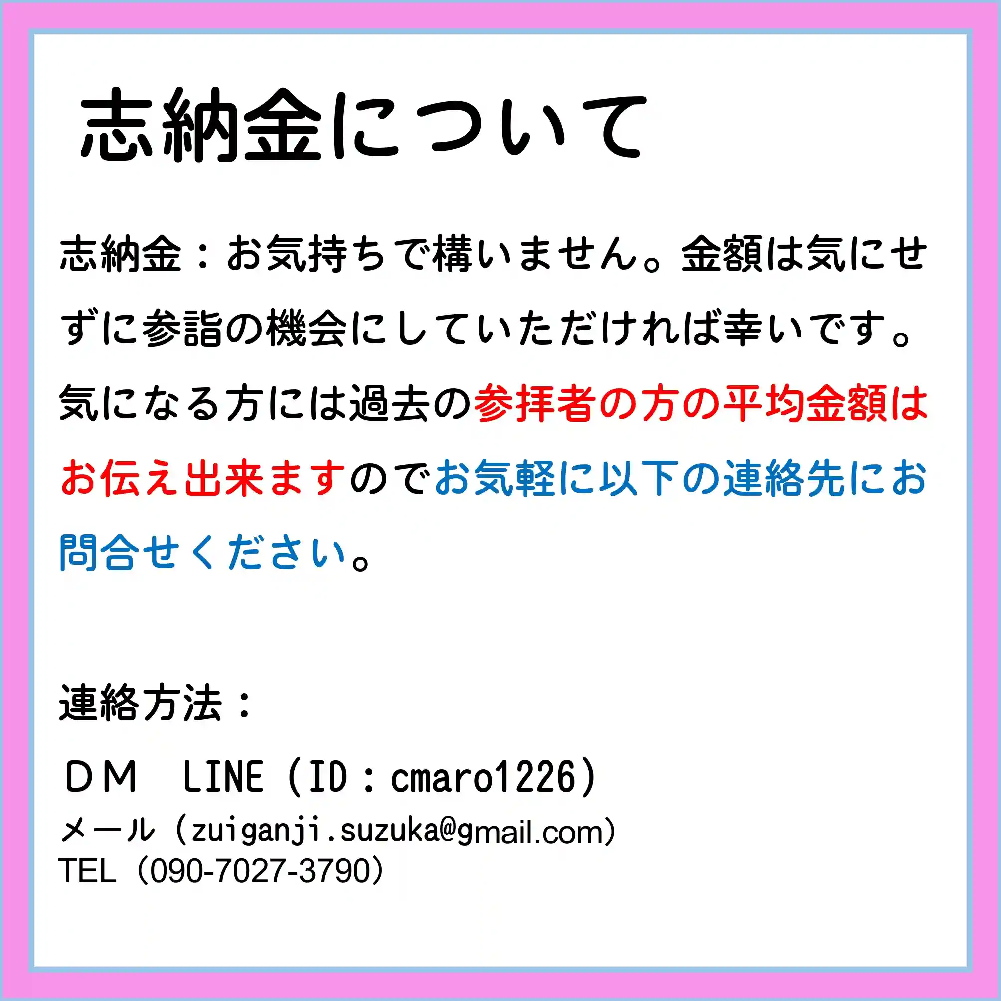 ご志納金は現金書留もしくはラインペイにてお願いいたします。