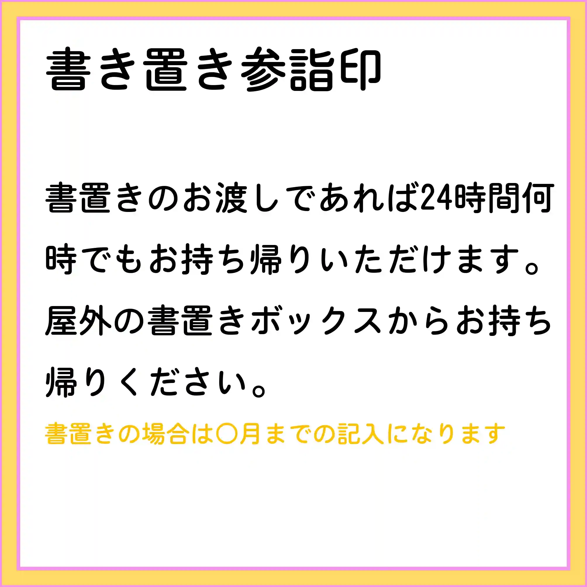 置き書きボックスの在庫は公式ホームページの在庫状況をご覧ください。前日までにご依頼いただけましたらお取り置き可能です。