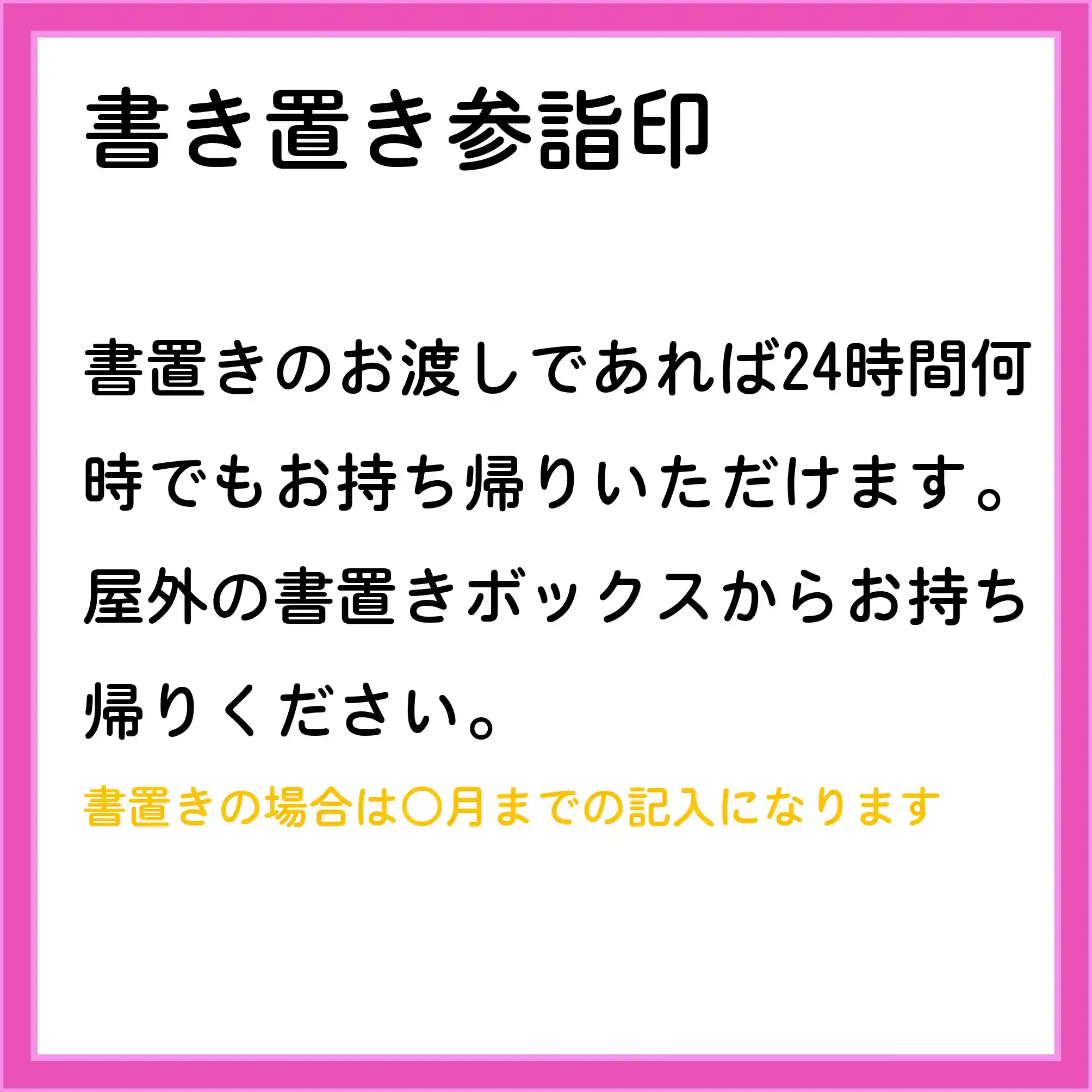 ※書置きボックスの在庫は保証いたしかねます。在庫確認のご連絡はご遠慮なくいただければ幸いです。