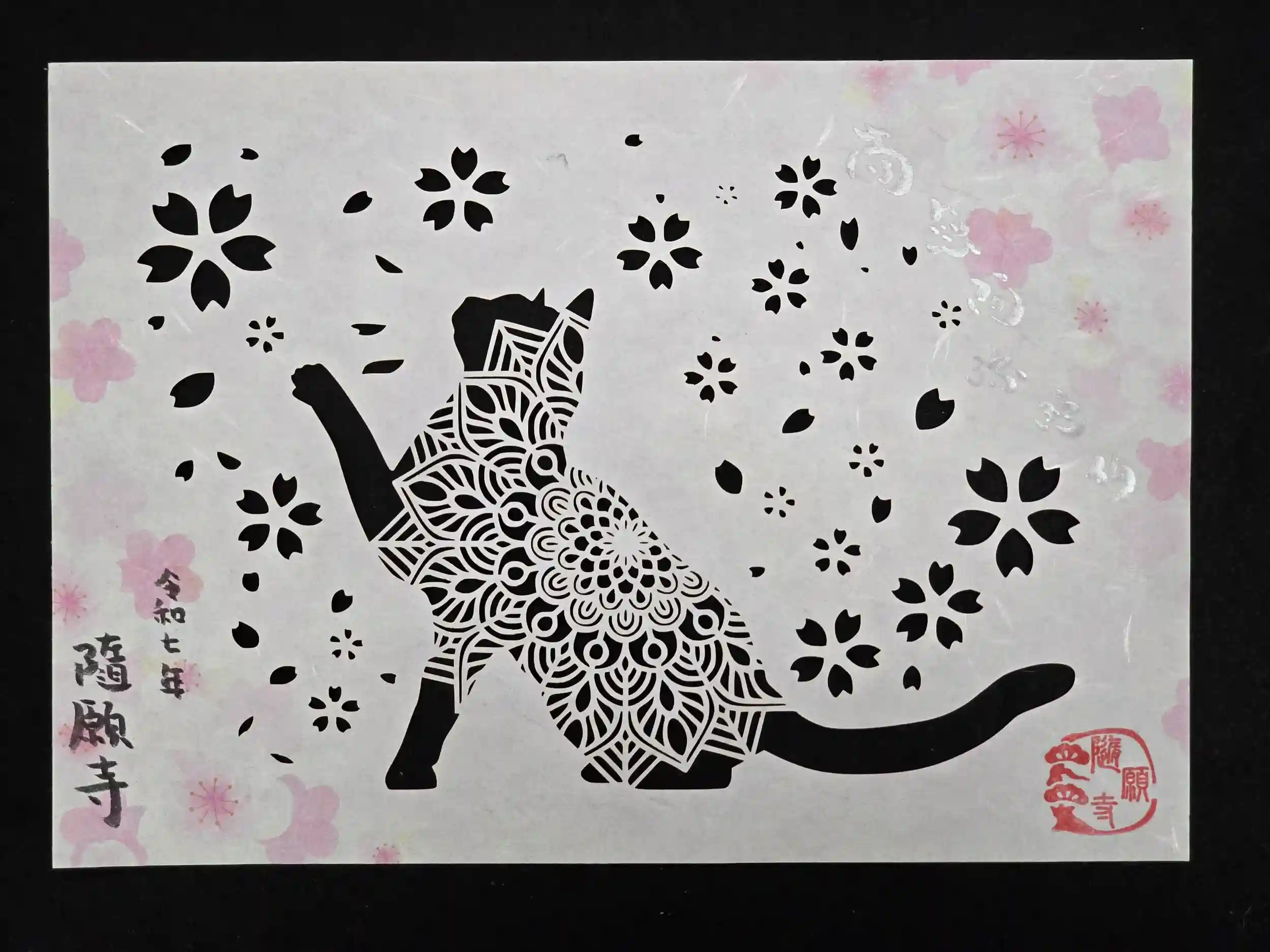 桜と猫の切り絵参詣印 2025