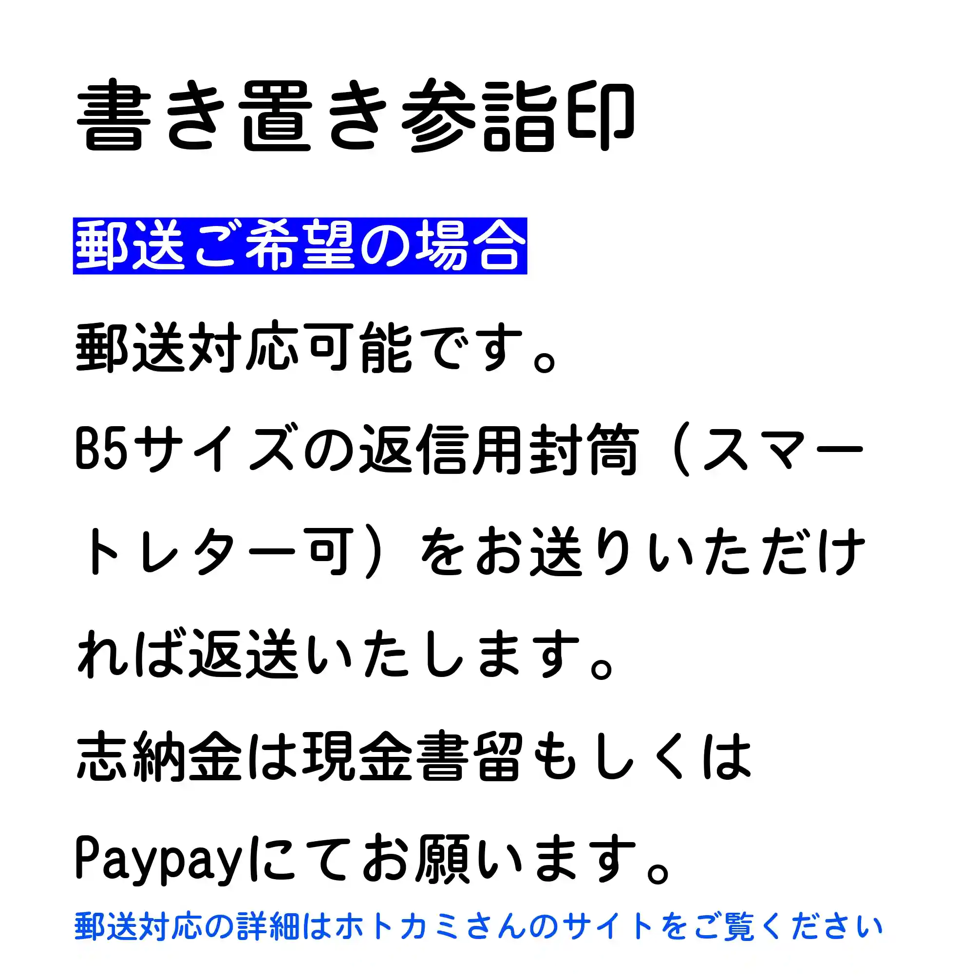 志納金がございましたら現金書留にて送付願います。