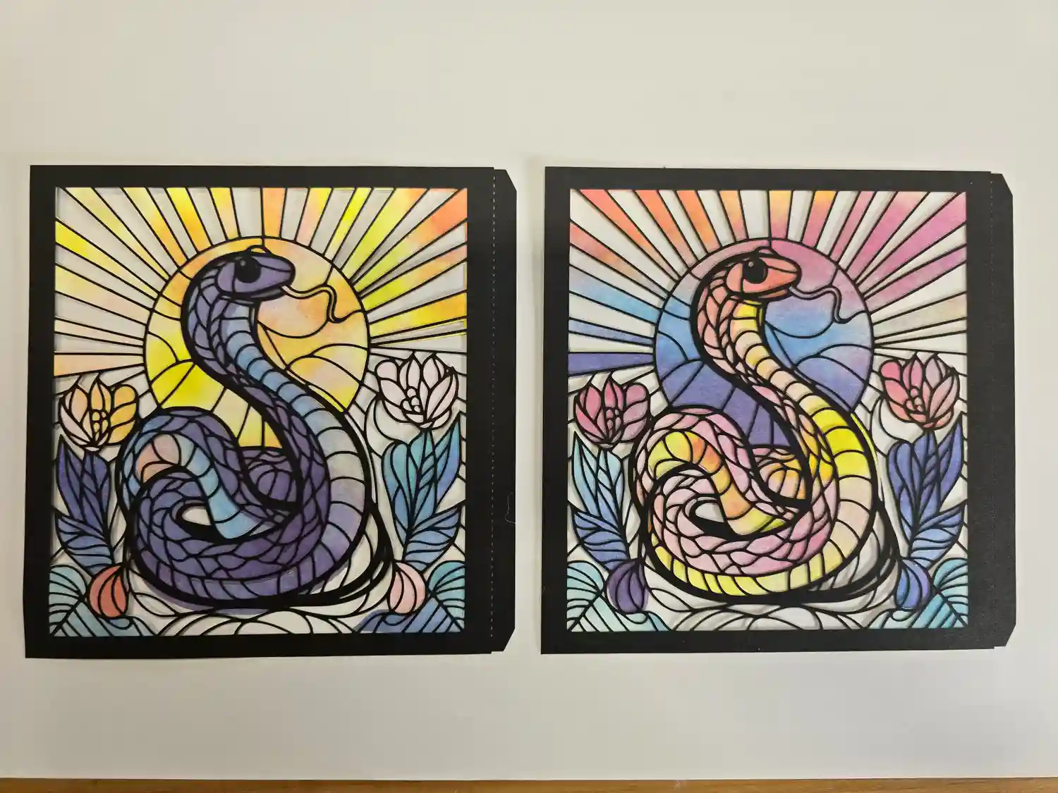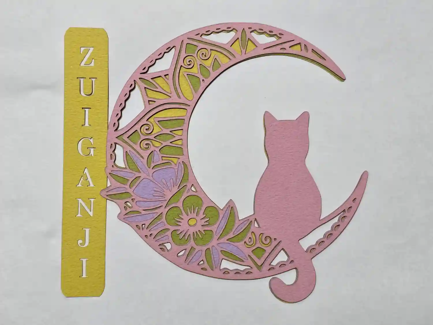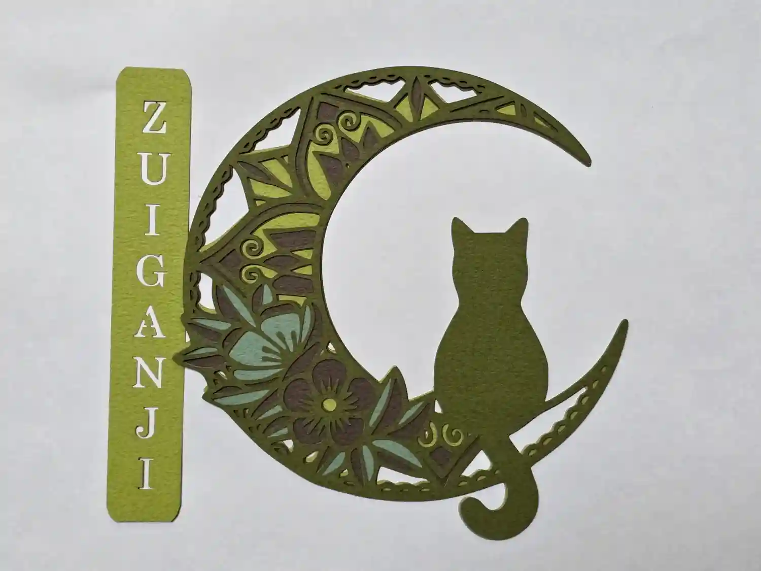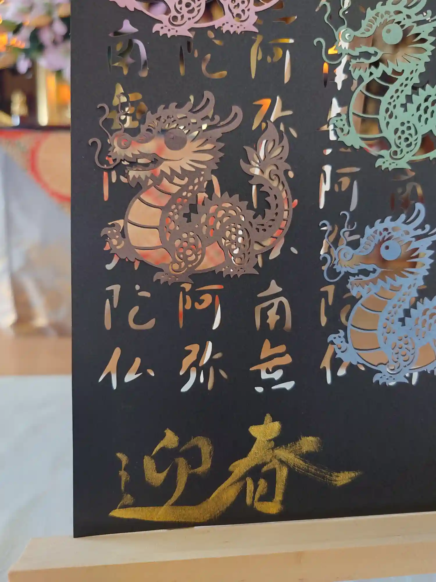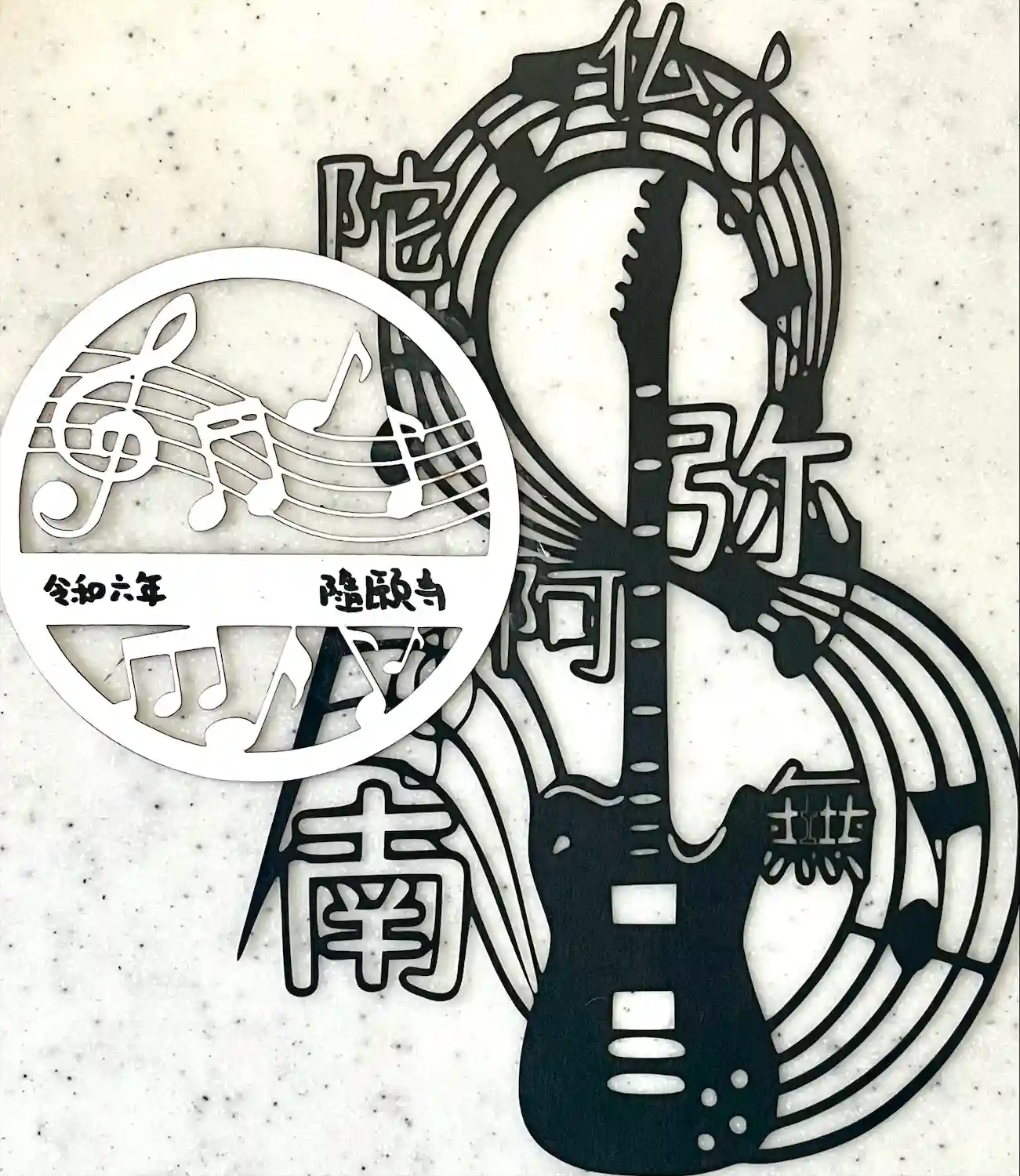 三色の紙を使用し切り絵に仕上げました。中央には「慈悲」の二文字を書き込みます。