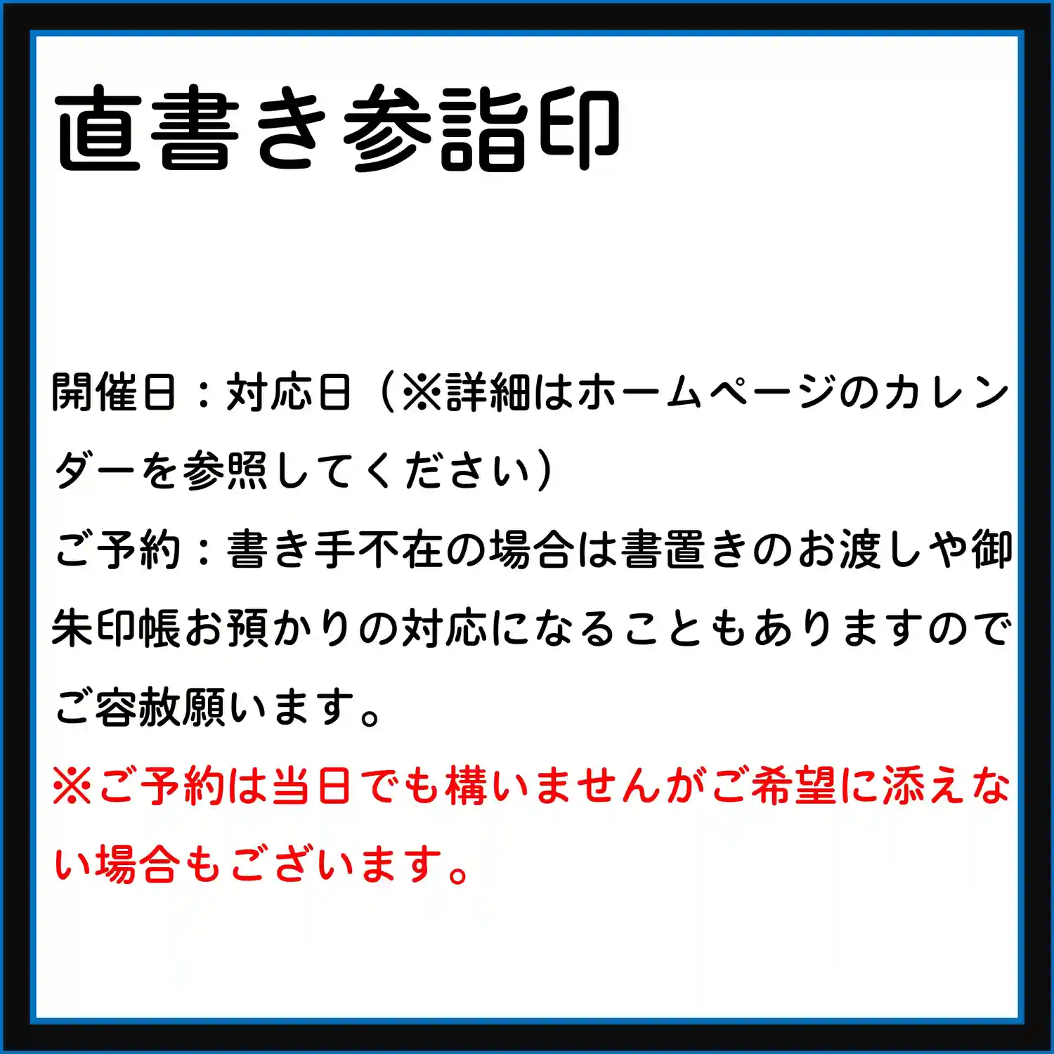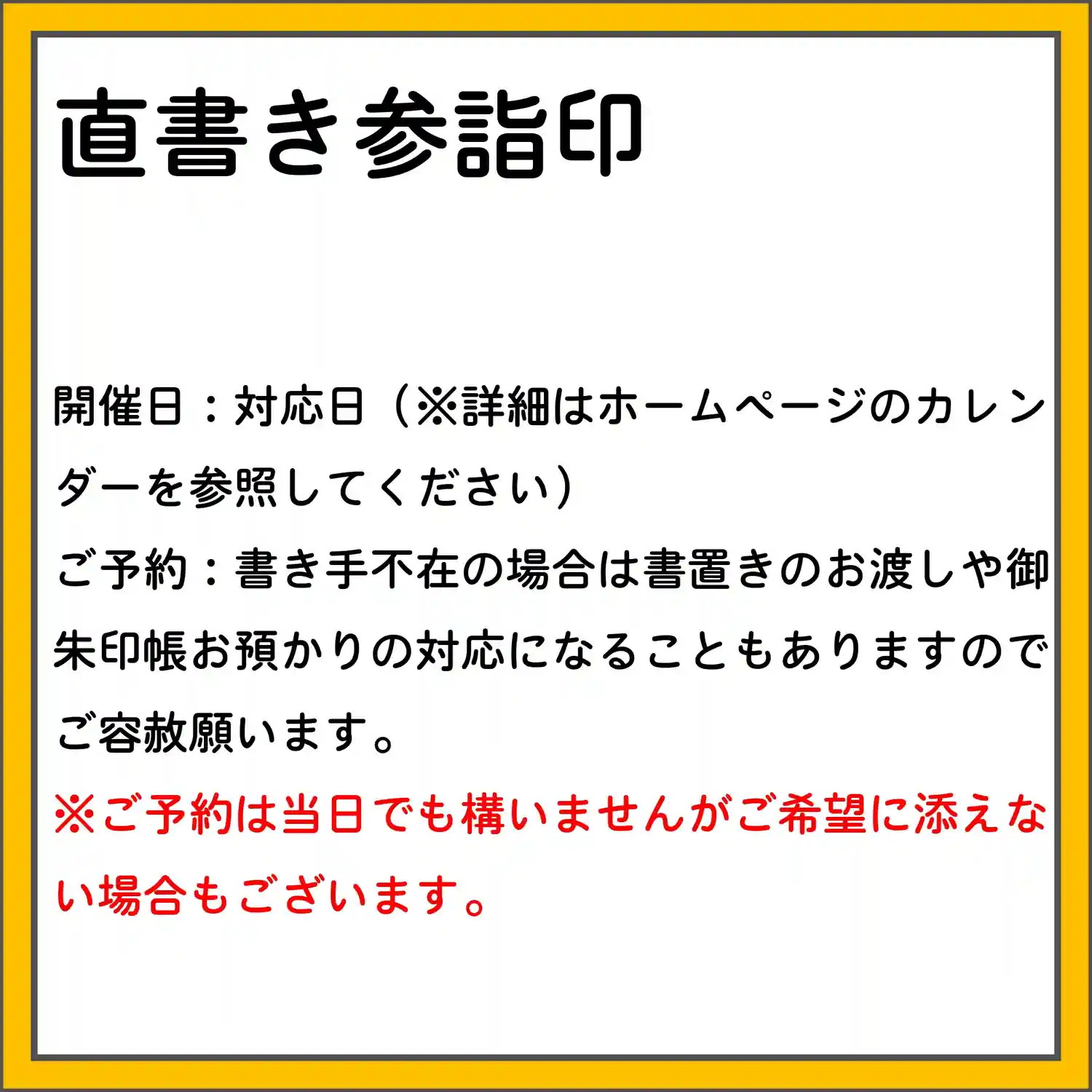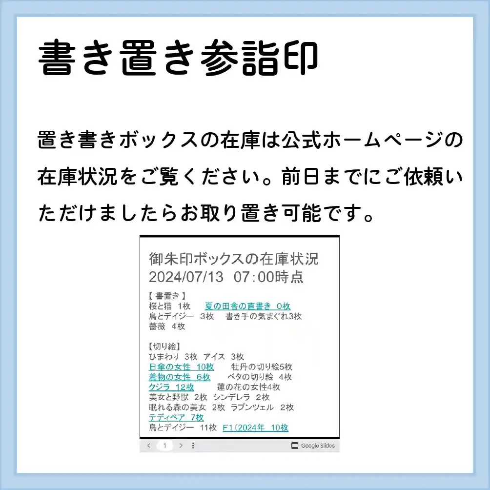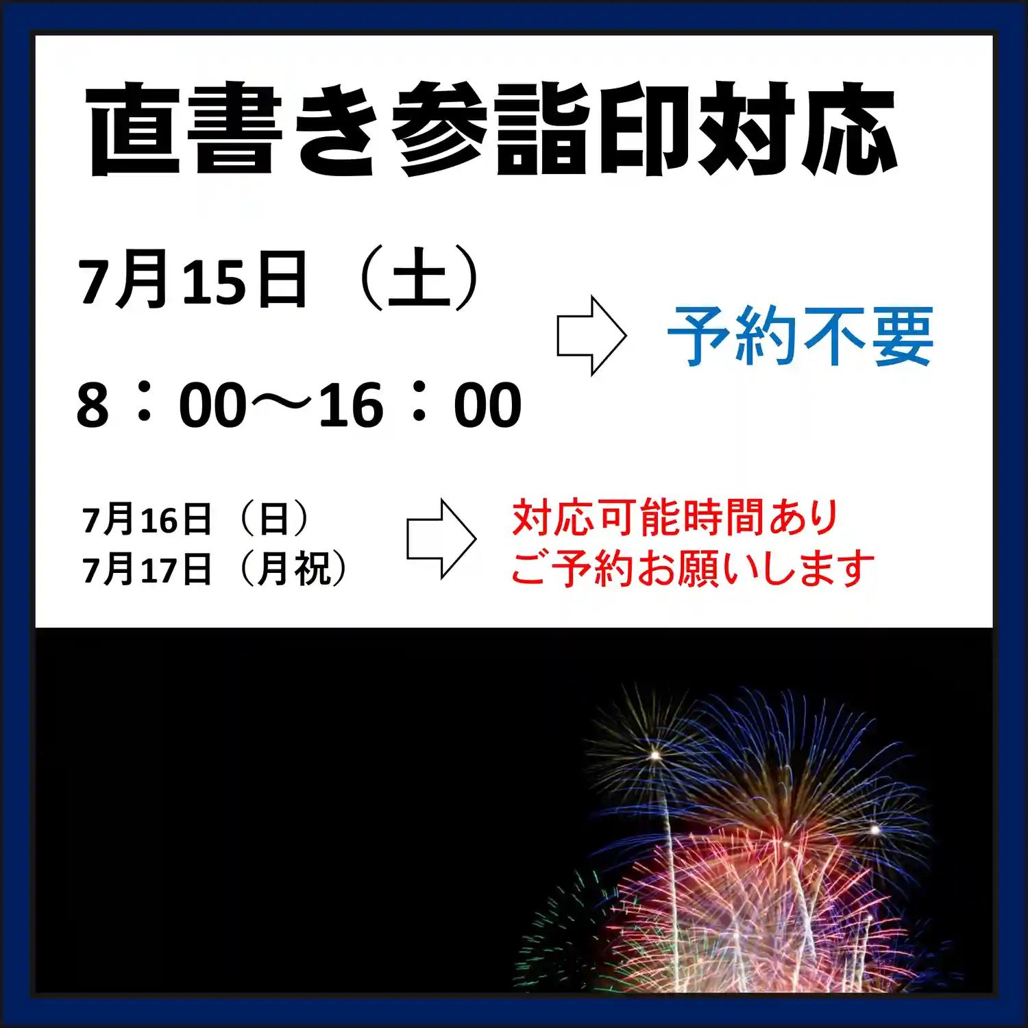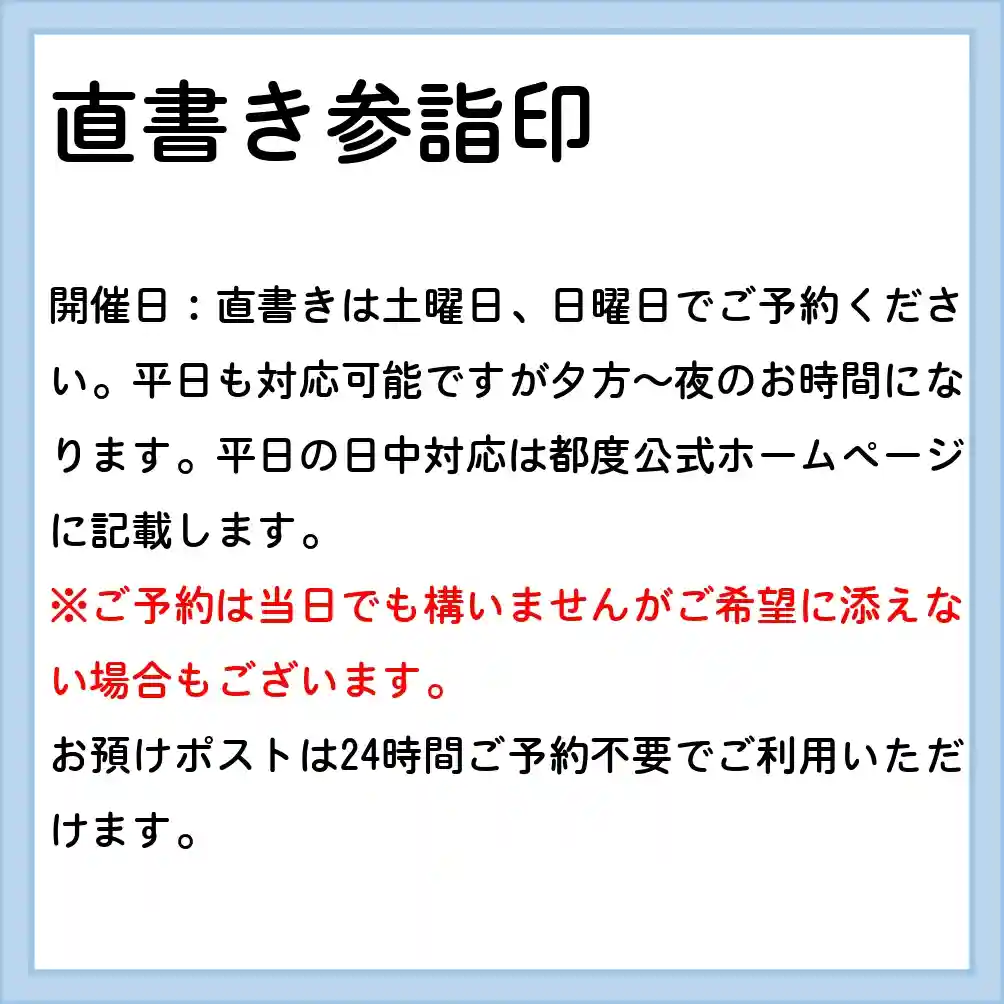 7月の3連休の直書き参詣印対応は以下のとおりです。
