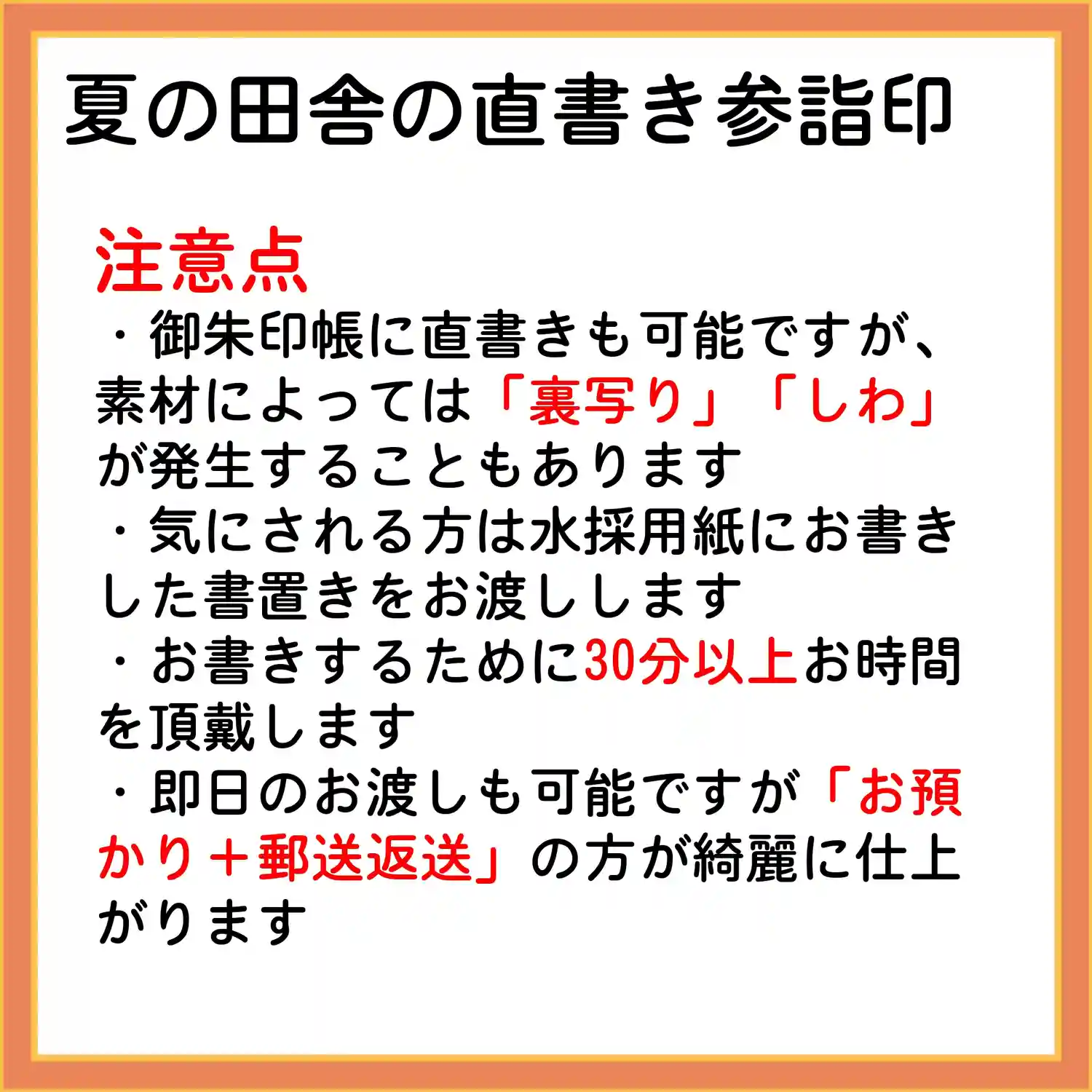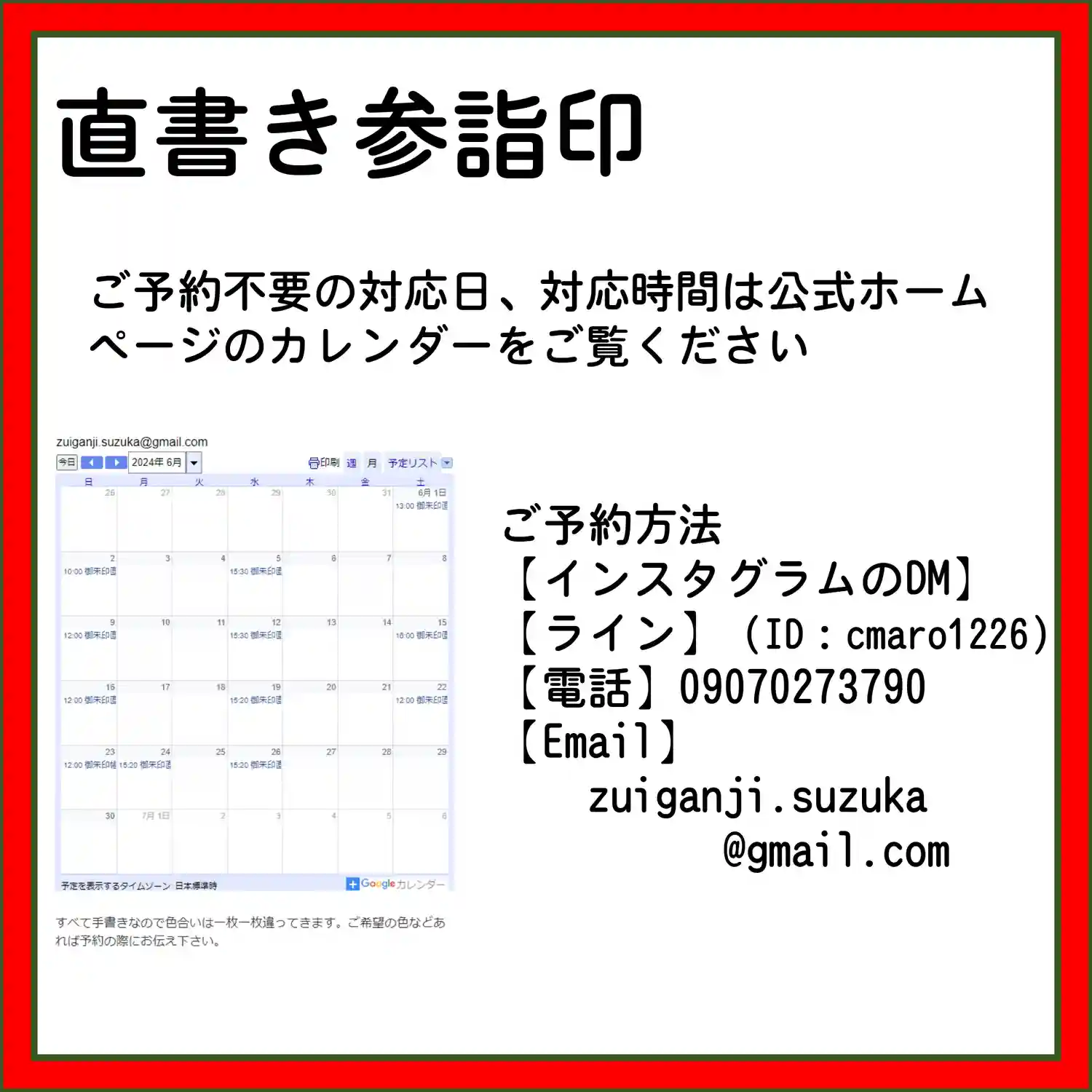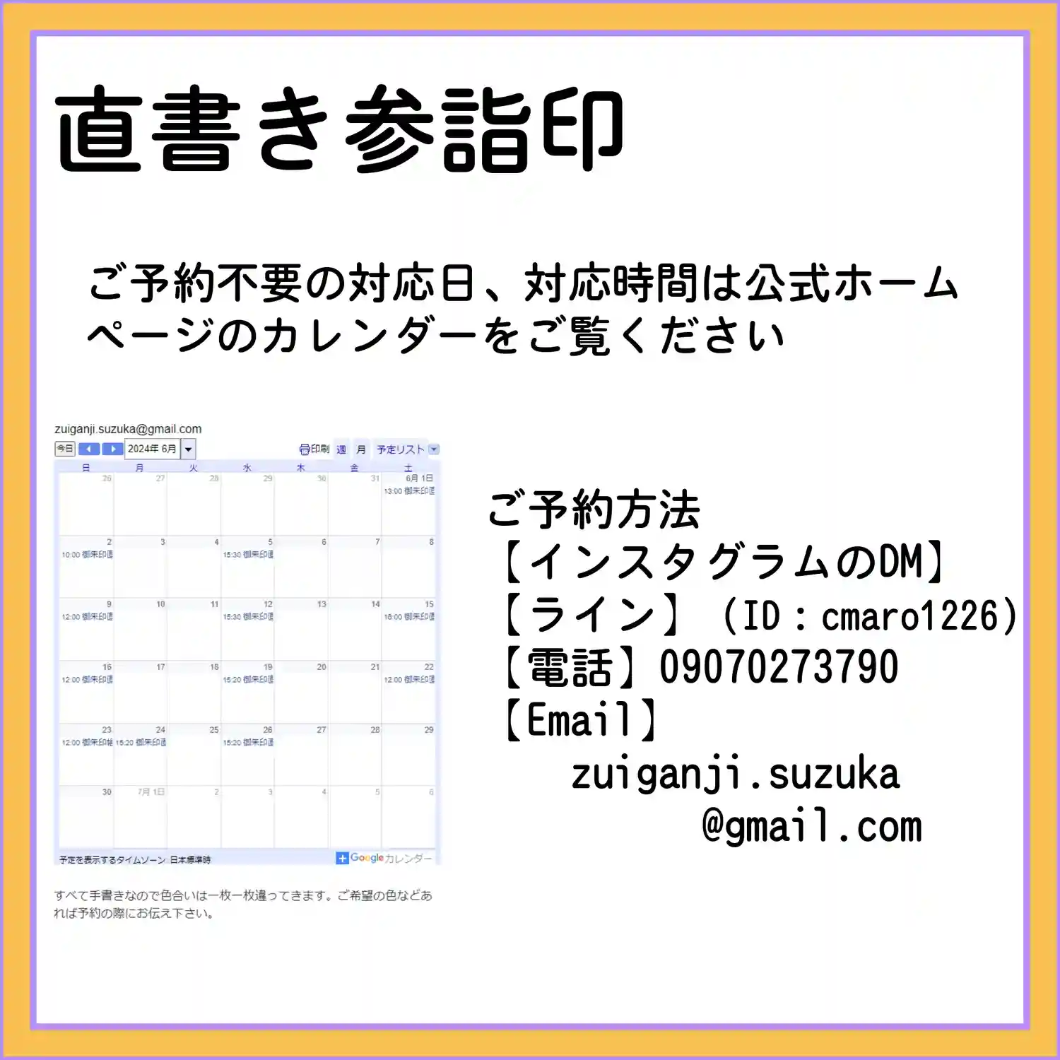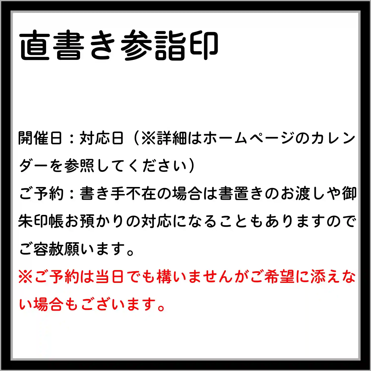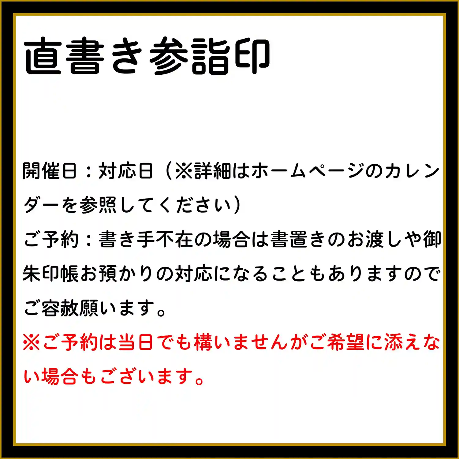 7月の3連休の直書き参詣印対応は以下のとおりです。