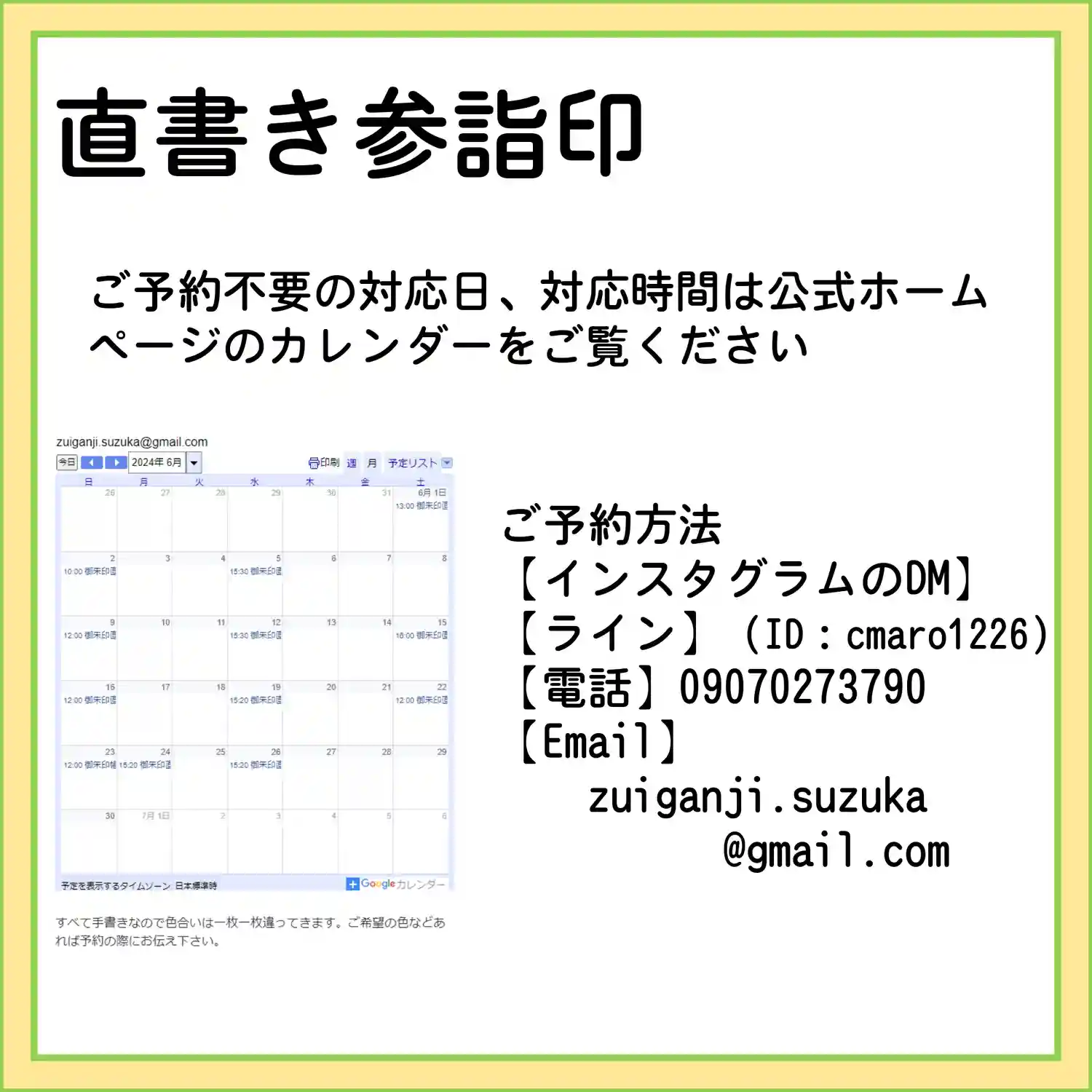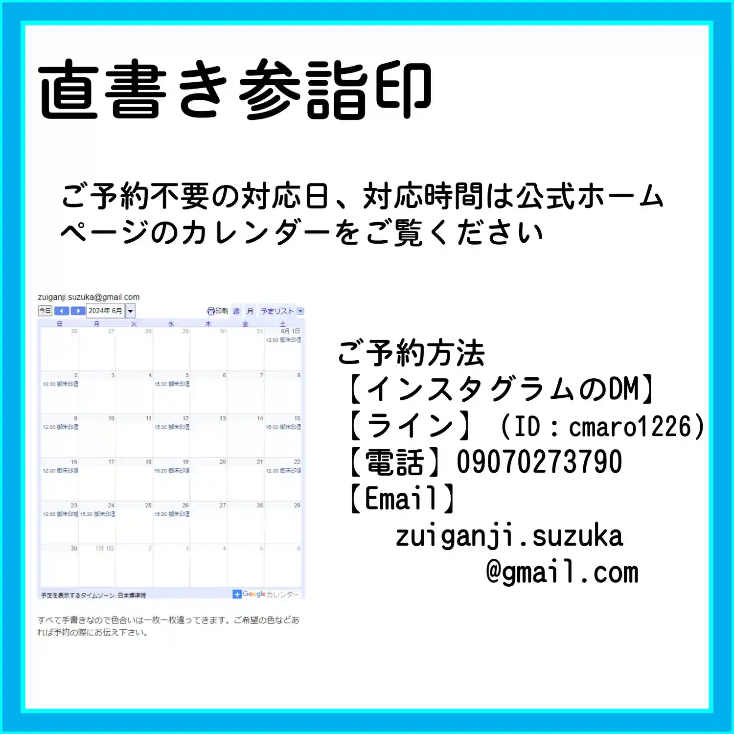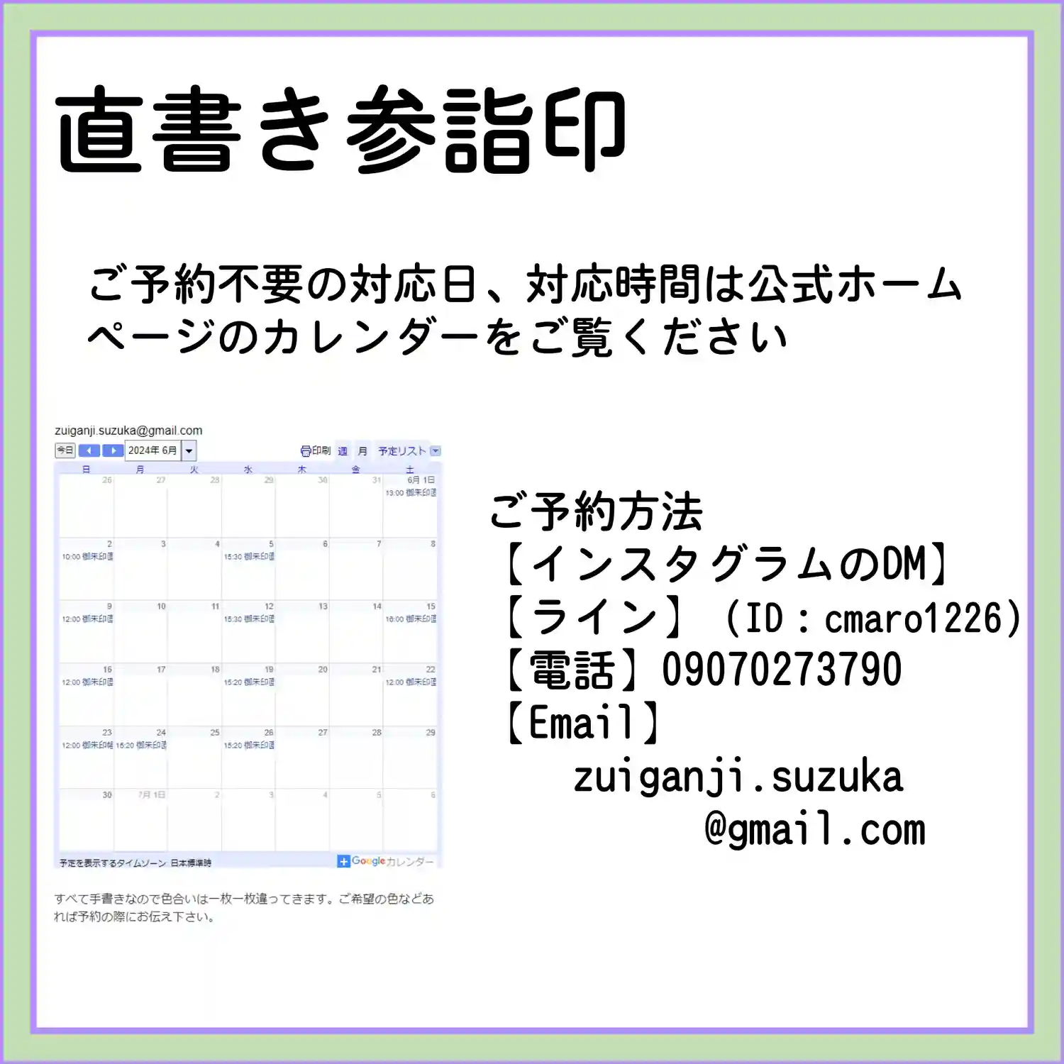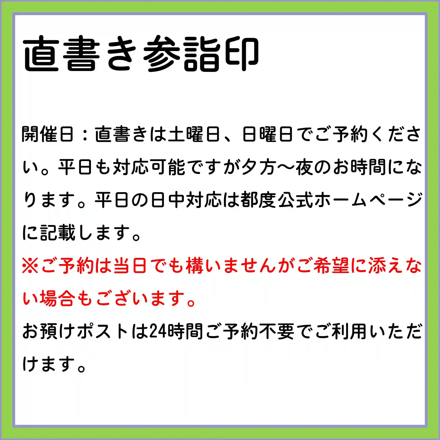 7月の3連休の直書き参詣印対応は以下のとおりです。
