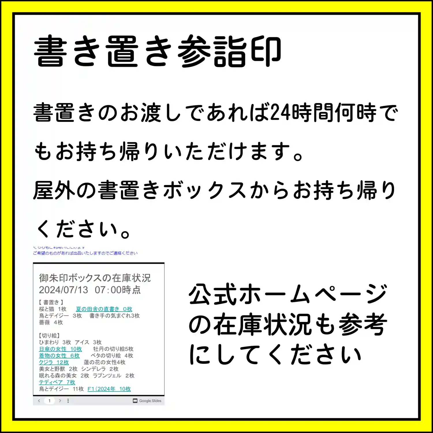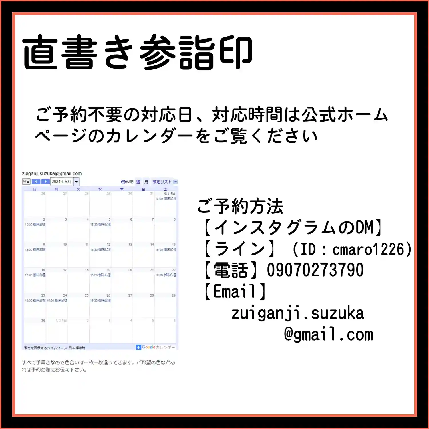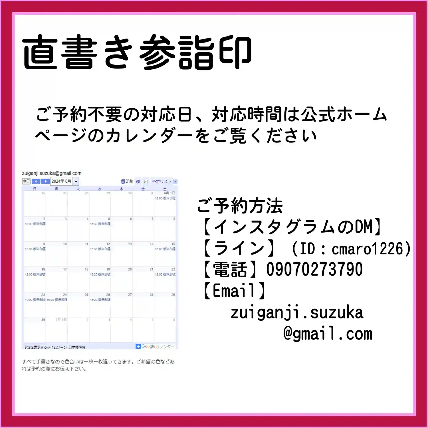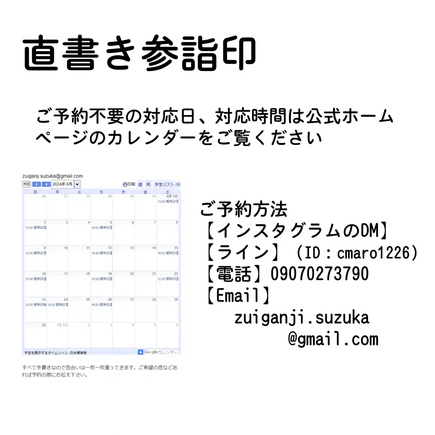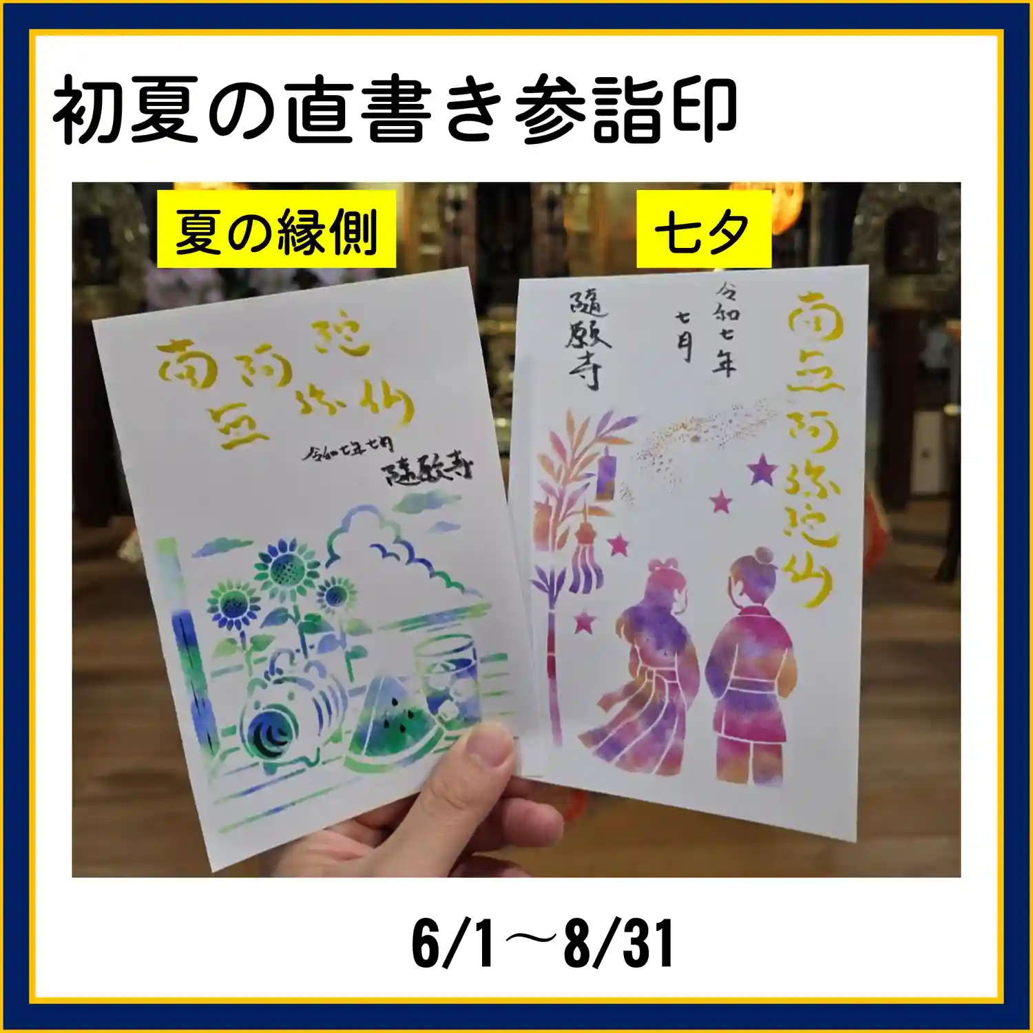 7月の3連休の直書き参詣印対応は以下のとおりです。