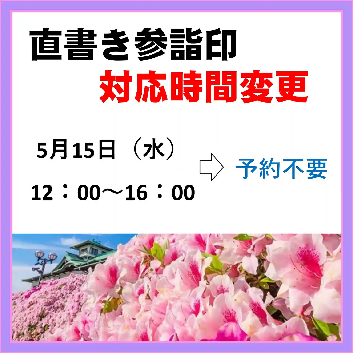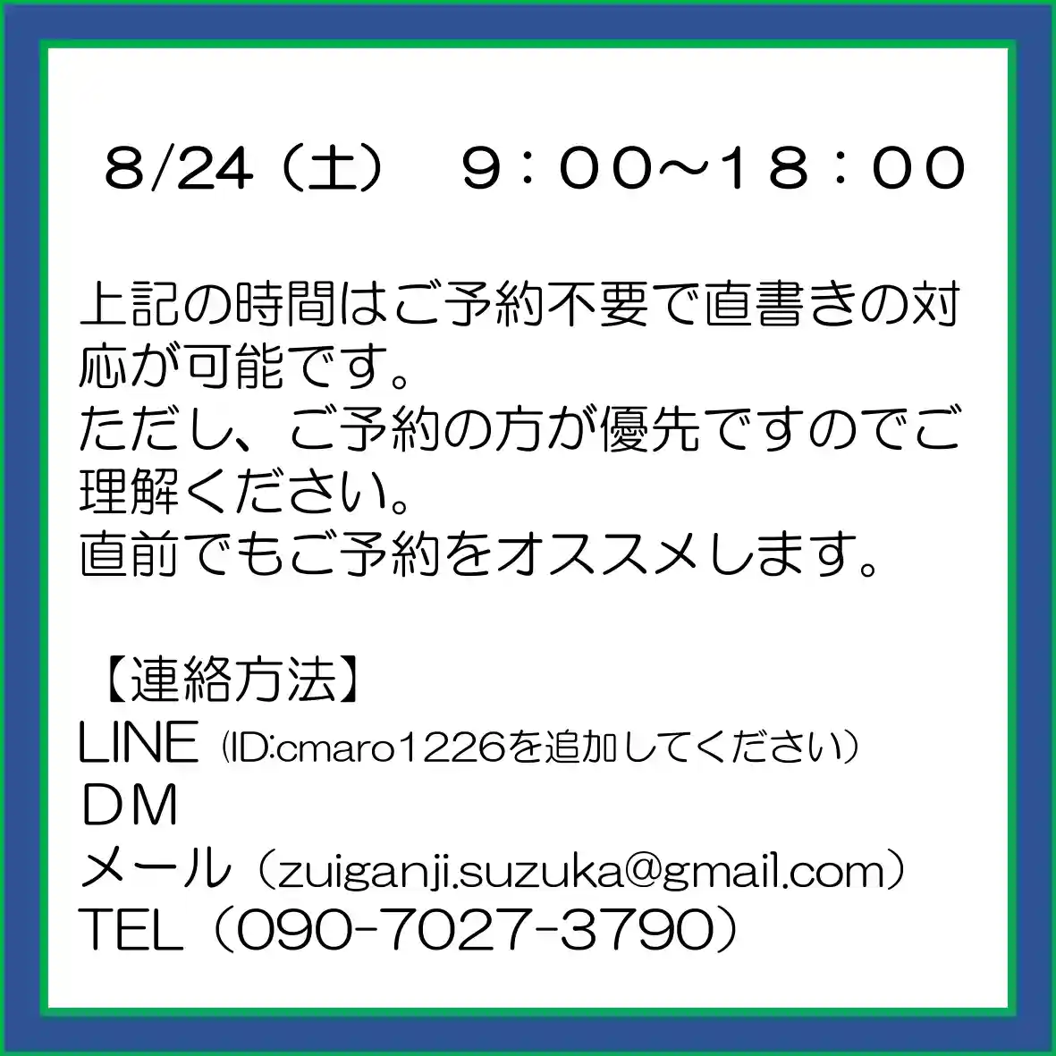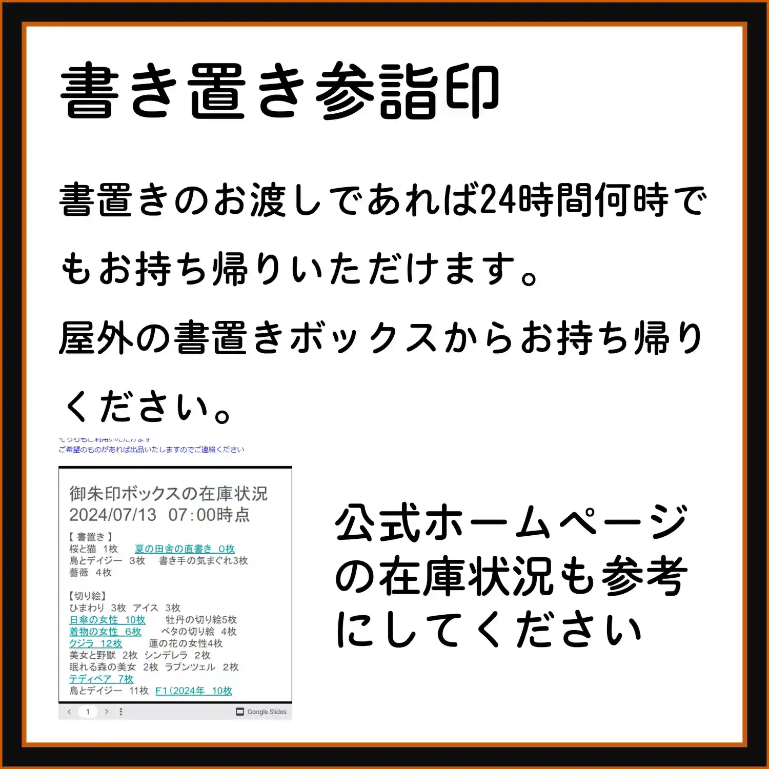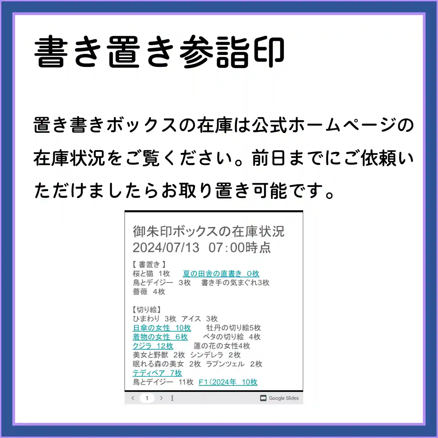 7月の3連休の直書き参詣印対応は以下のとおりです。