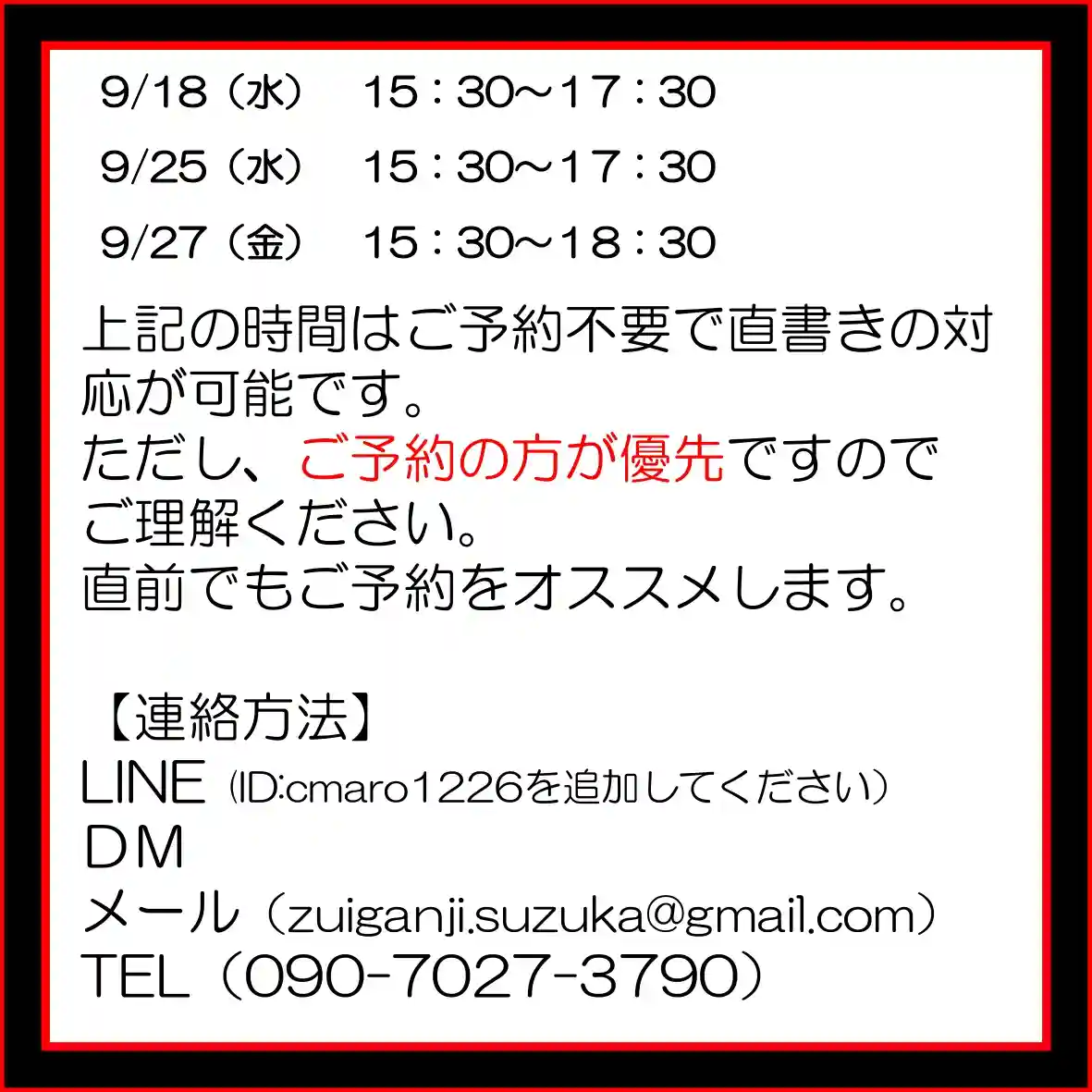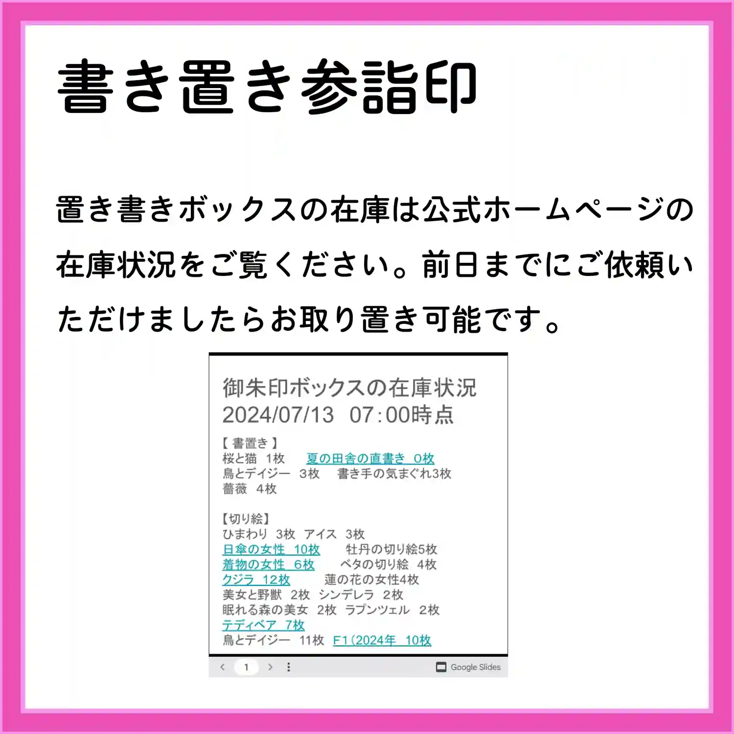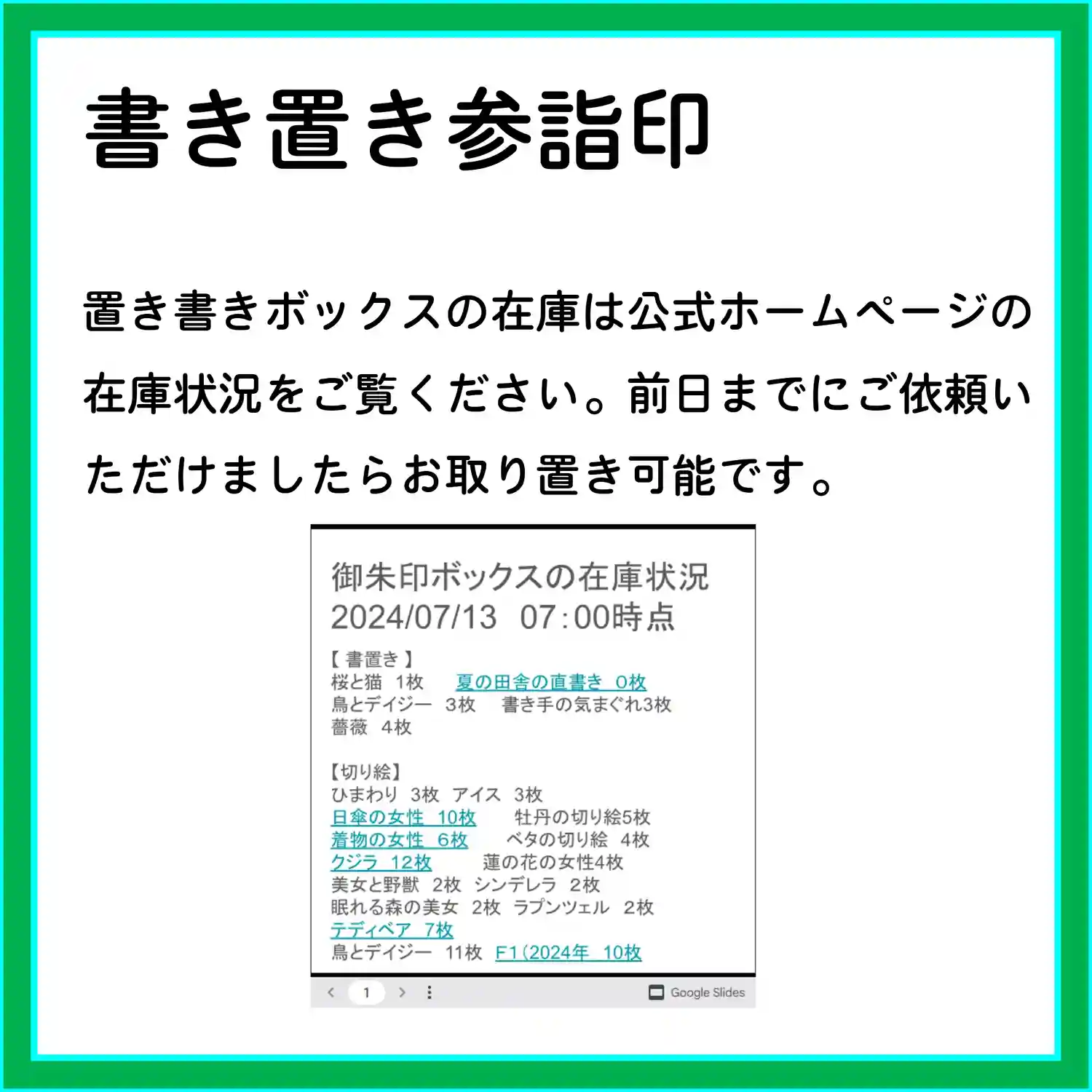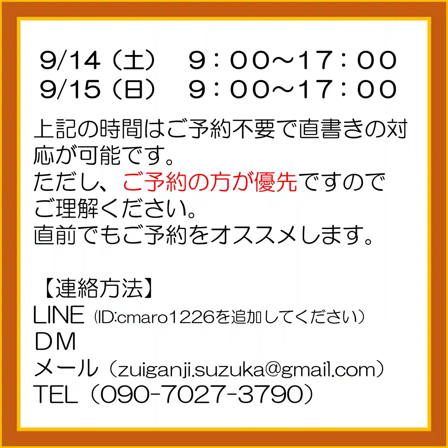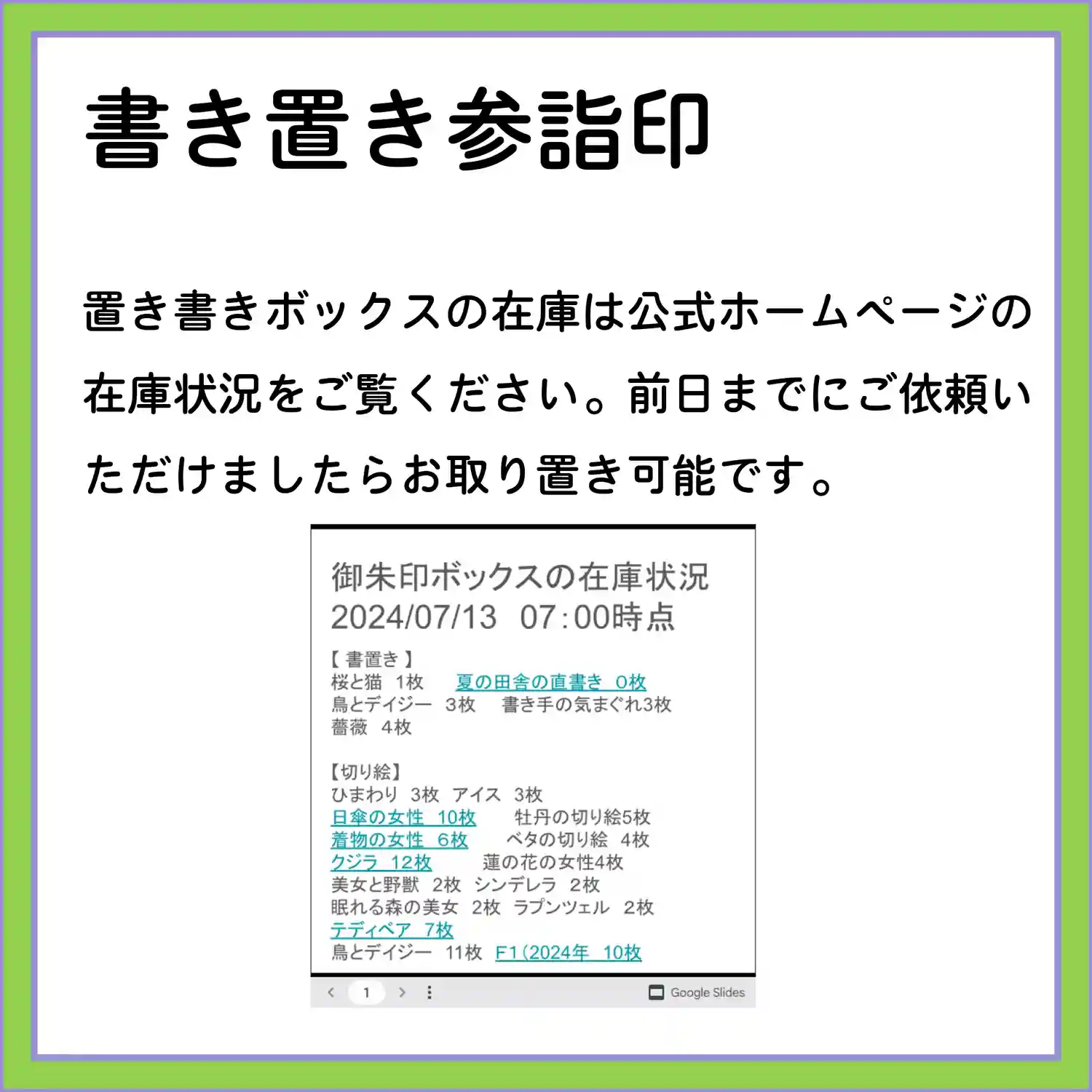 7月の3連休の直書き参詣印対応は以下のとおりです。