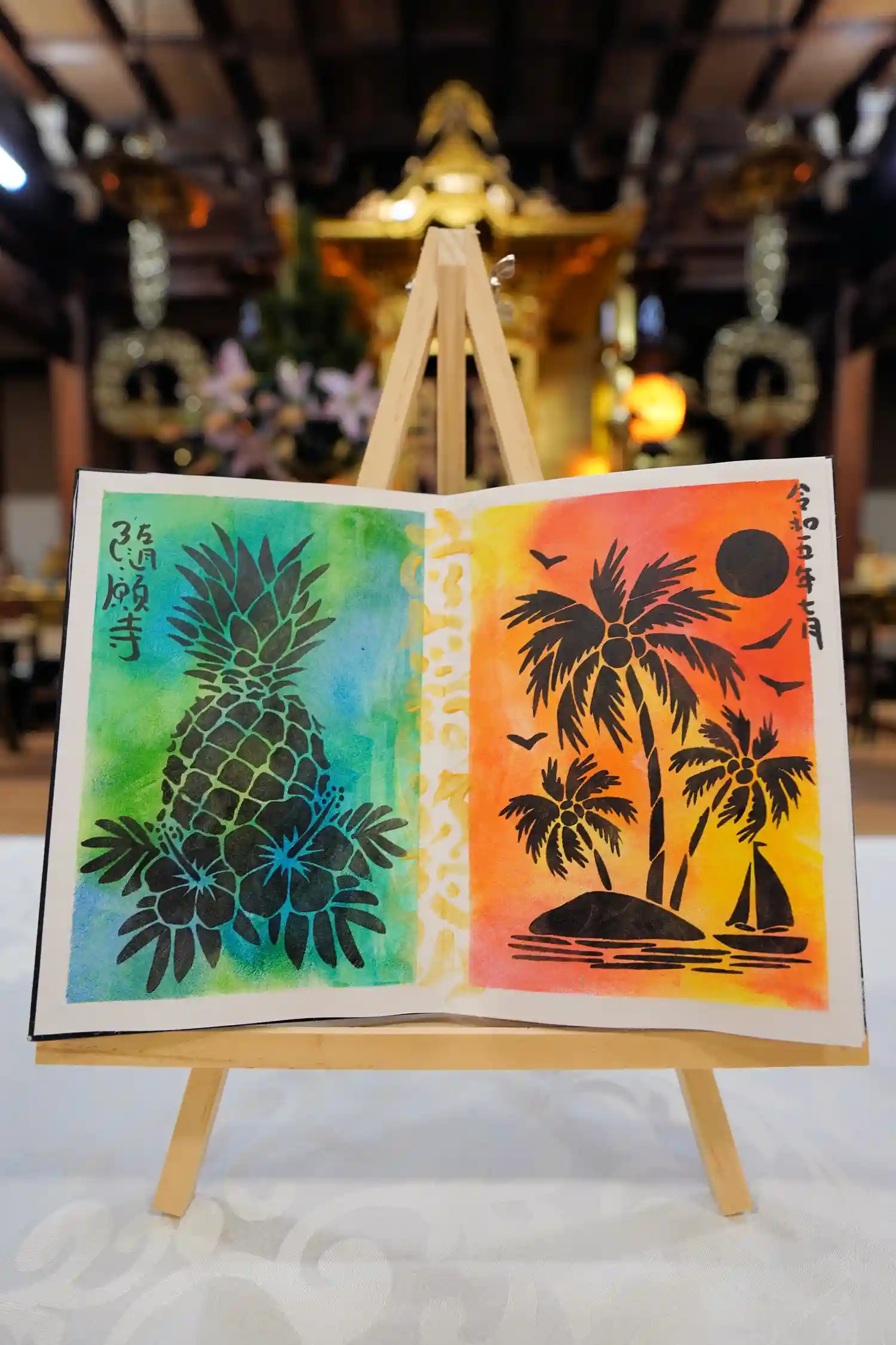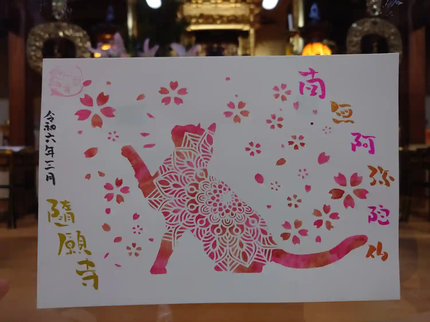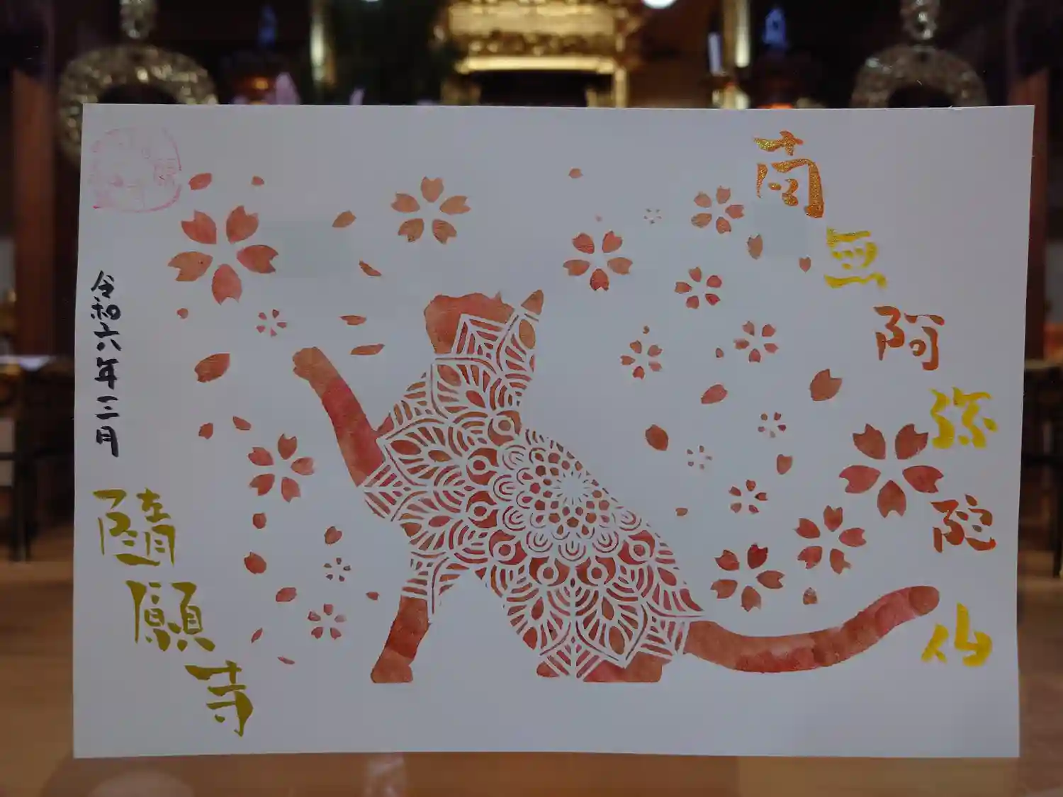 本堂内にてサバトラちゃんのアート御朱印を撮らせて頂きました。
