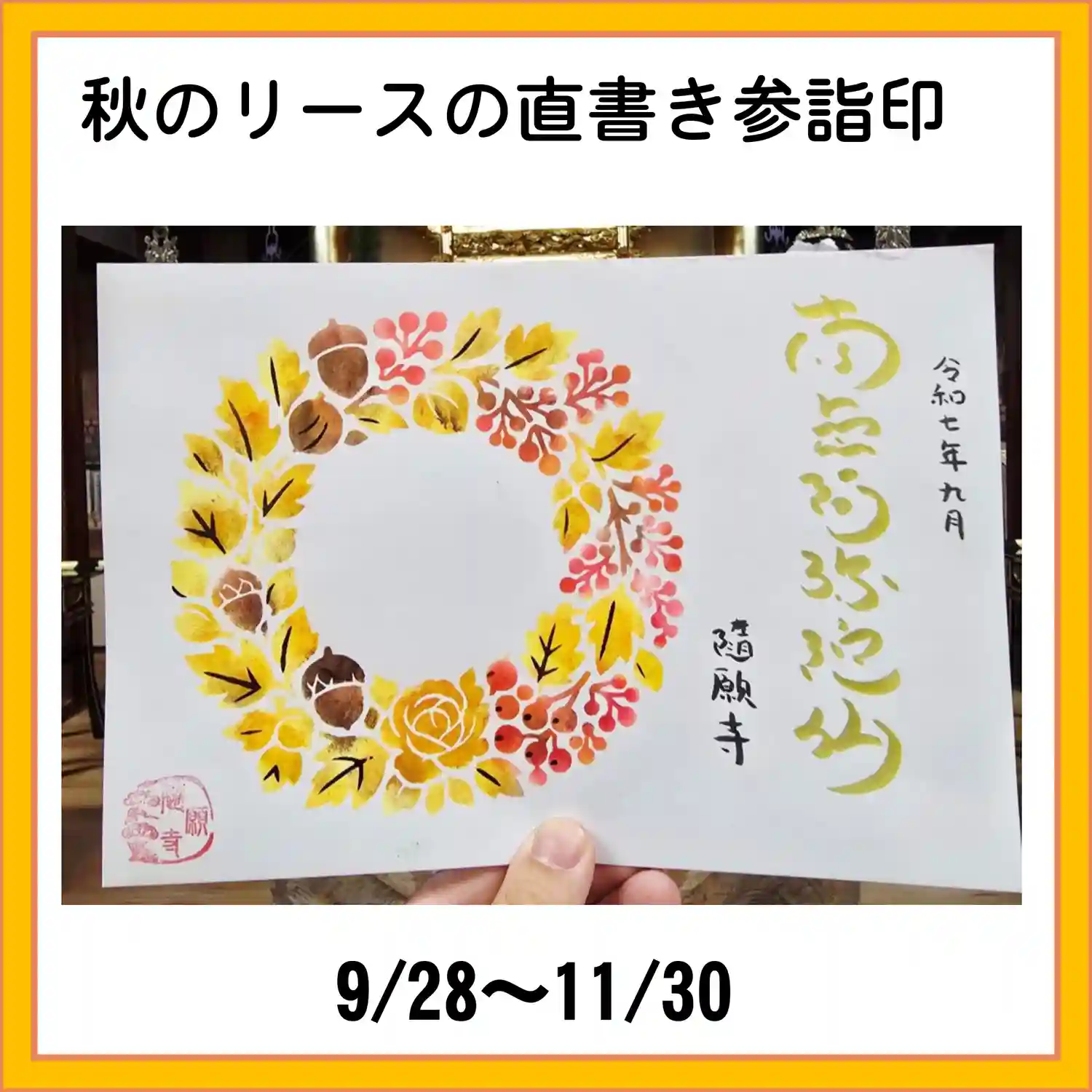 秋のリースの直書き参詣印