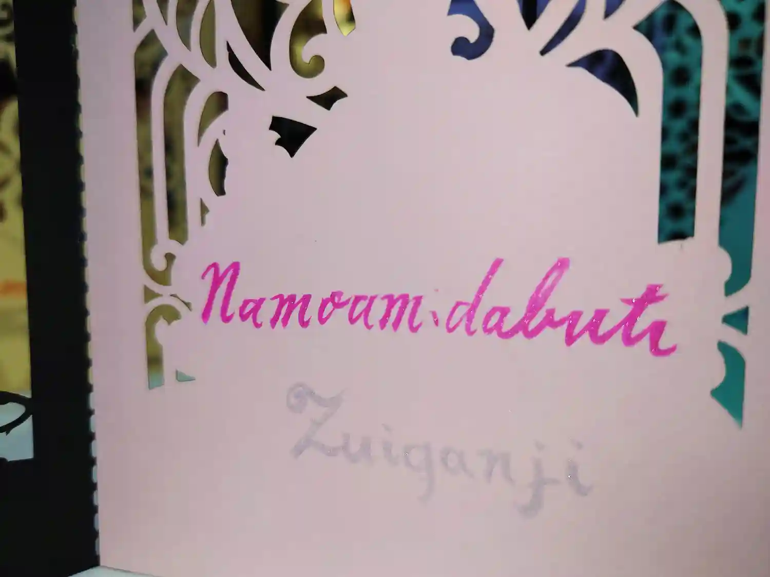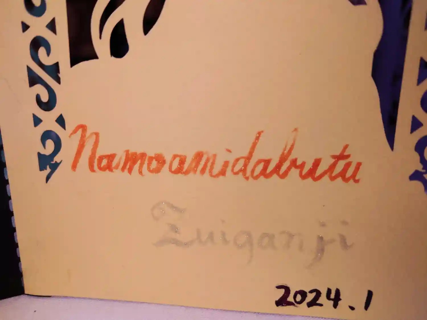 「南無阿弥陀仏」の文字を 赤系、青系、虹色など希望に合わせて書き…