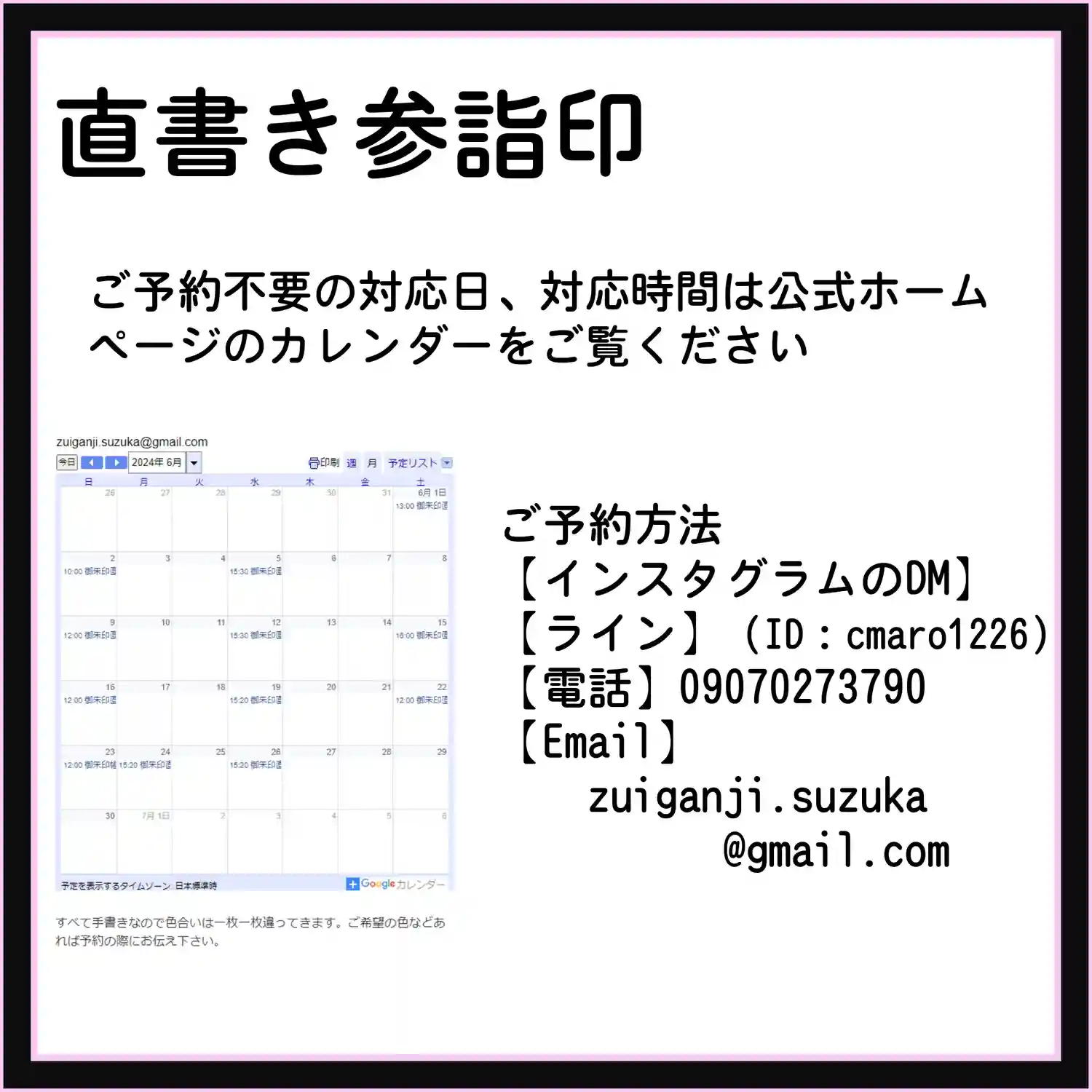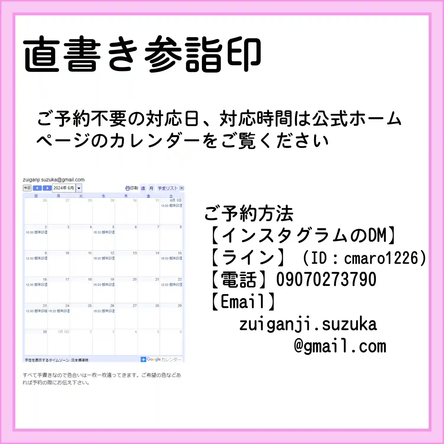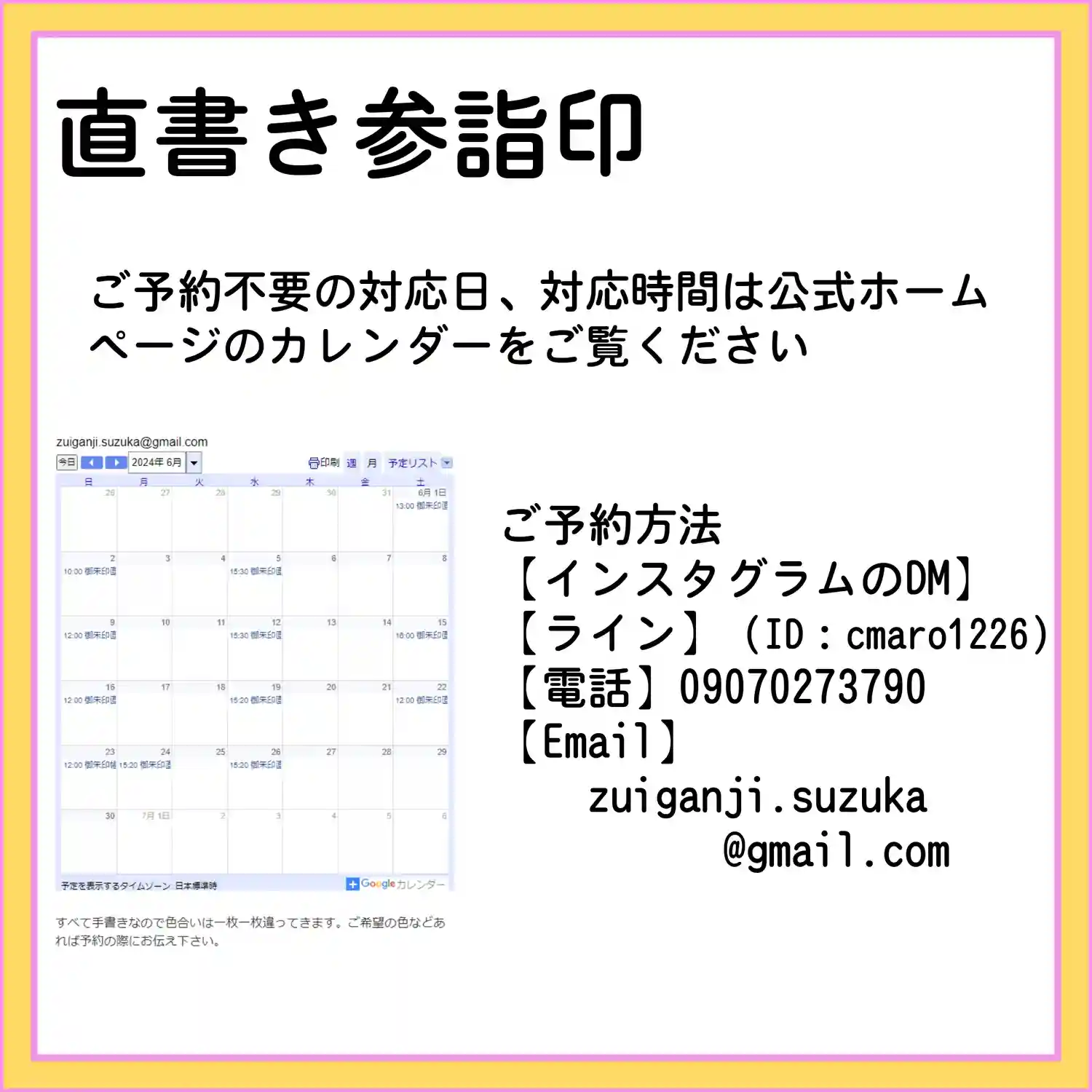 直書きしてもらって 手元の写真…