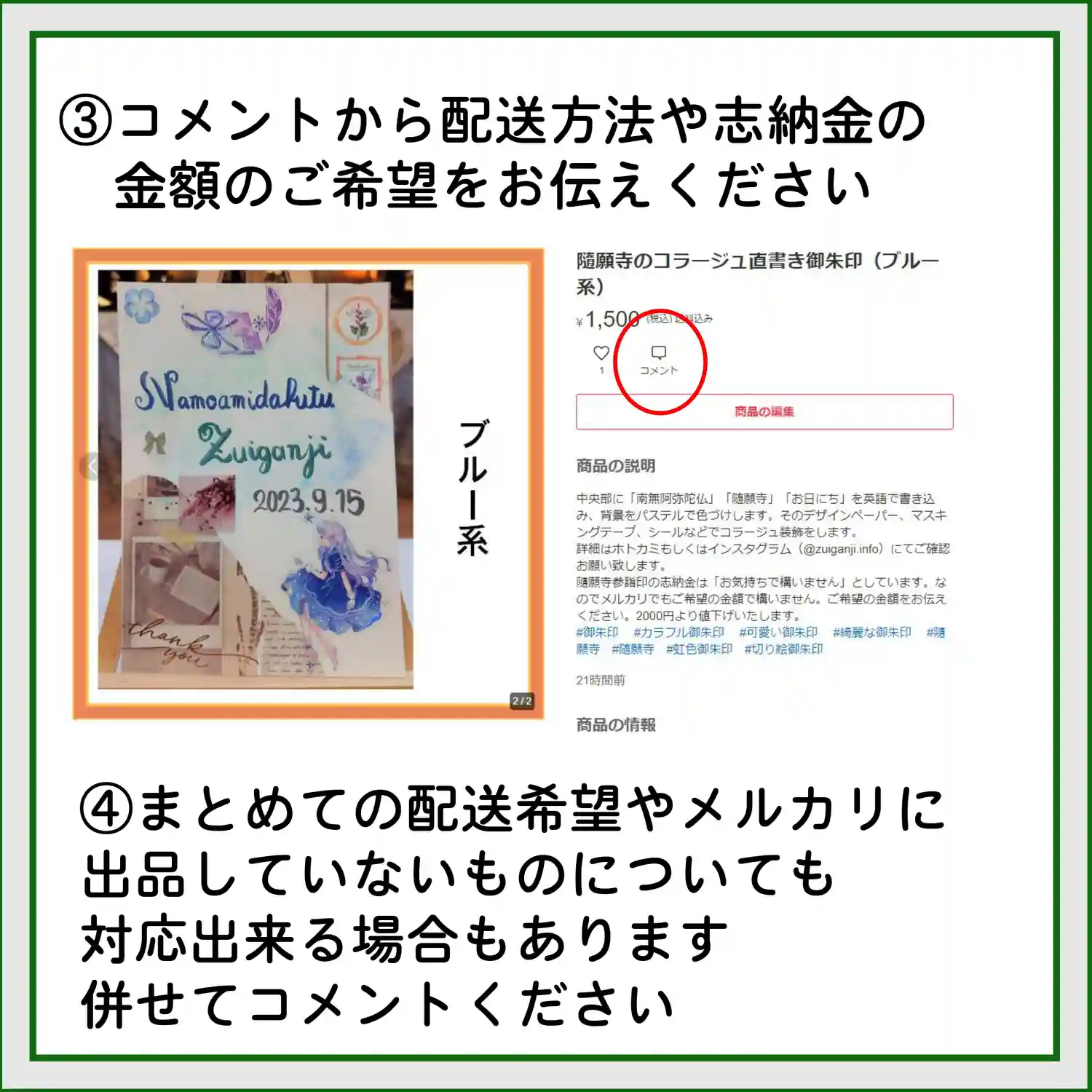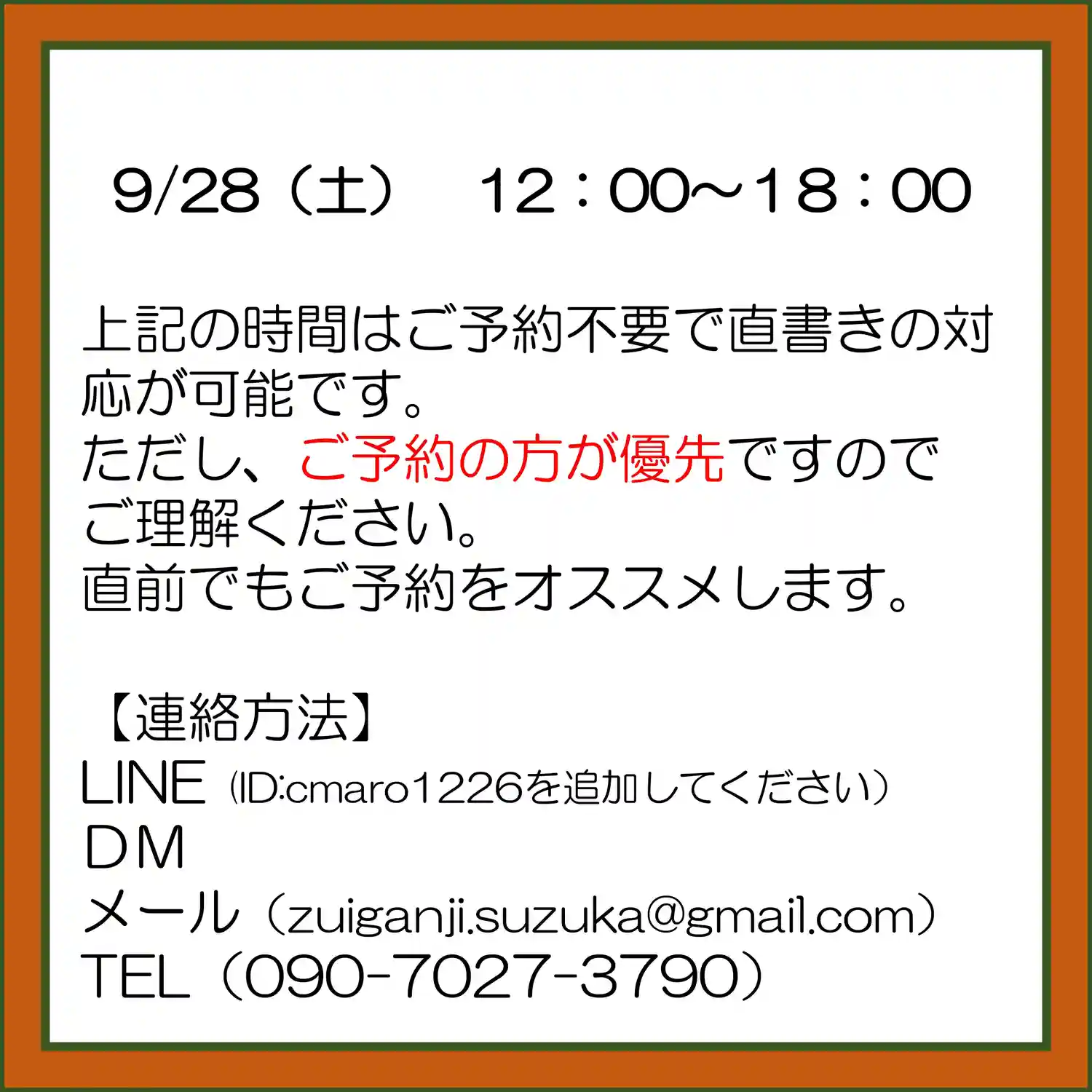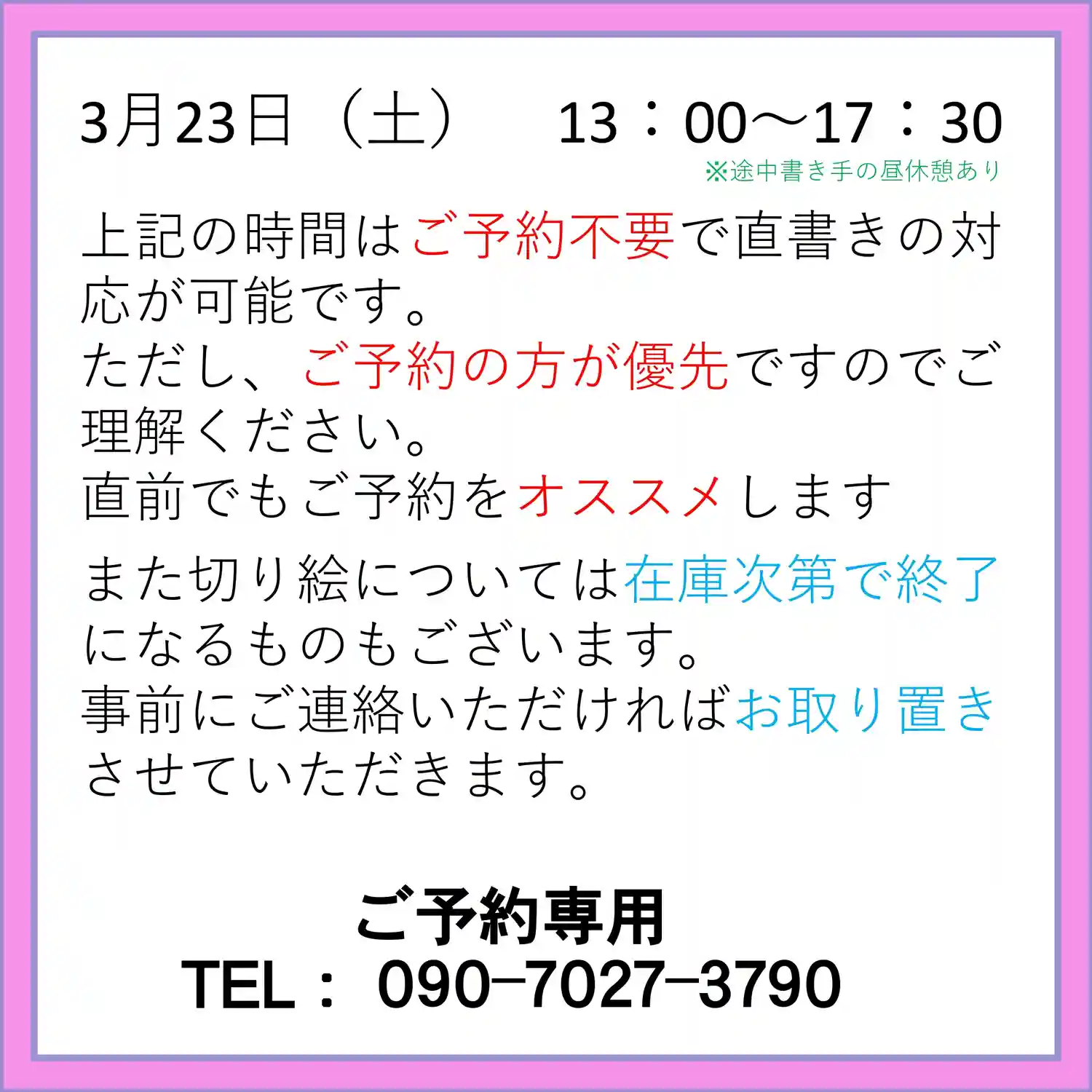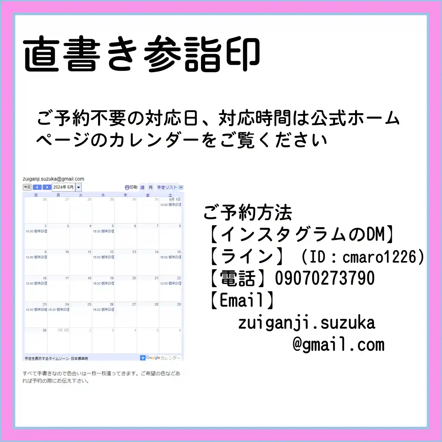 直書きしてもらって 手元の写真…