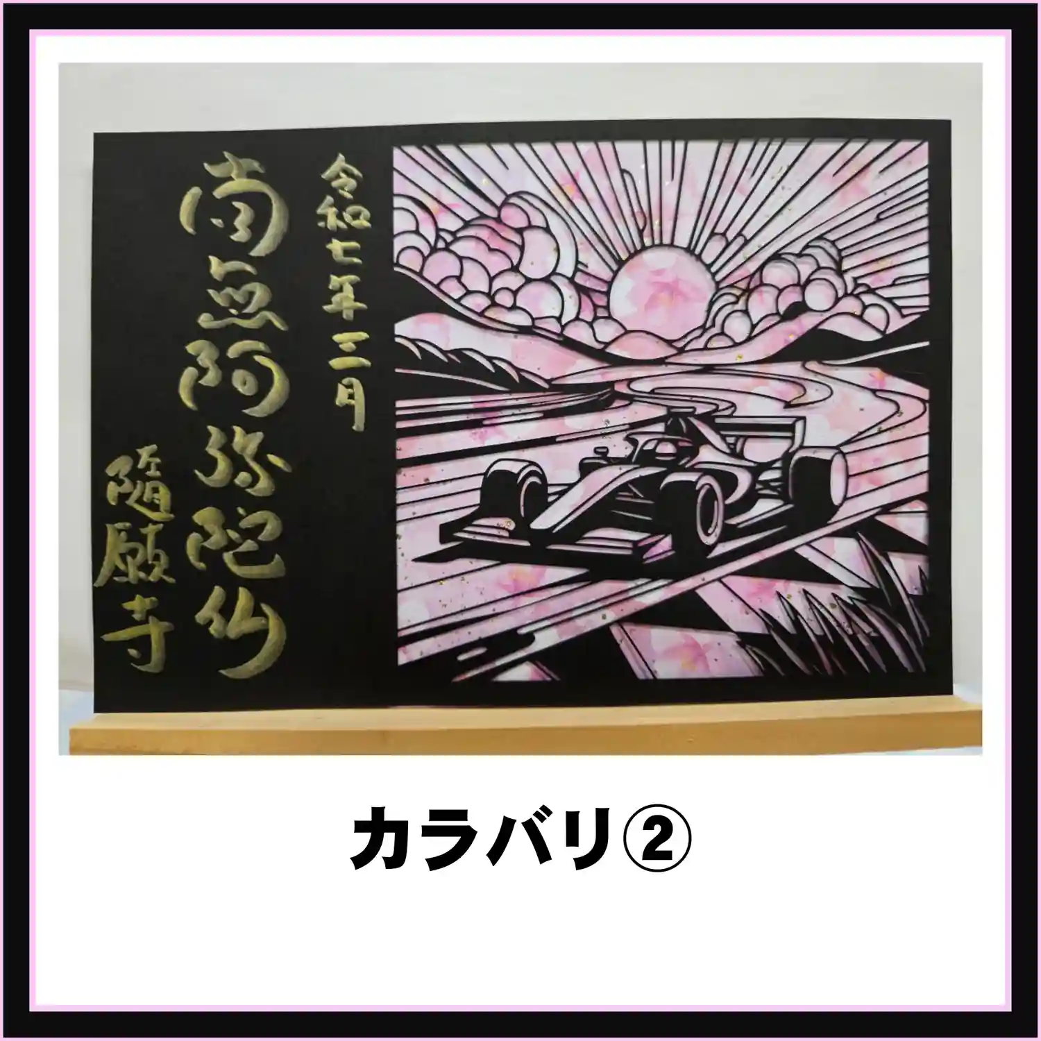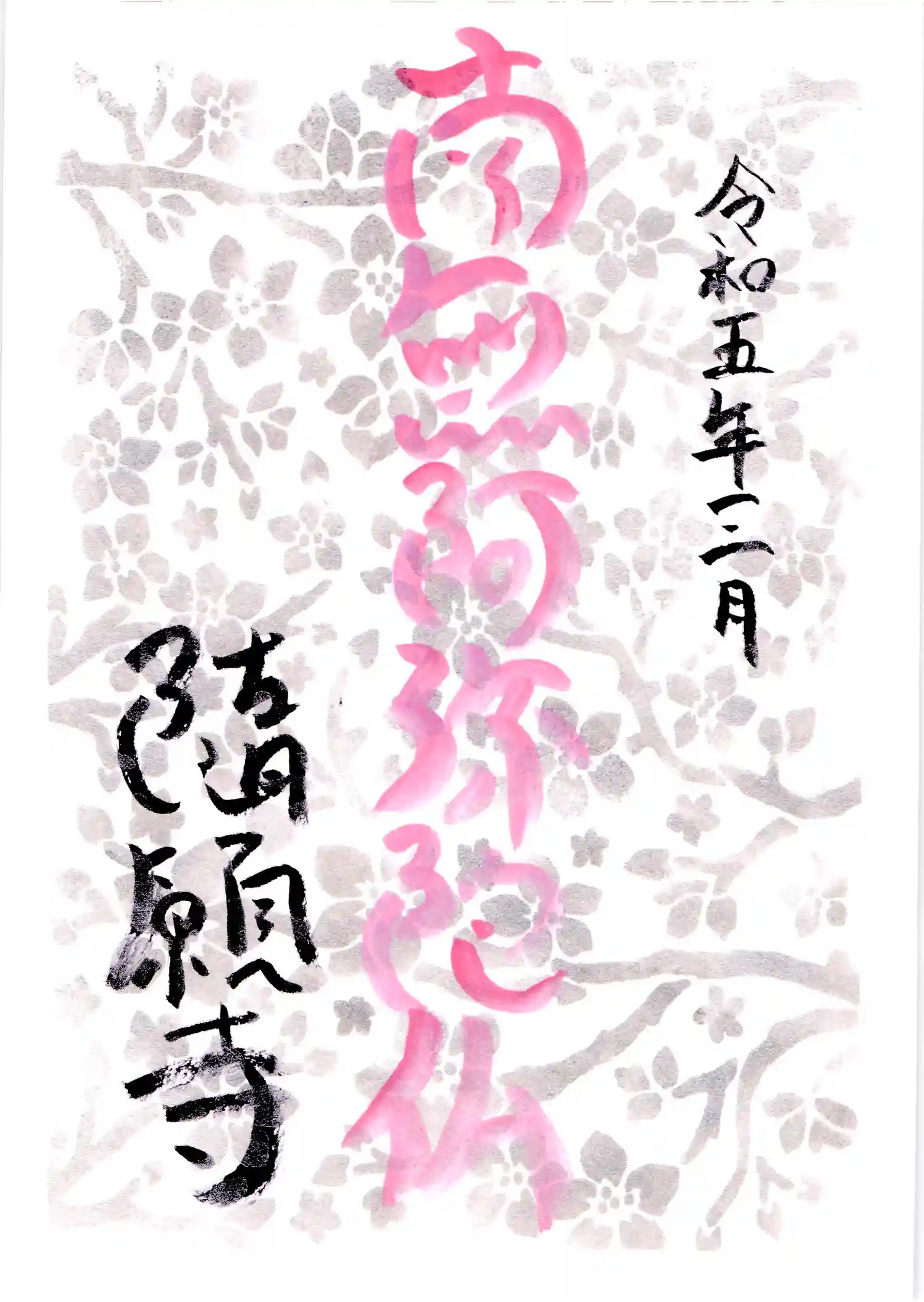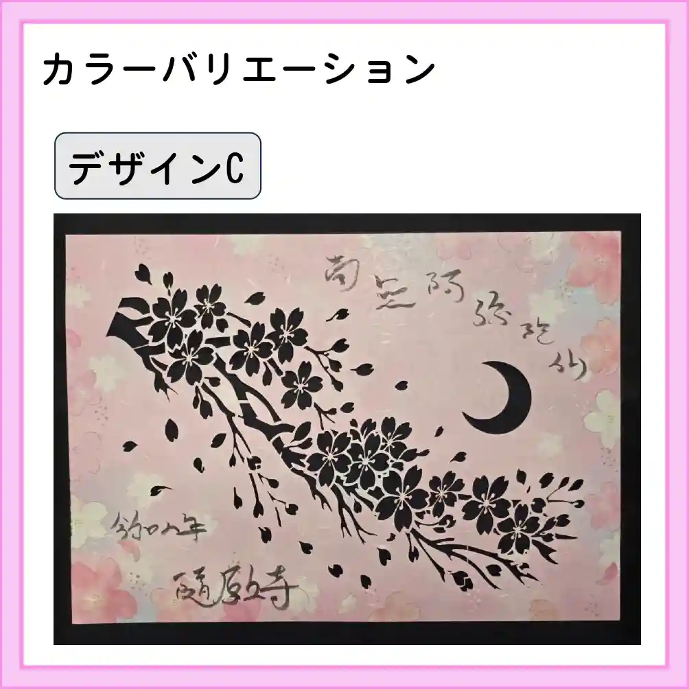 【桜②】背景に光沢絵の具で桜のシルエットを書き込んだ参詣印です