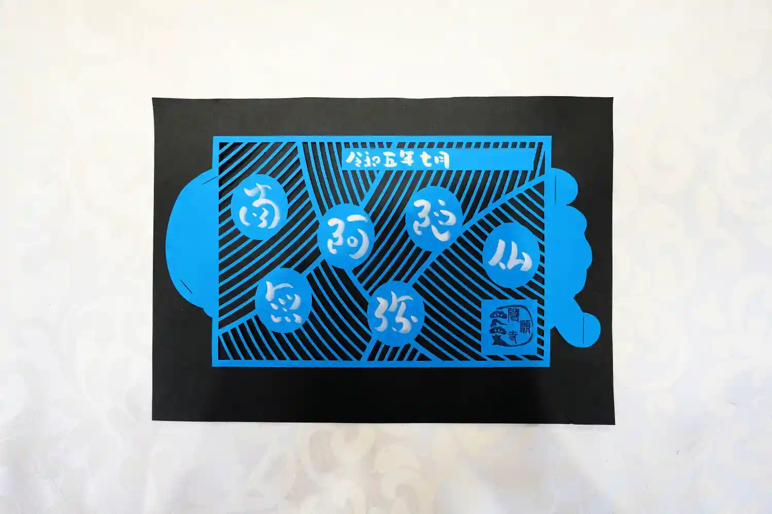 黒の台紙から青海波などの伝統文様を切…