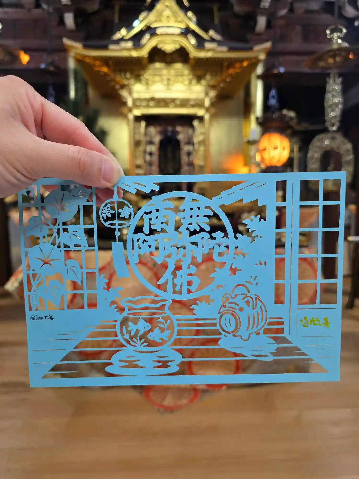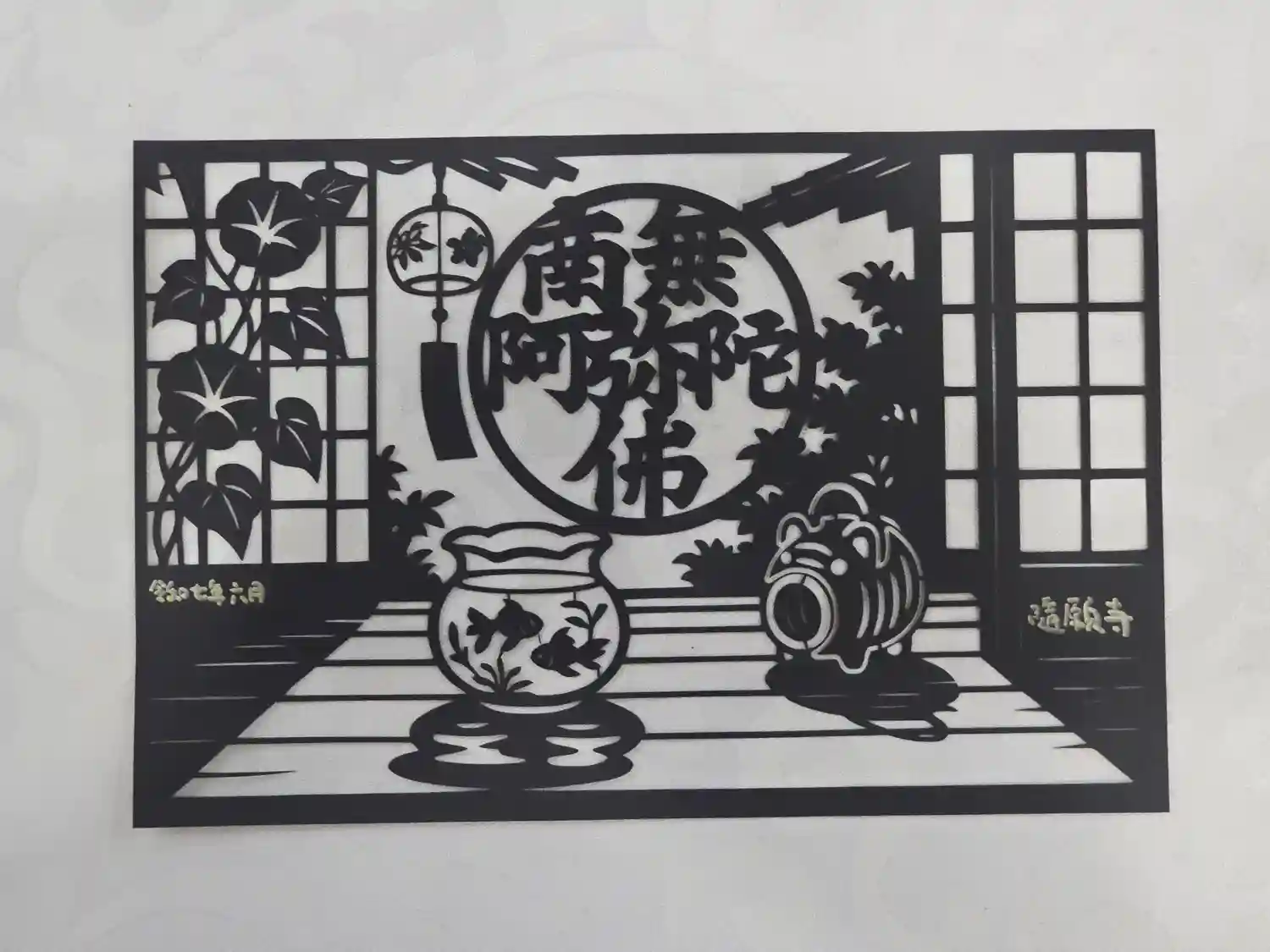 夏の縁側の切り絵参詣印