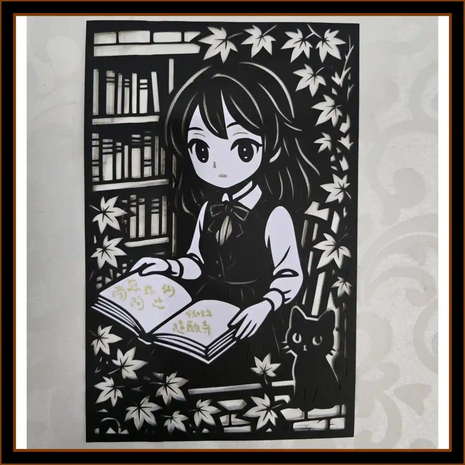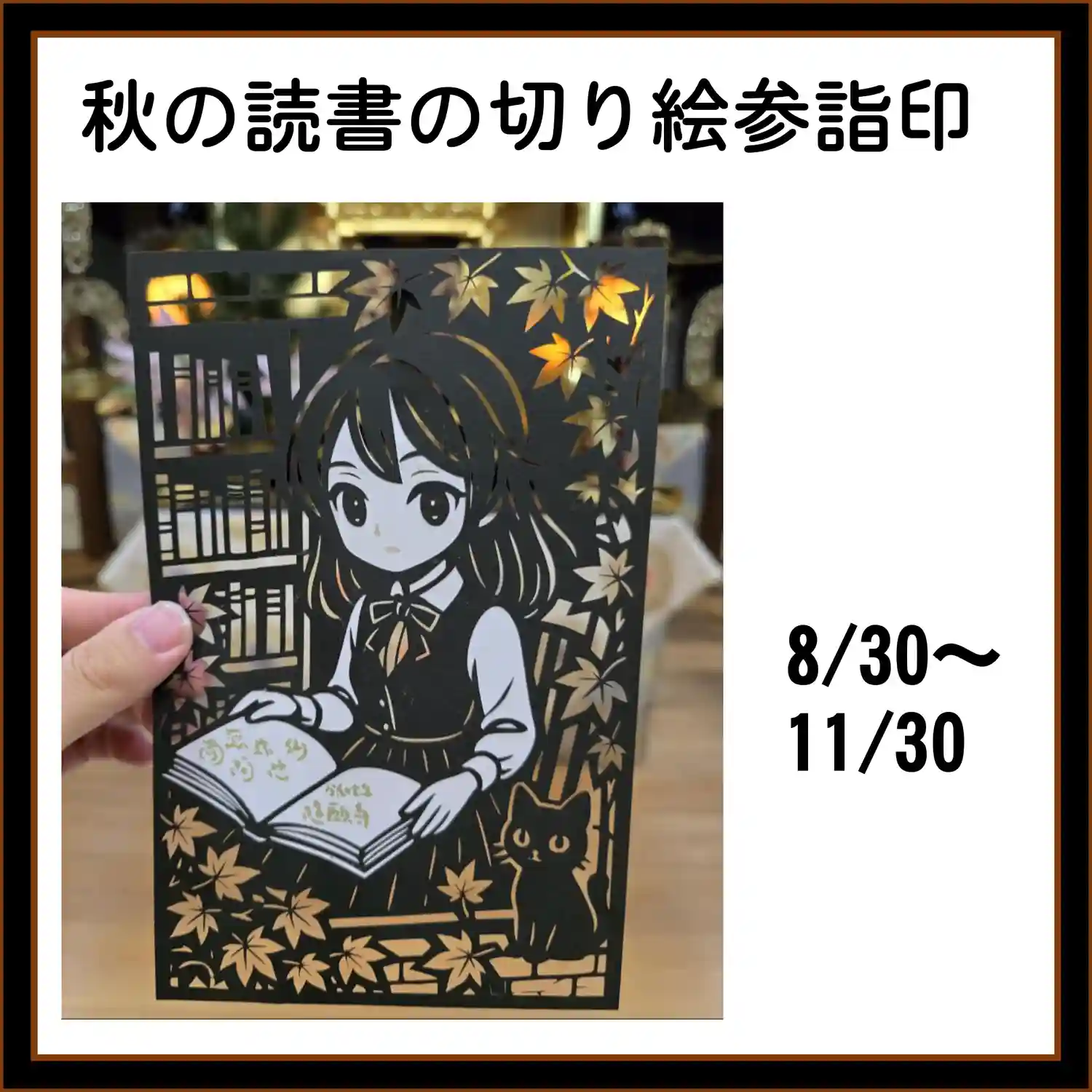 秋の読書の切り絵参詣印
