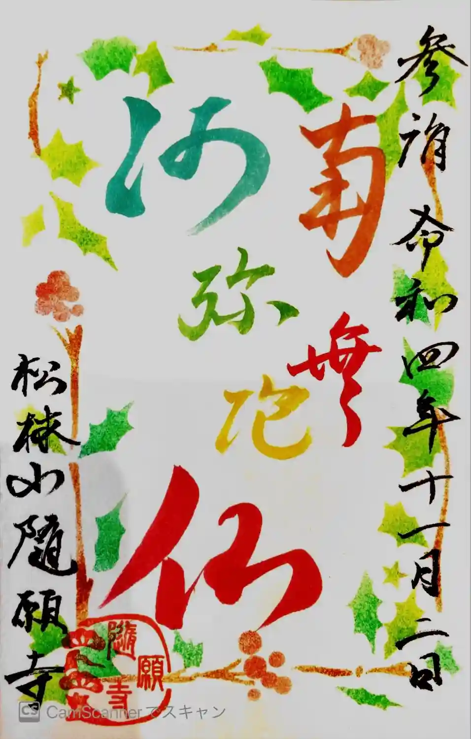 【隨願寺の切り絵御朱印】
