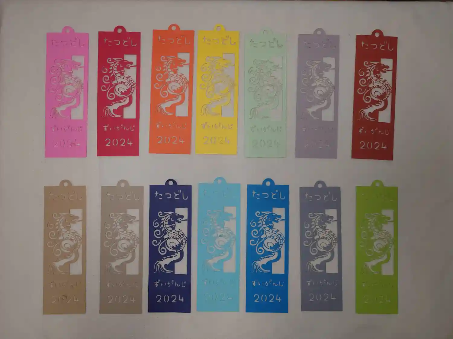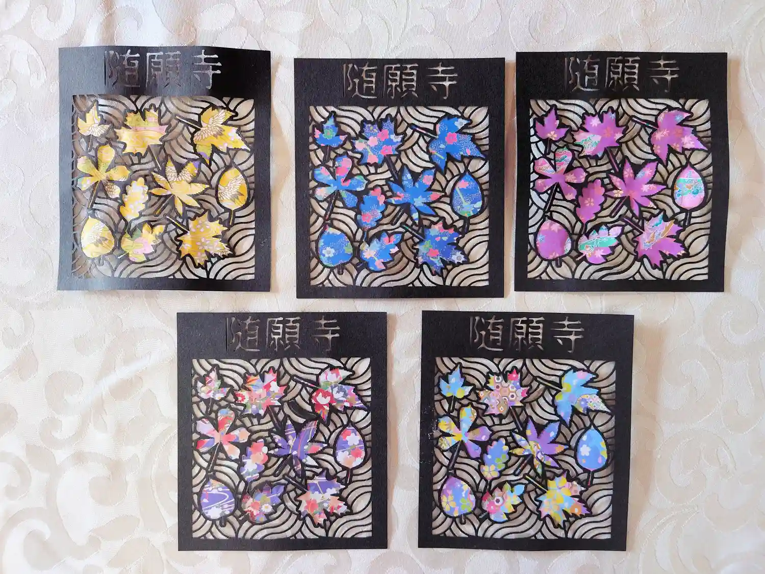 「川面の落葉のカラーバリエーション」 参詣時にお好きな色のものをお選びください。写真以外の色紙もあります。