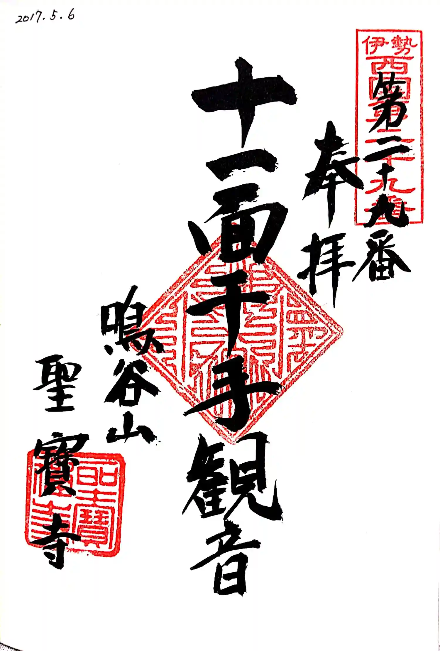 伊勢西国三十三所観世音霊場の御朱印です。