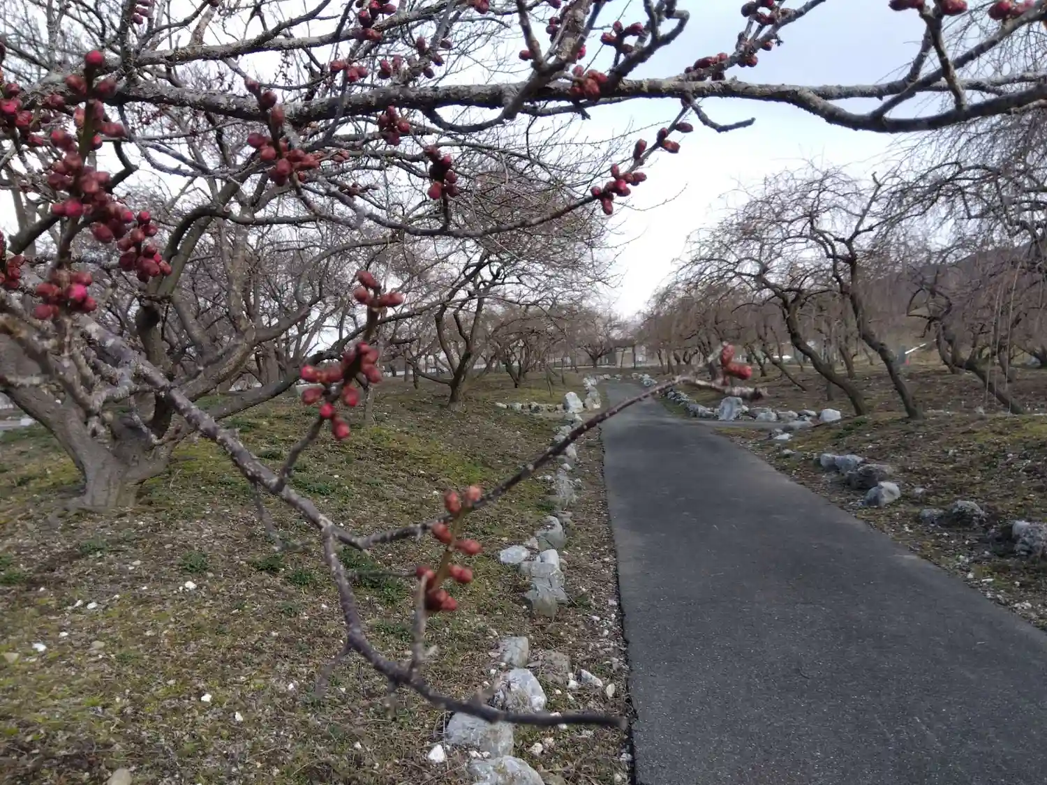 いなべ市梅林公園。誰もおらず駐車場係の方も手持ち無沙汰でした