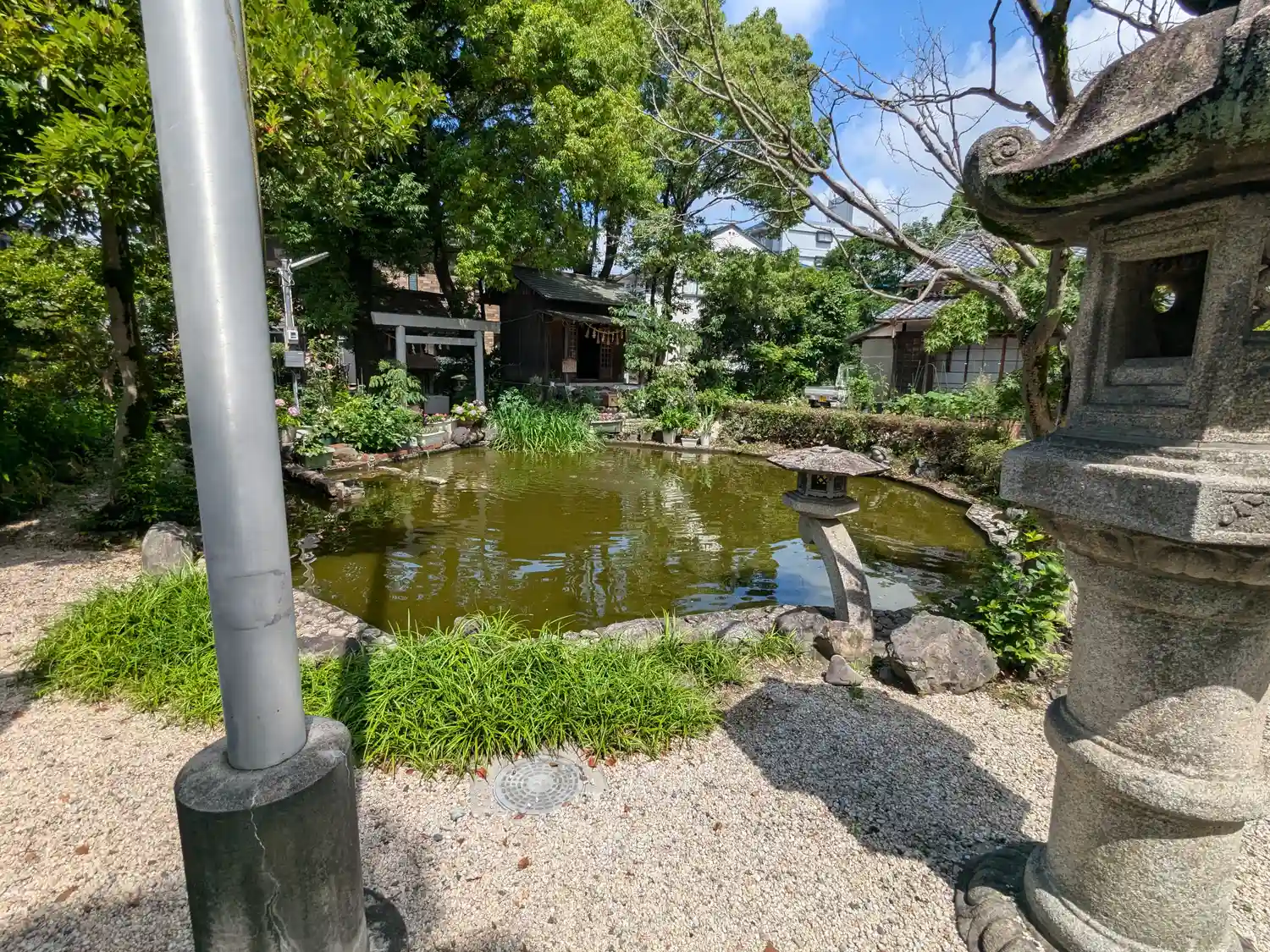 鏡ヶ池と社務所