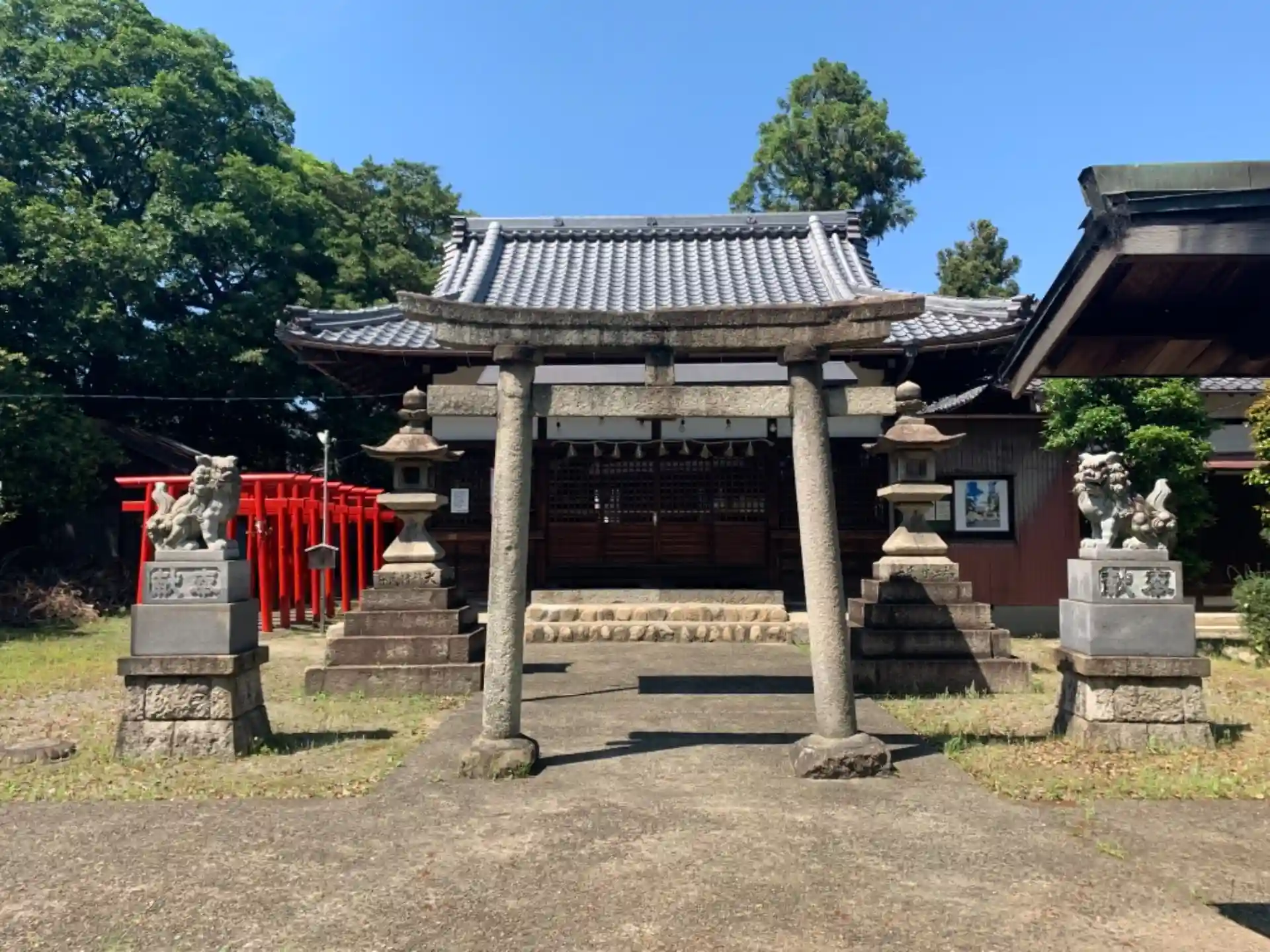 国道1号線沿いに鳥居があり、駐車スペースは鳥居をくぐった先に停めれますが、普通自動車はキツイです。