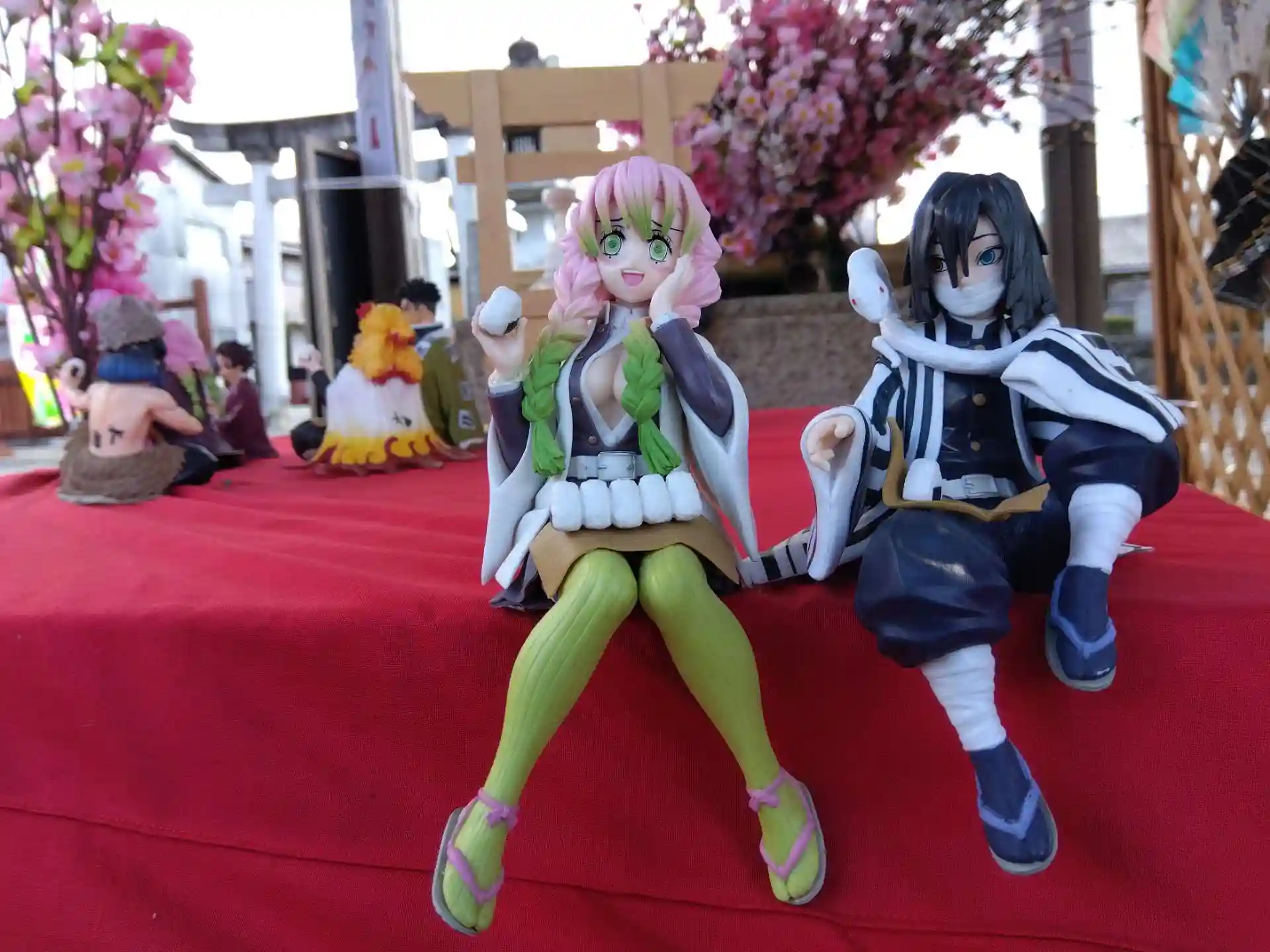 手水舎は最早「鬼滅の刃」まつり状態😆ただ上弦の鬼のフィギュアが分からなかったです⤵️