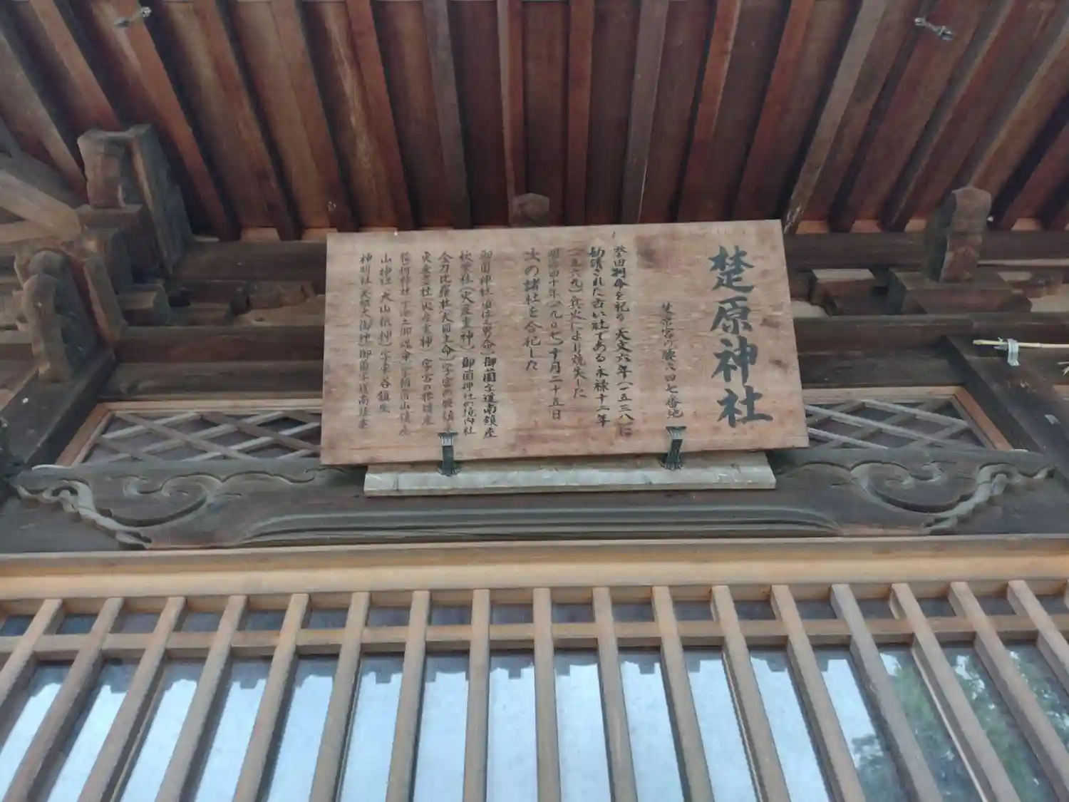 楚原神社の歴史と合祀された神社名が書かれています