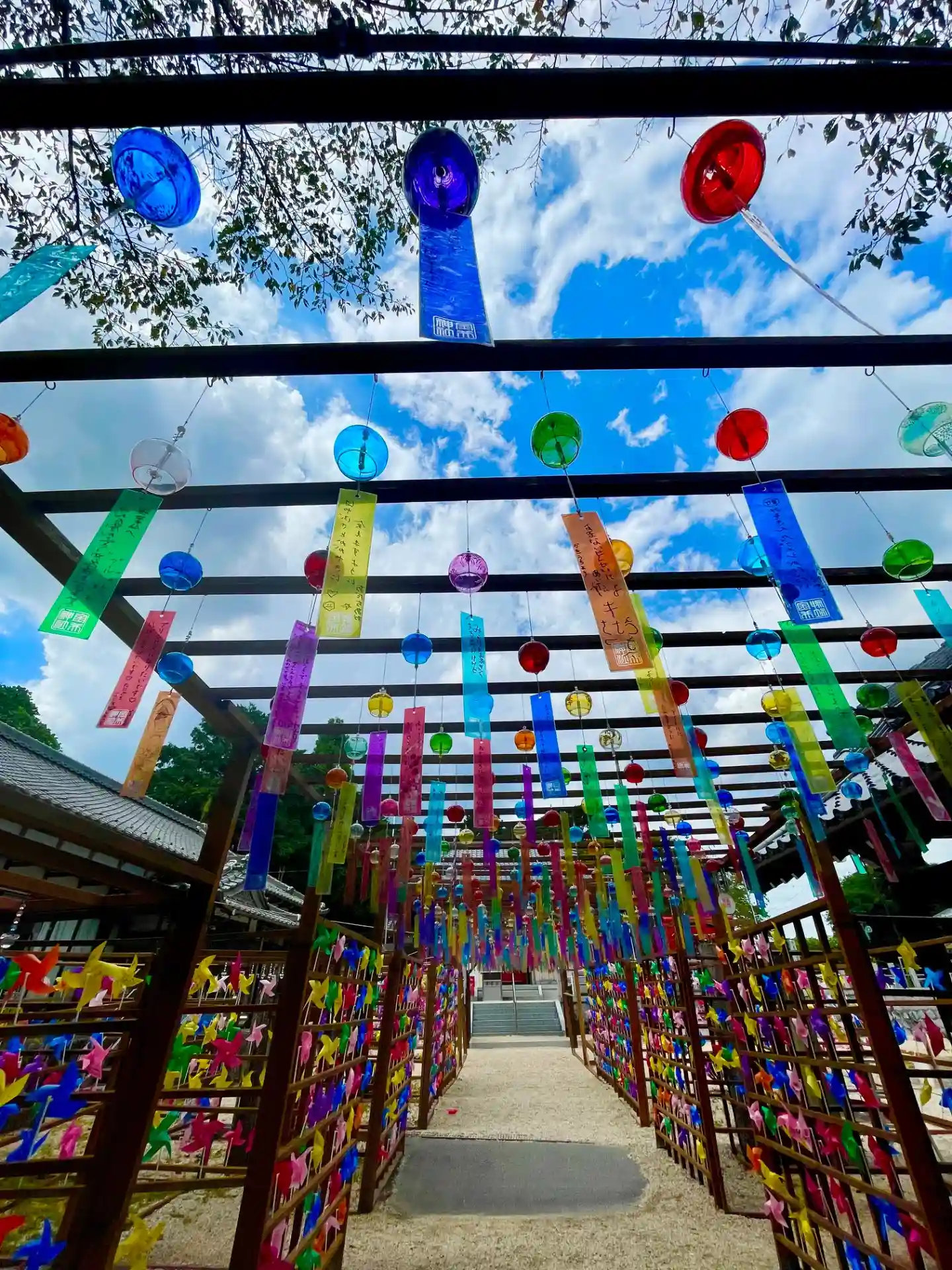 風鈴、風車で飾られ素敵な神社でした。
