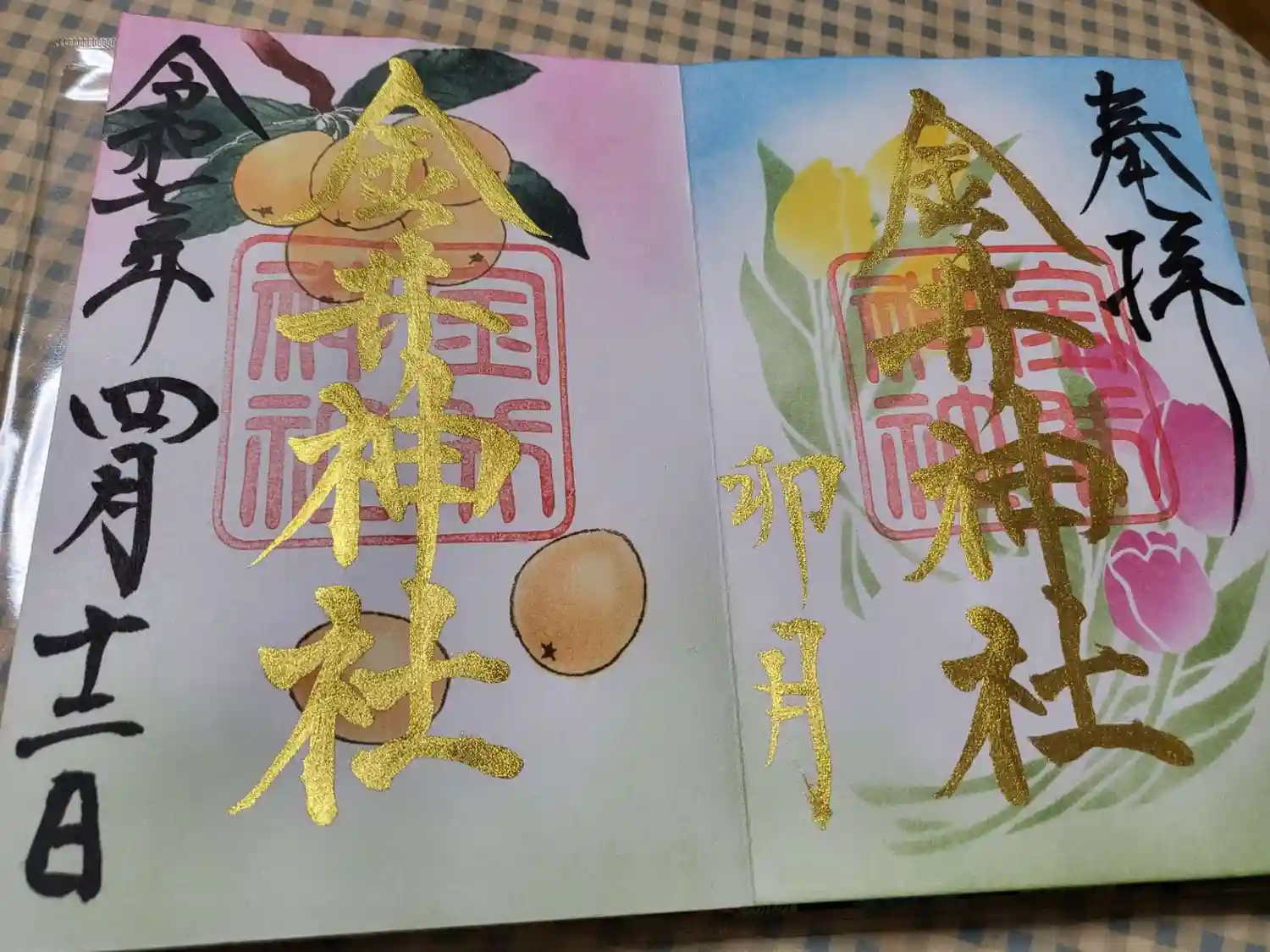青リンゴの御朱印と金木犀の御朱印2体をお願いしました。