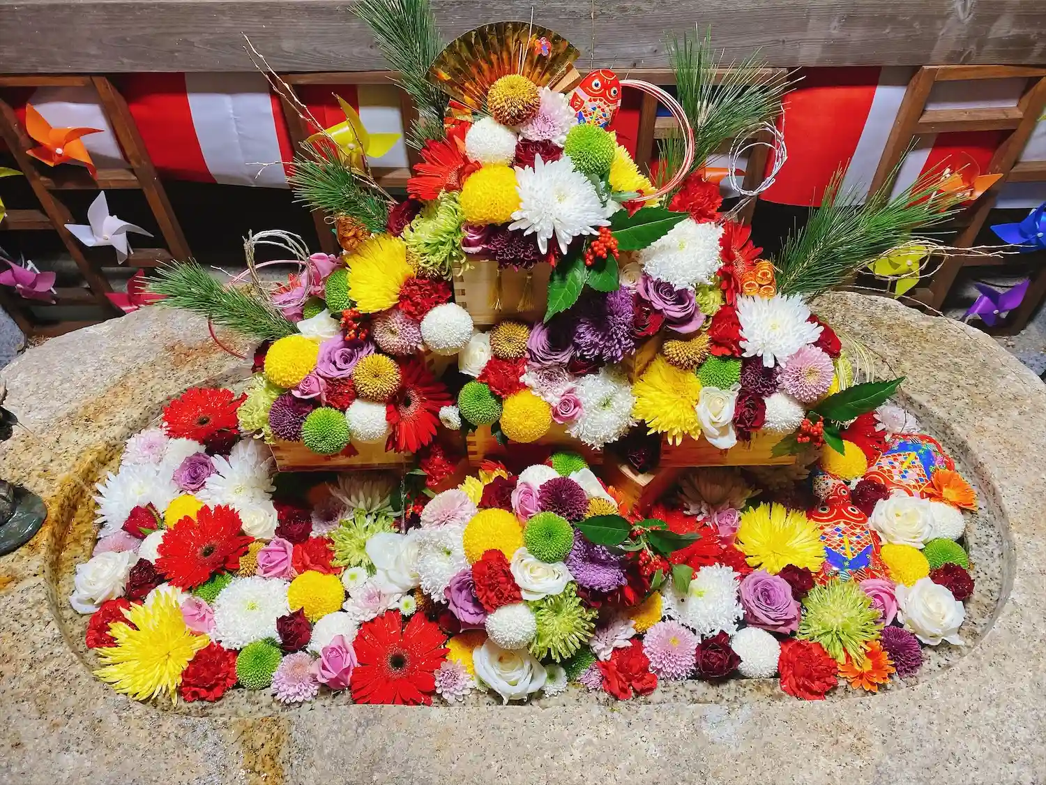 こちらの神社は、花手水にはたくさんのお花が飾られています🌸
