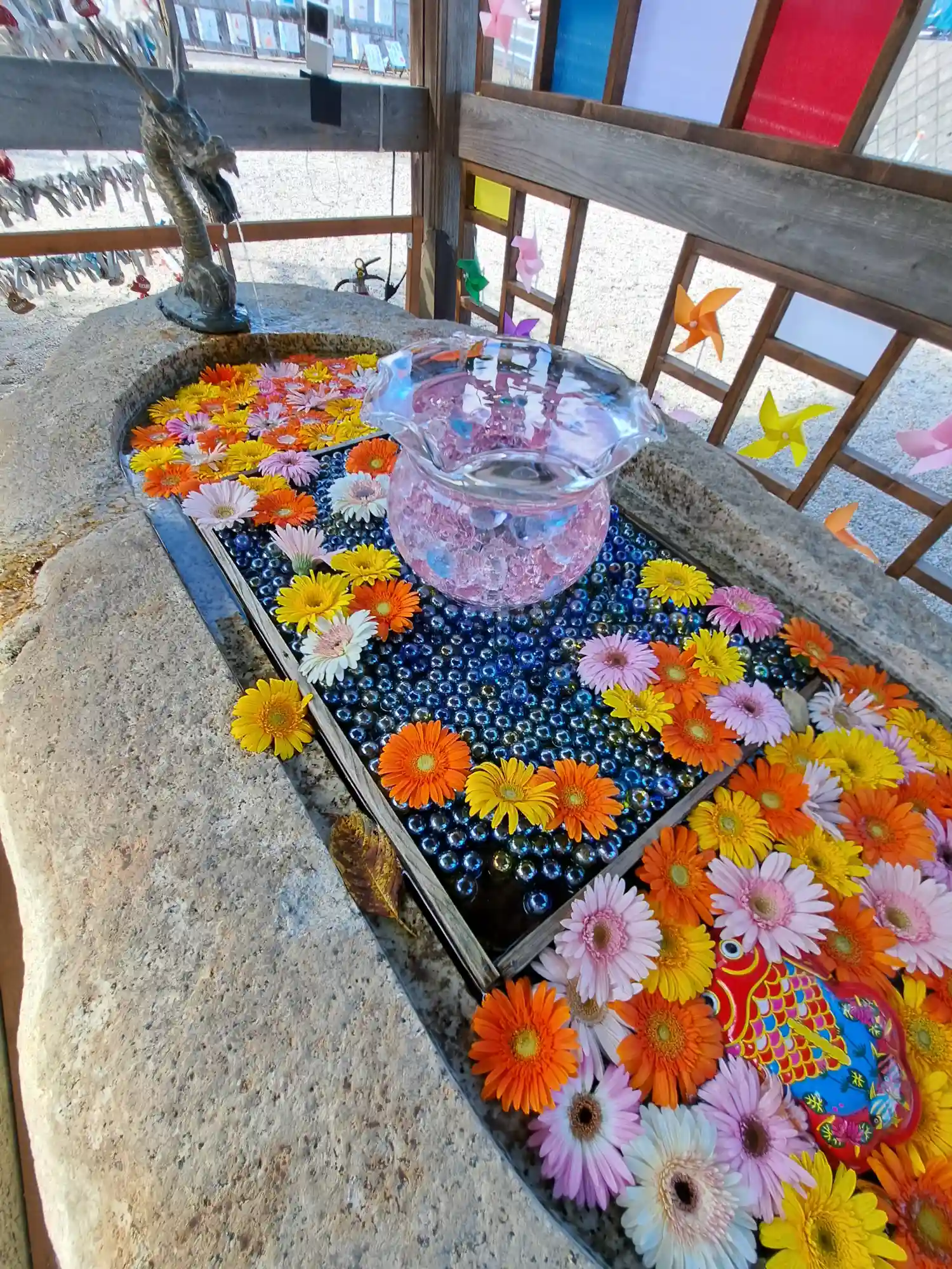 手水も華やかで癒…