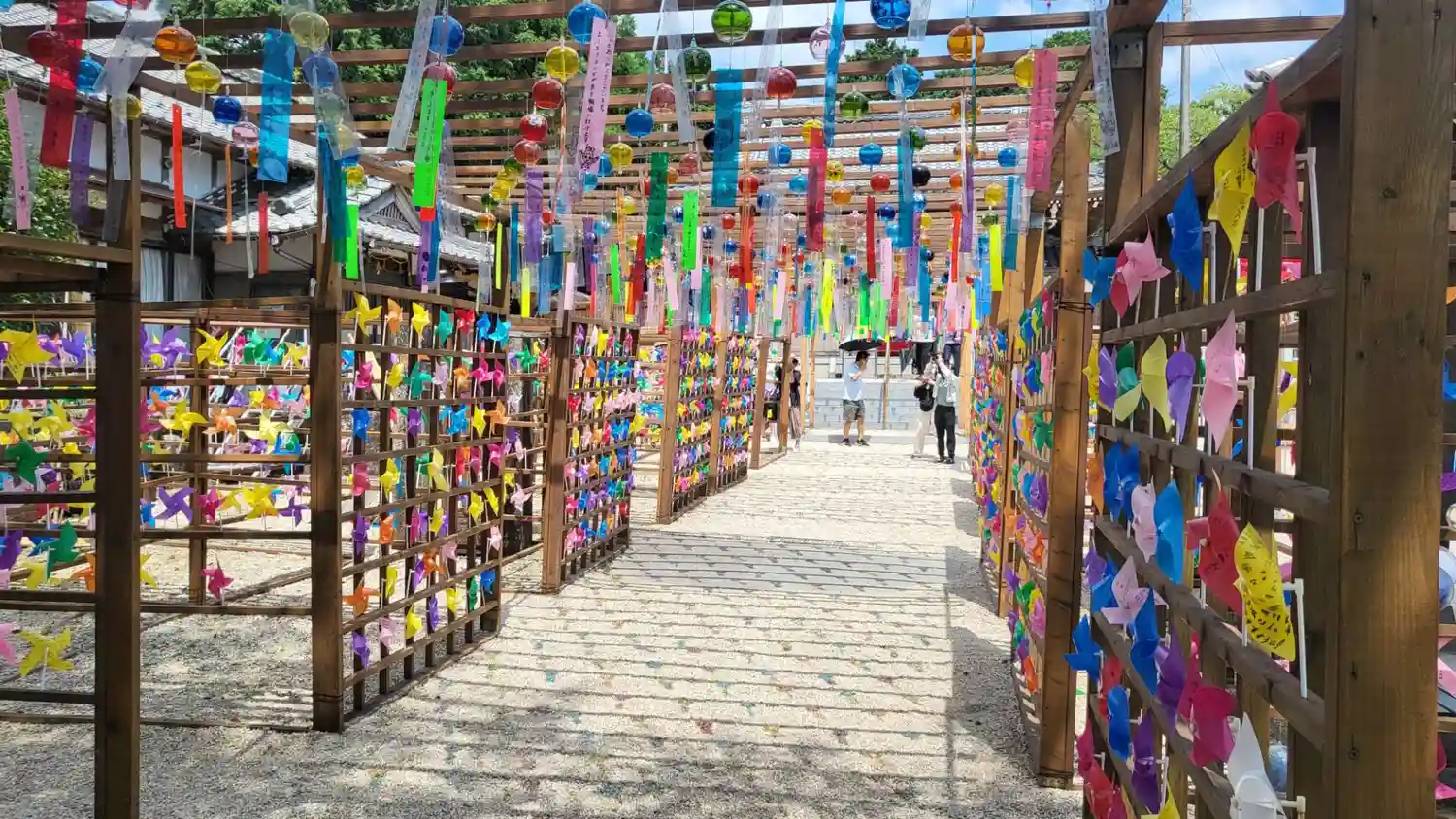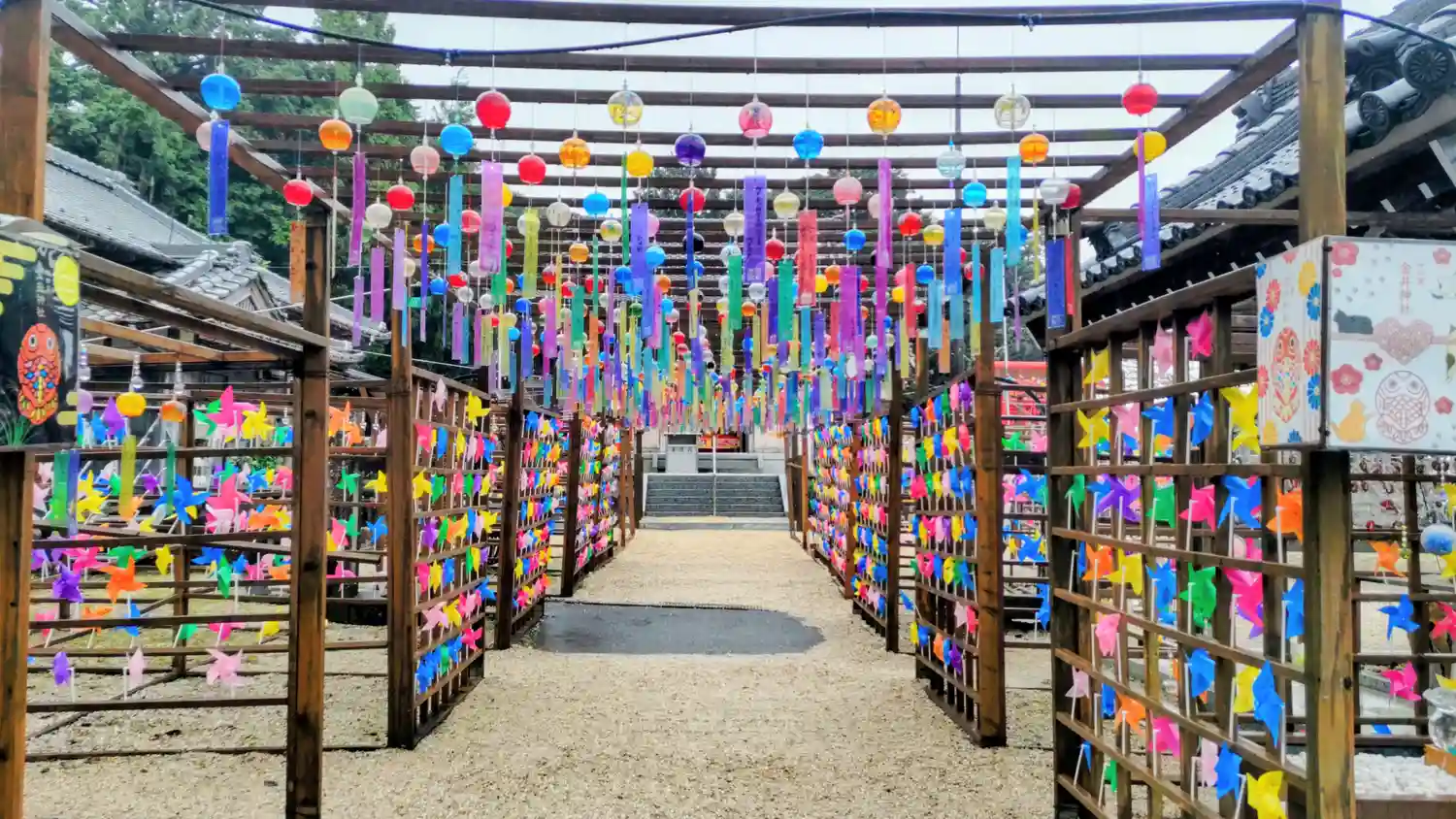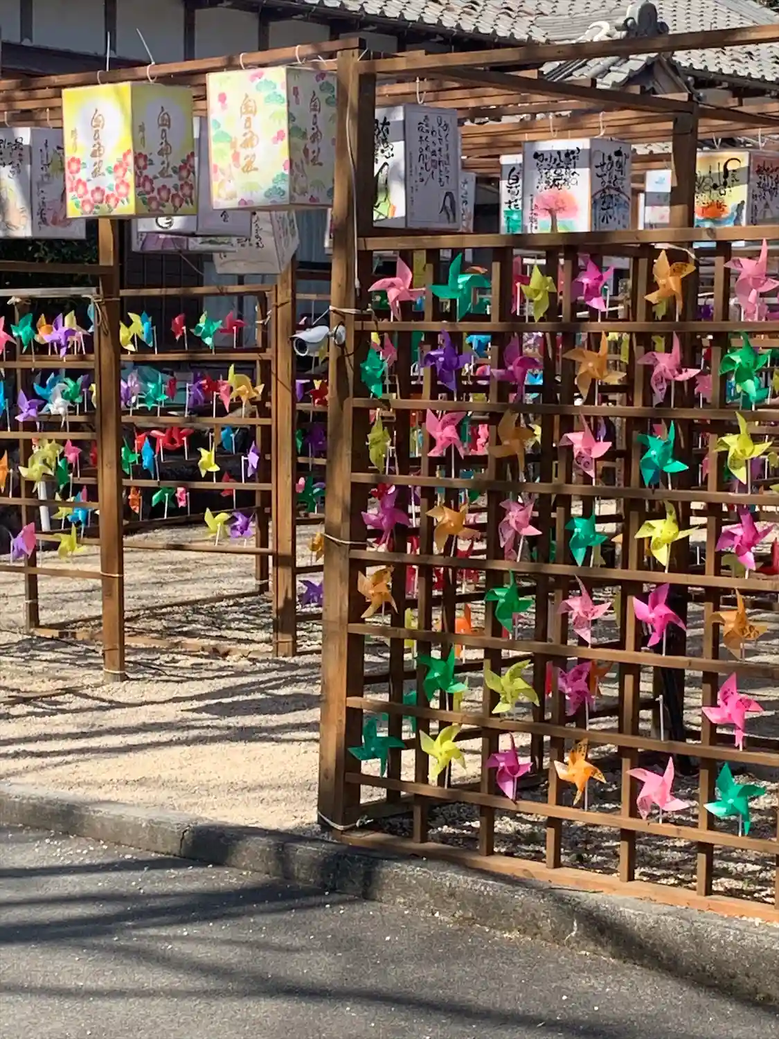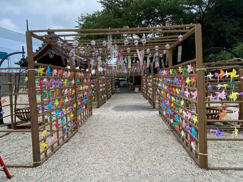 境内は風車で綺麗で…