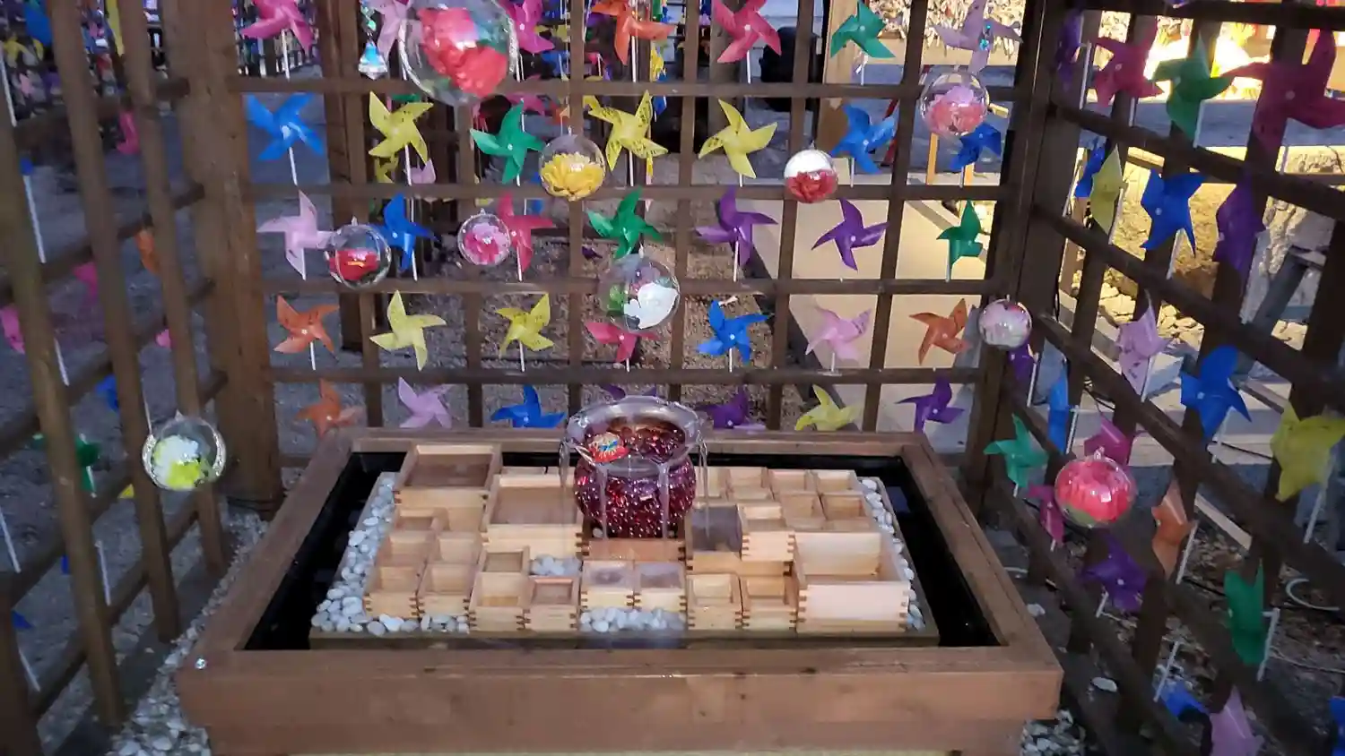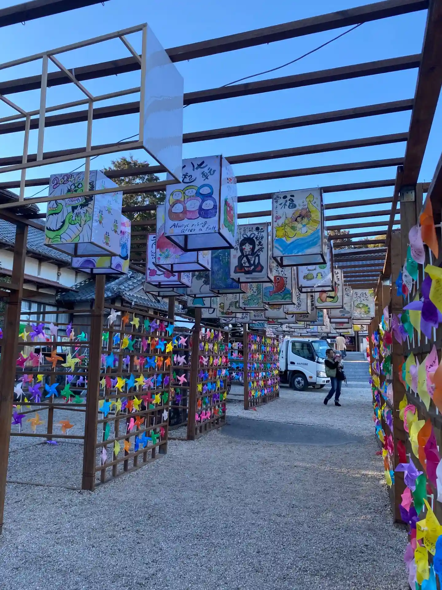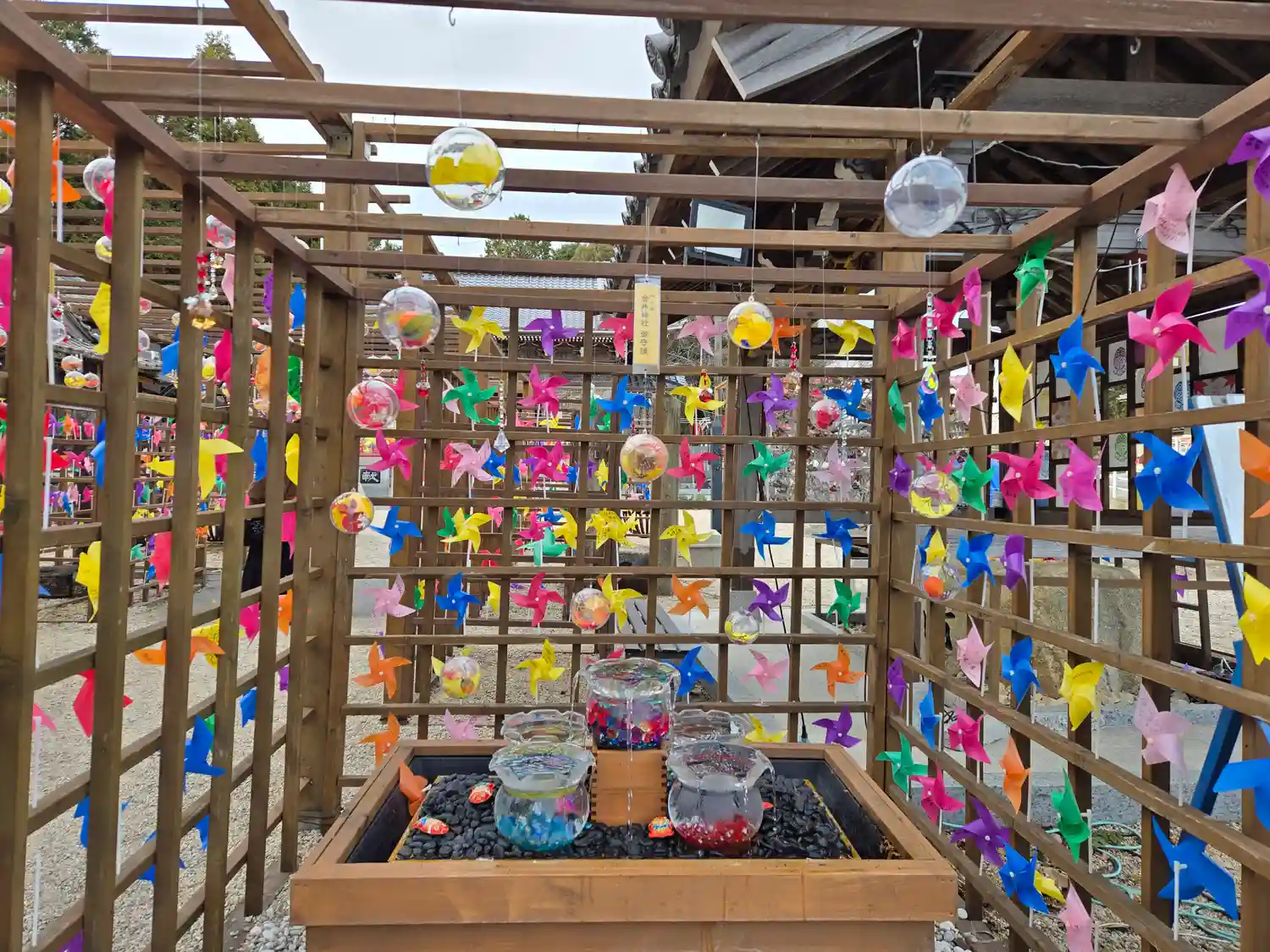 境内は風車で綺麗で…
