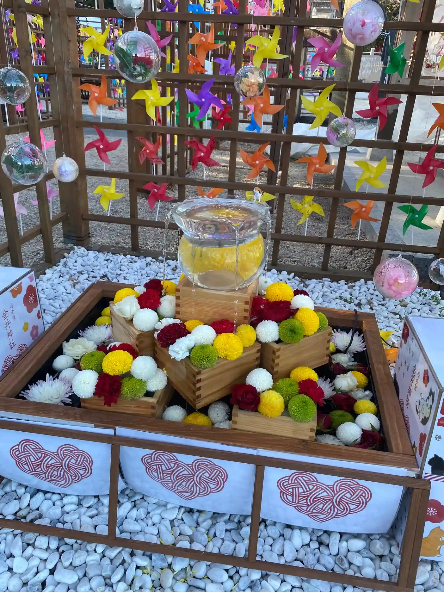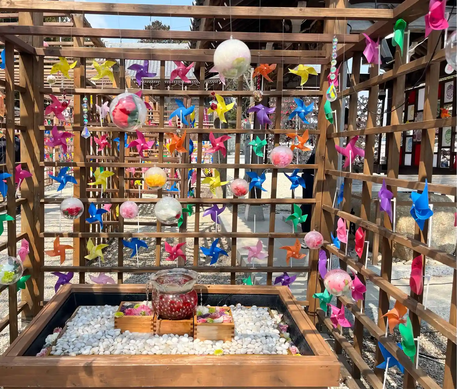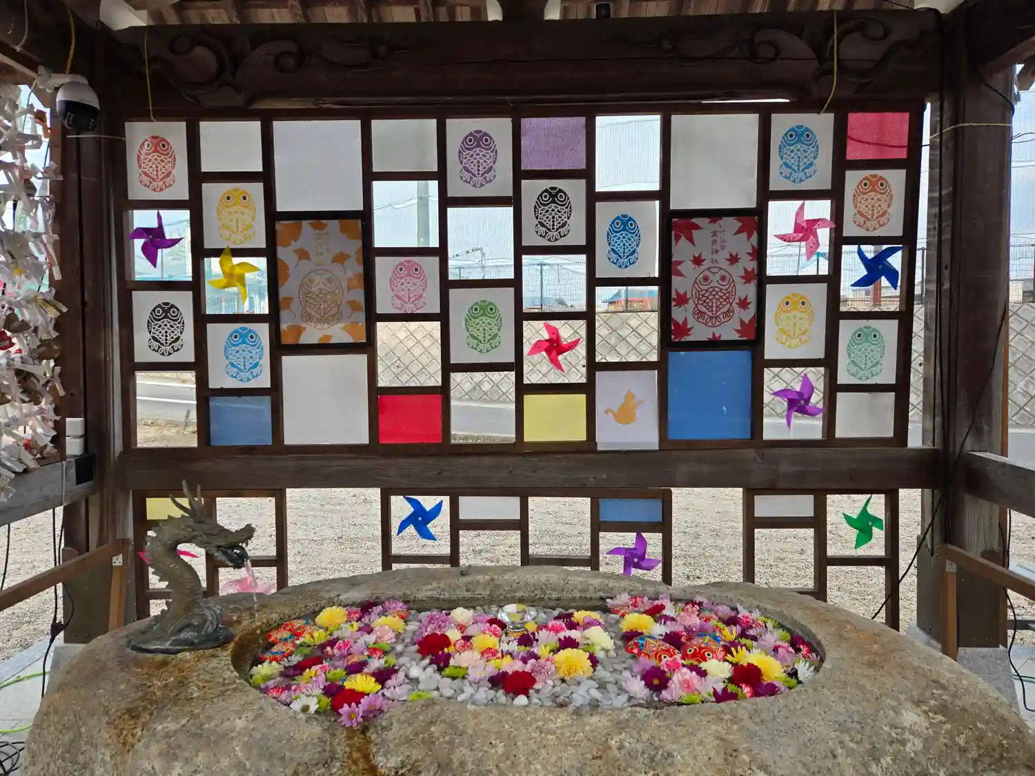 境内はとても綺麗にされており、花手水や風車で彩られています。