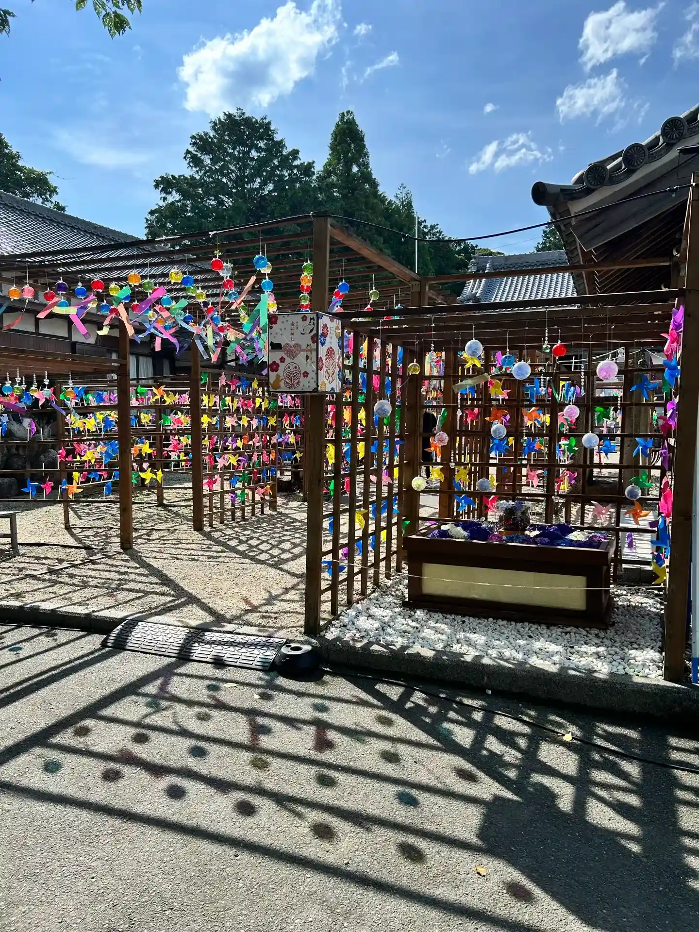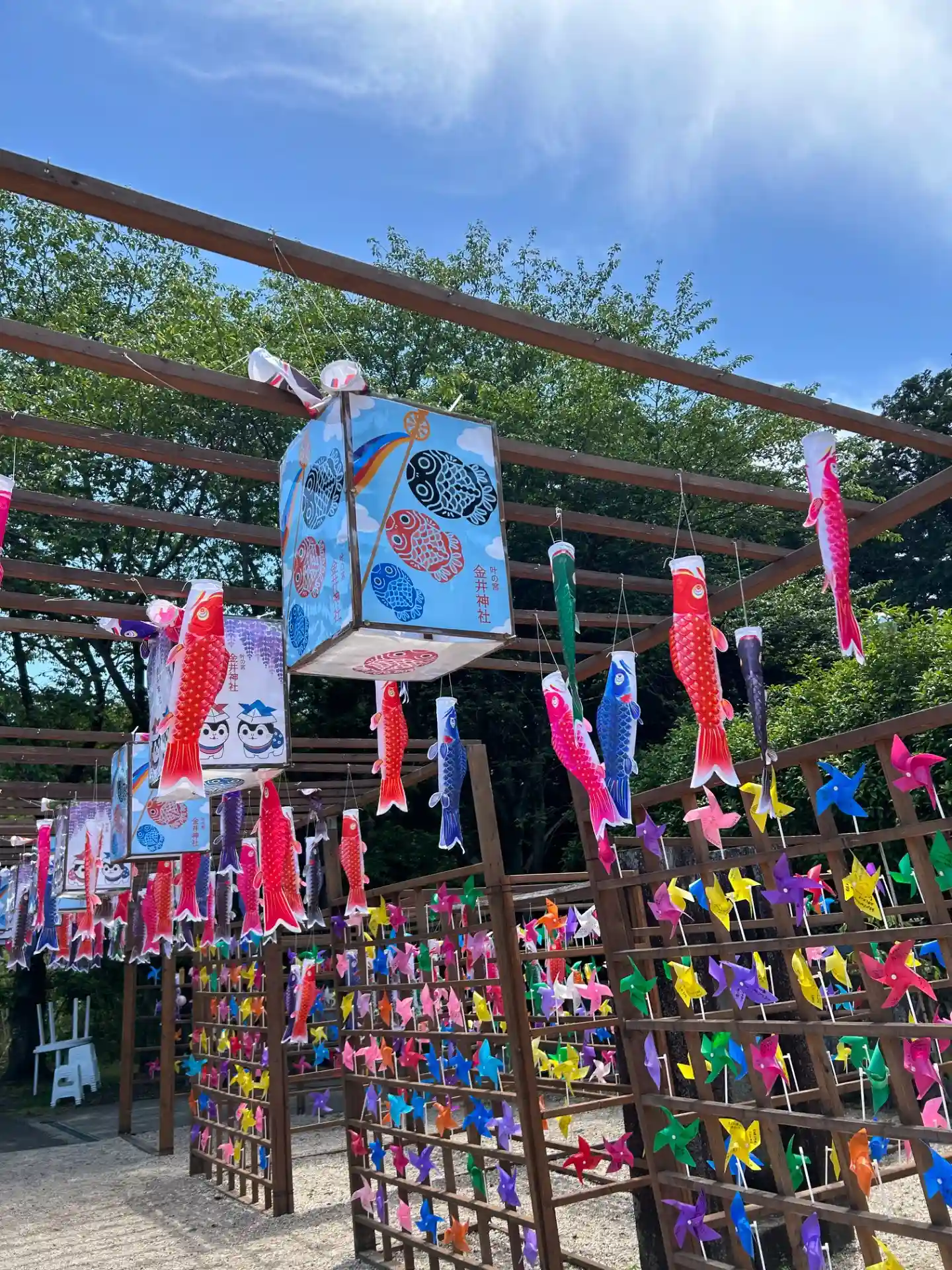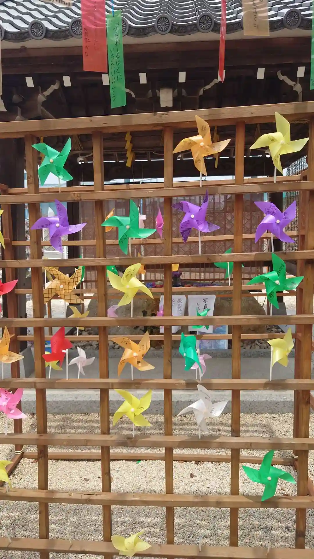 神社入口の風車が綺麗でした😆