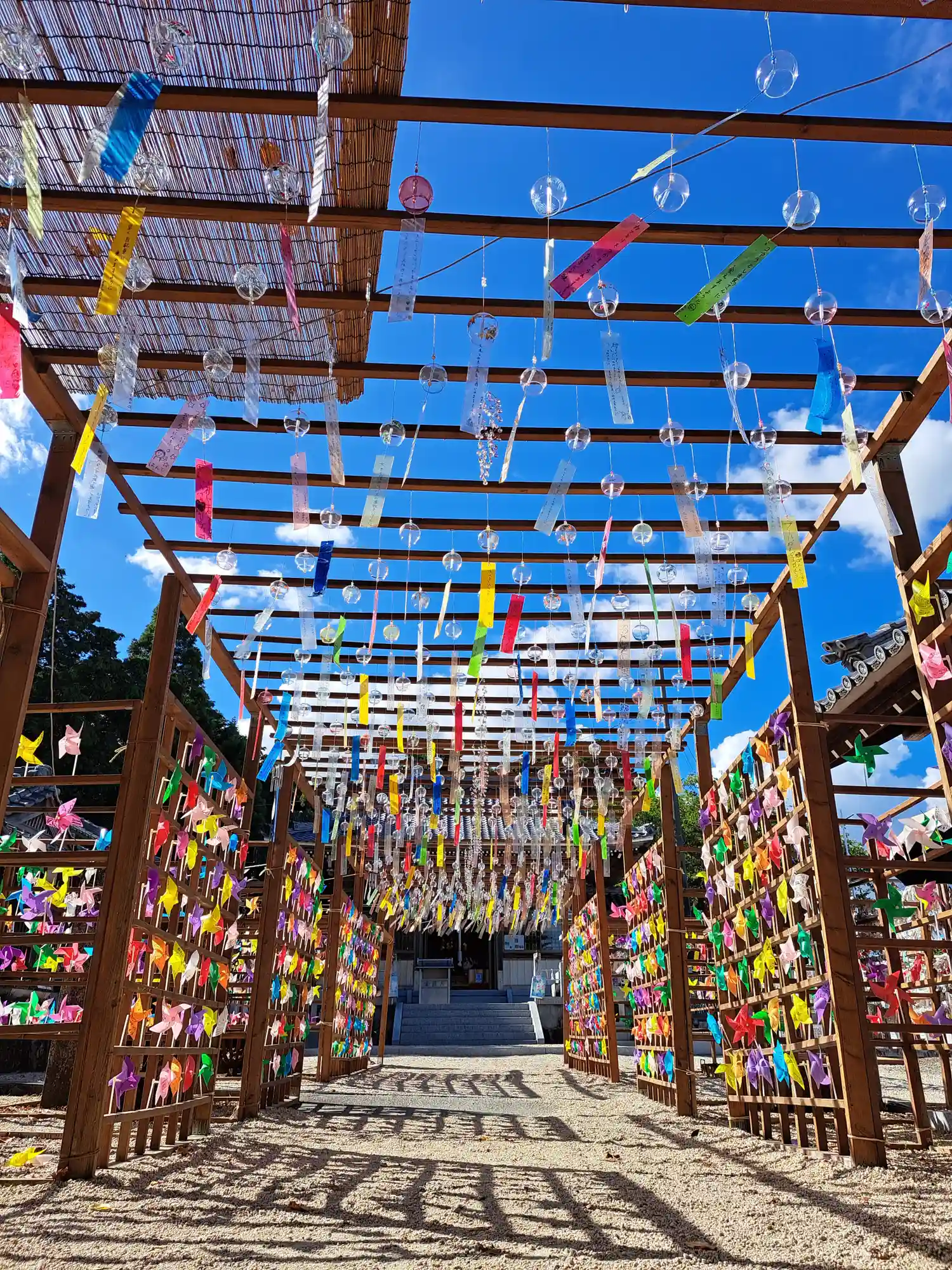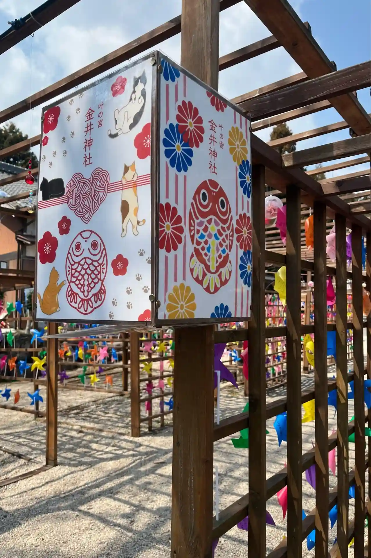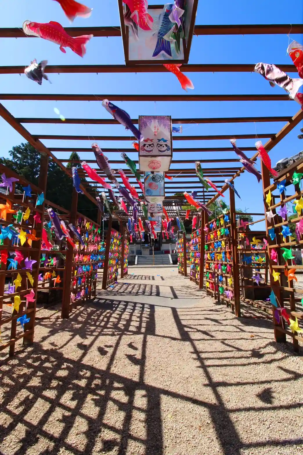 神社入口の風車が綺麗でした😆