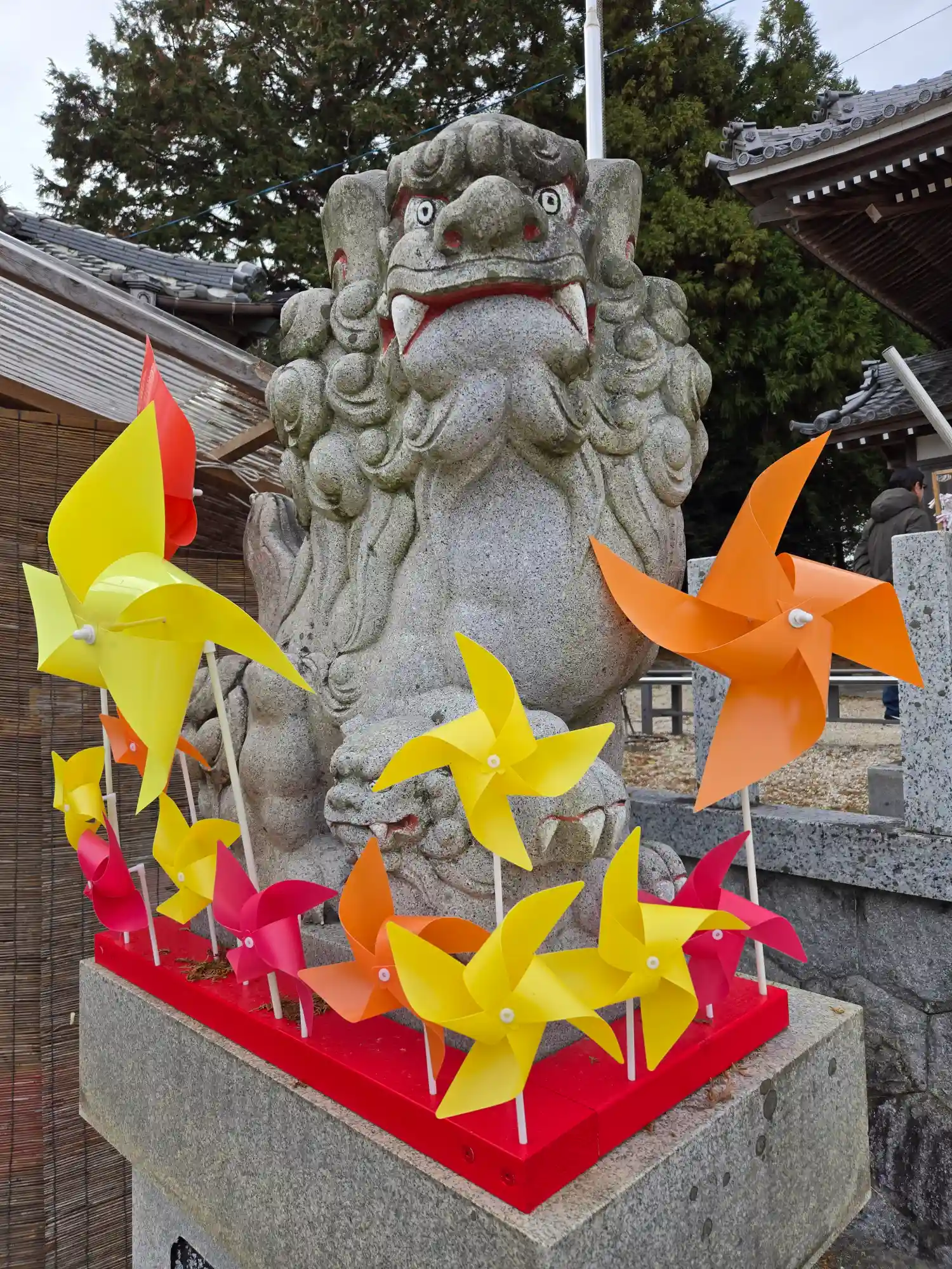 狛犬に風車。