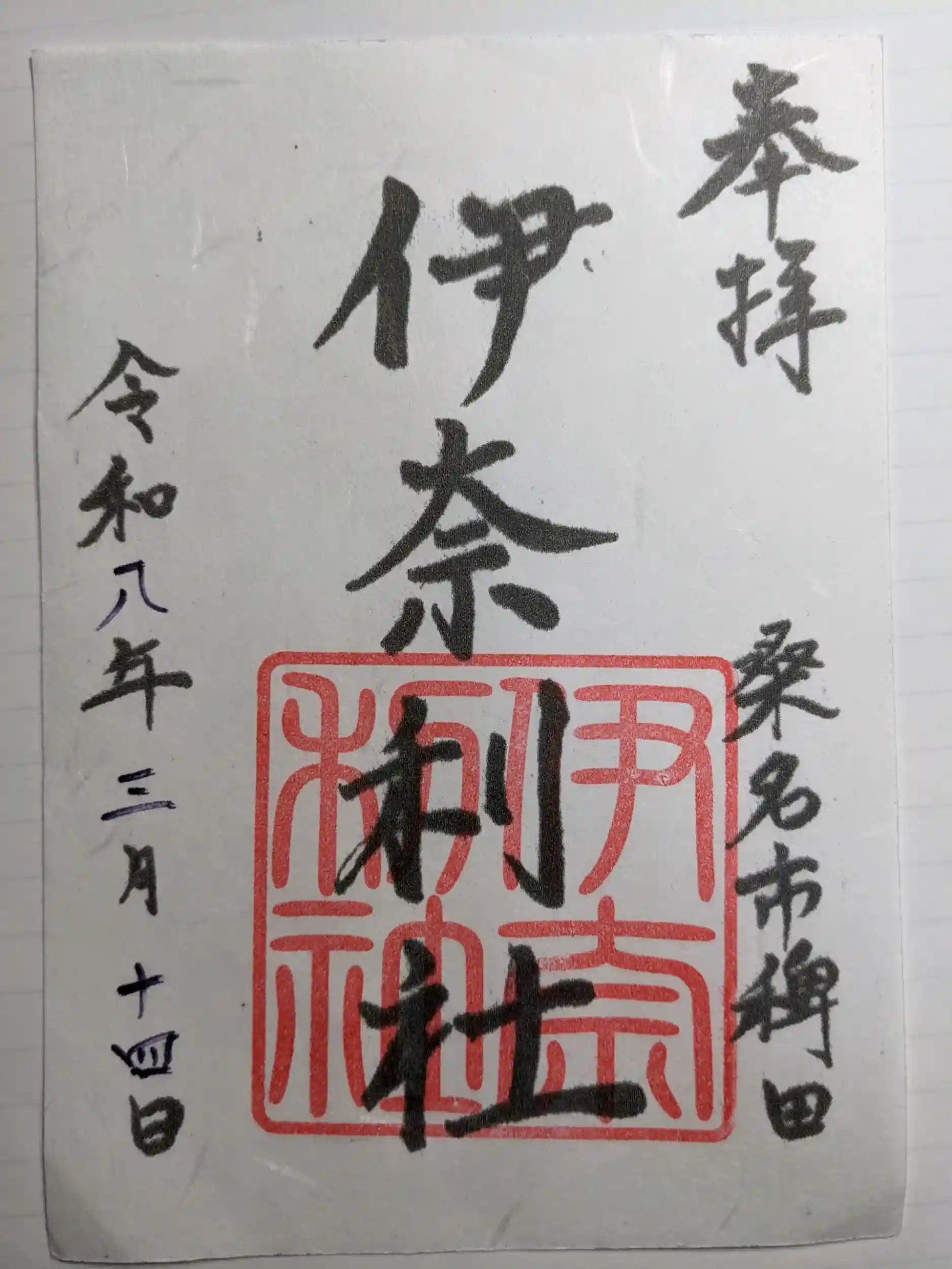 1672年に伏見稲荷大社から勧請されました。 お稲荷様なのになぜ伊奈利? 稲荷は平安前期までは伊奈利の字であったとのことです。