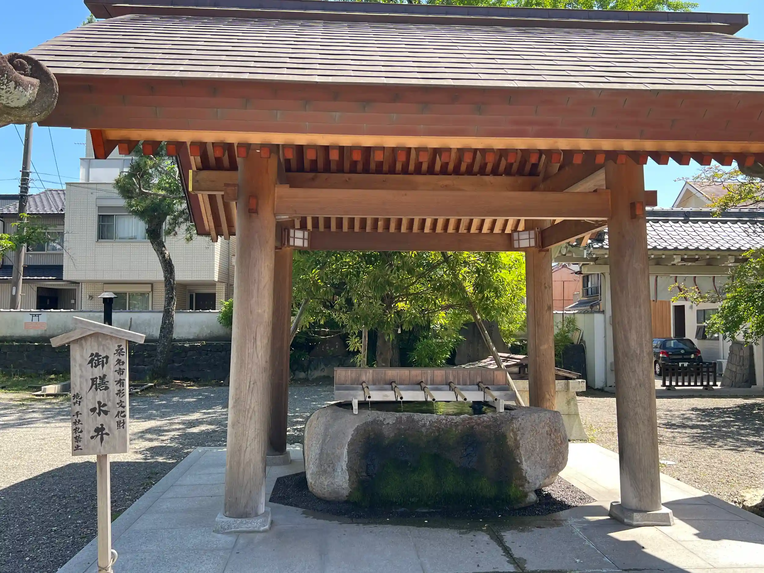 手水舎はクラシックながら近代的な作り。
